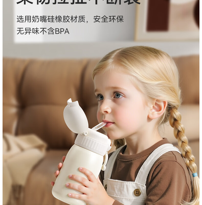 英氏儿童保温杯宝宝1到3岁婴儿奶瓶吸管直饮水杯婴幼儿园一岁以上 儿童双饮保温杯【吸管+直饮】+杯套