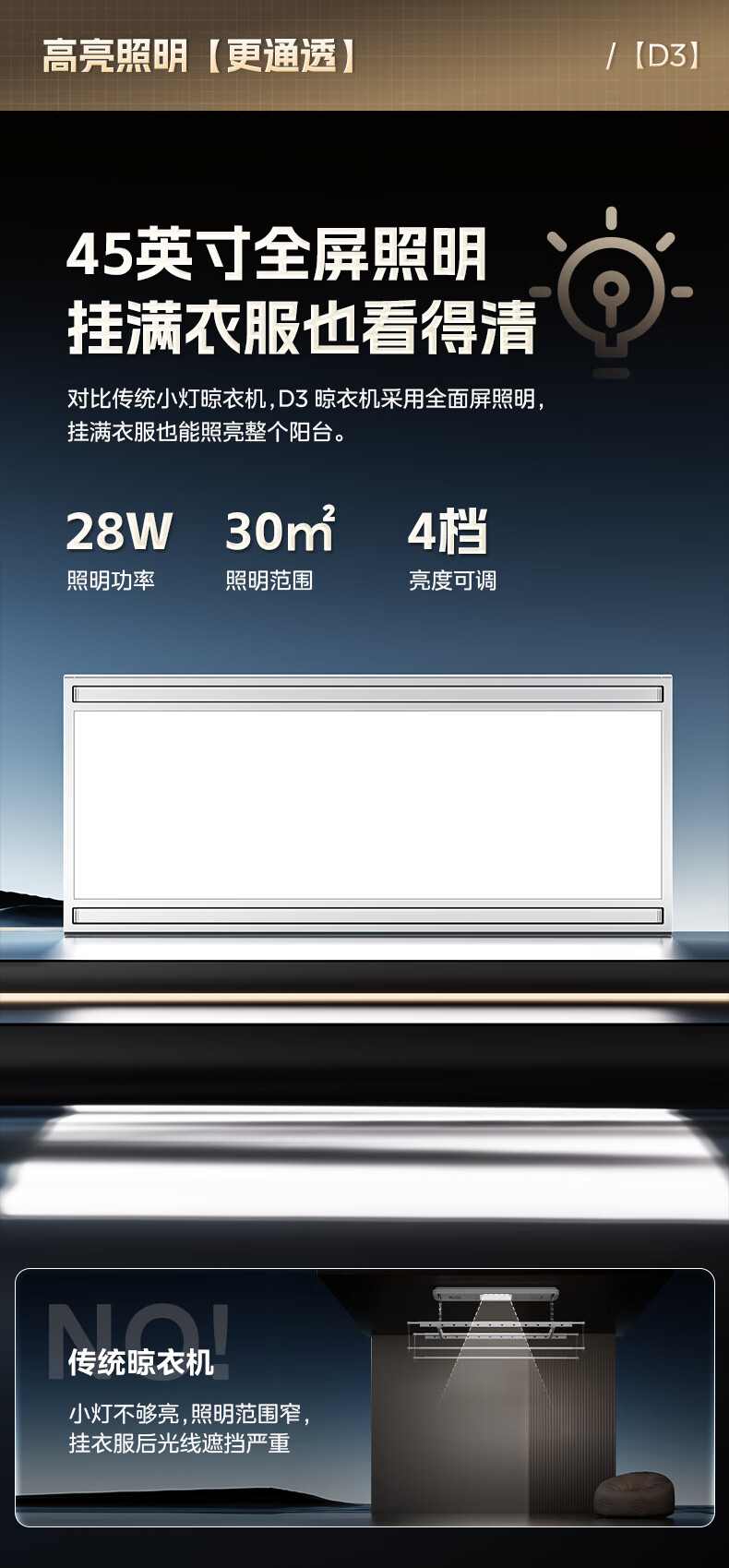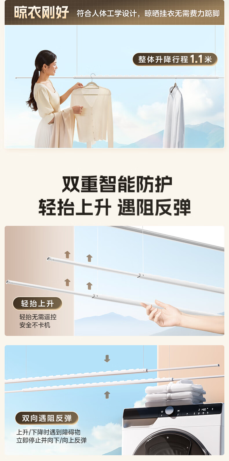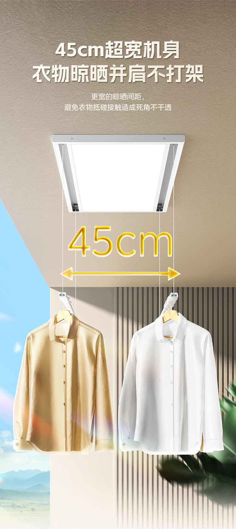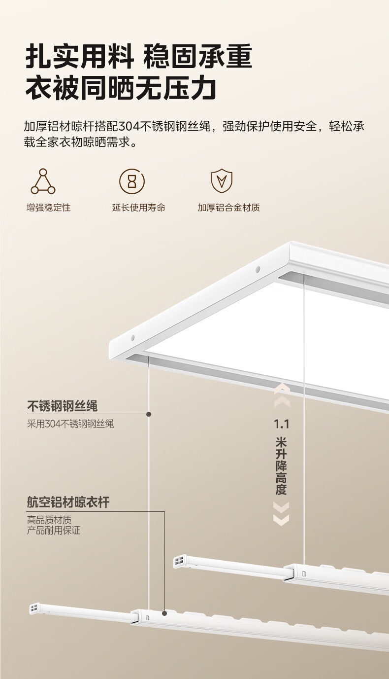 美的(Midea)电动晾衣架智能双控双杆晾衣机超薄隐形阳台自动升降晾衣杆家用D3 【D3】双杆分控|离线语音|28W照明