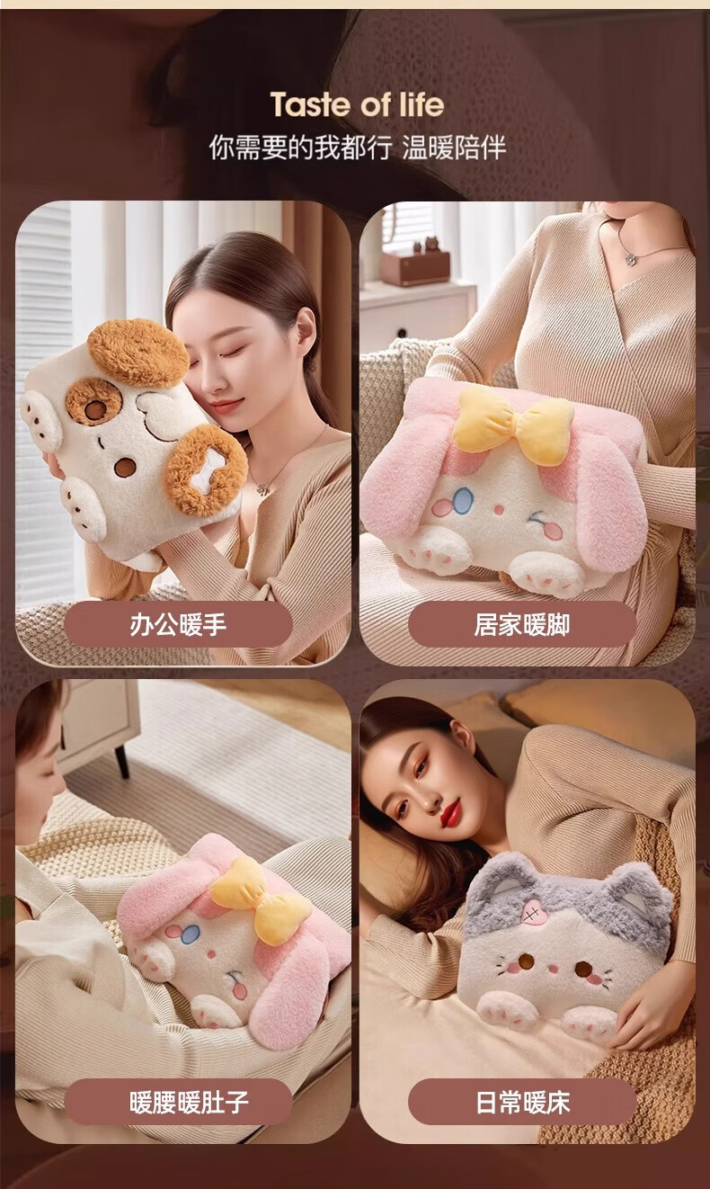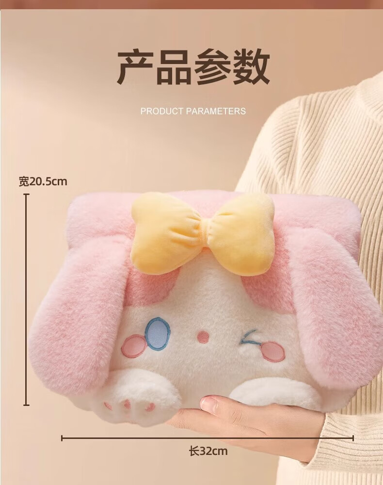 AILUKI日本高端热水袋充电防爆暖宝宝暖水袋女生热敷2025新款正品被窝 粉小兔【毛绒外套+国标水袋】