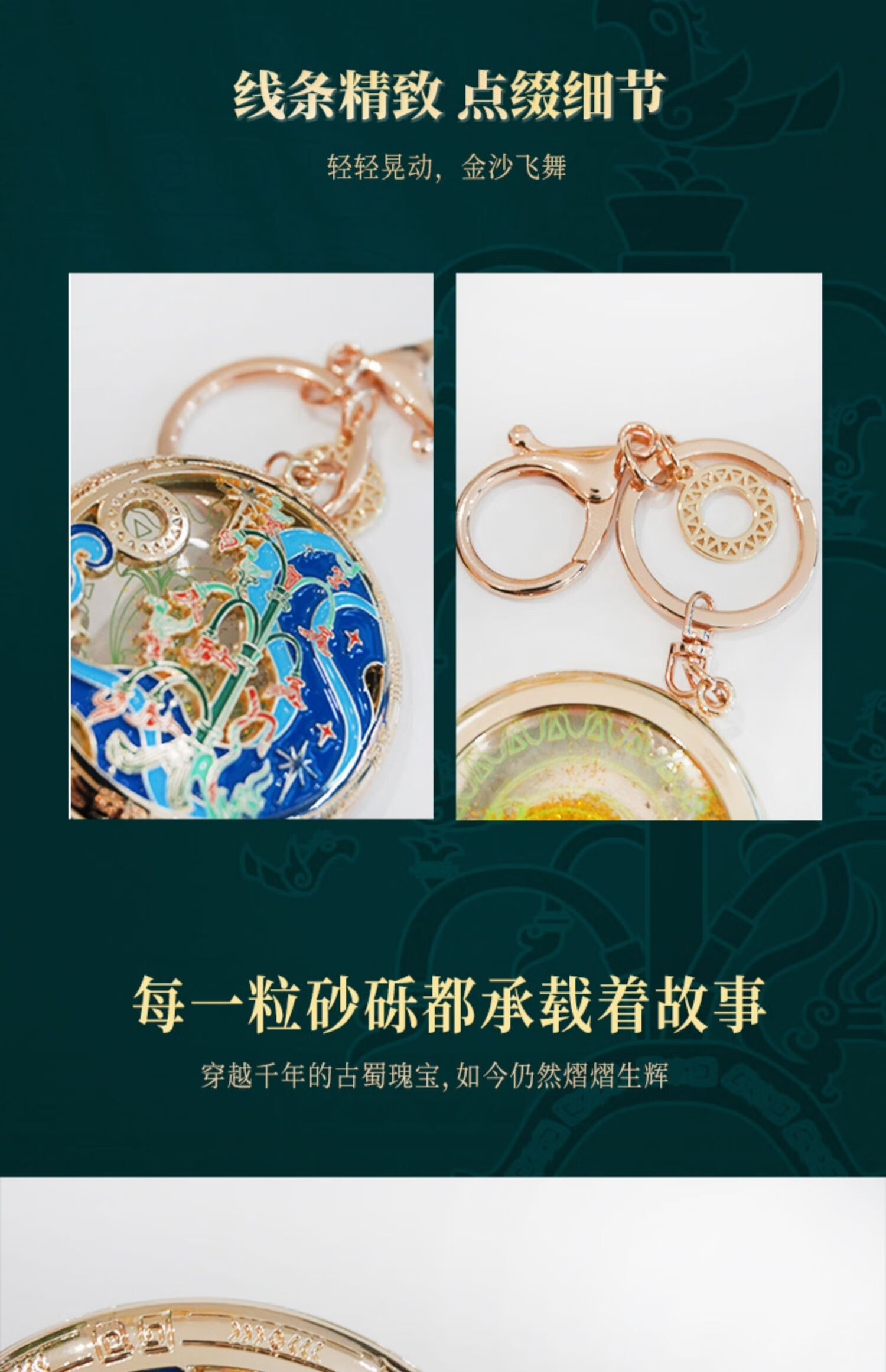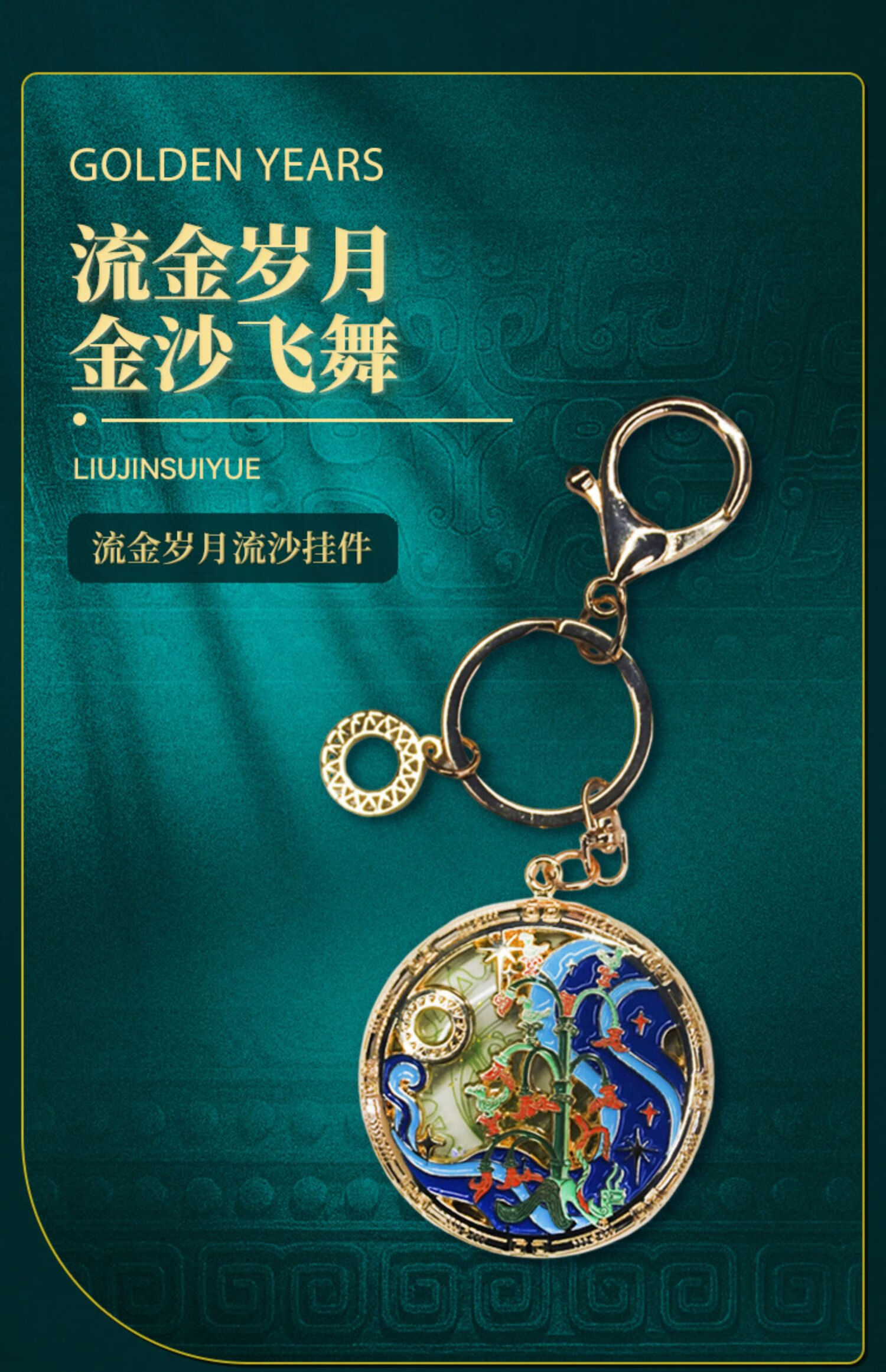 三星堆博物馆文创周边流金岁月流沙文创挂件钥匙扣星月交辉精美礼物送朋友挂饰金轮挂饰节日送人礼物纪念品挂件 三星堆星月交辉流沙挂