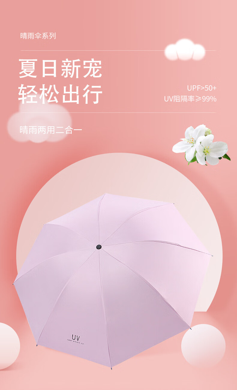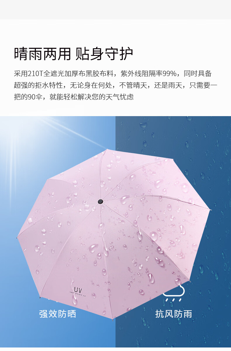 撞青春【精选厂家】手动晴雨伞黑胶雨伞三折雨伞防晒遮阳小巧太阳伞广告 粉色