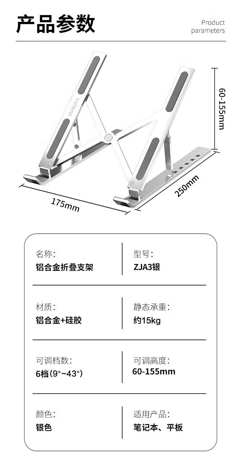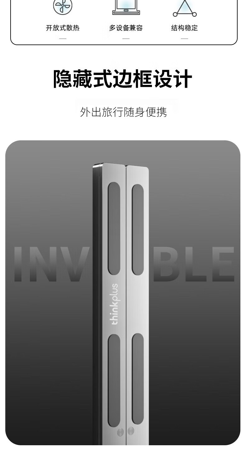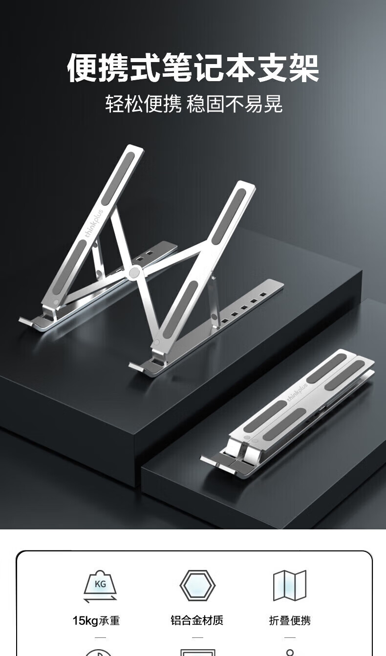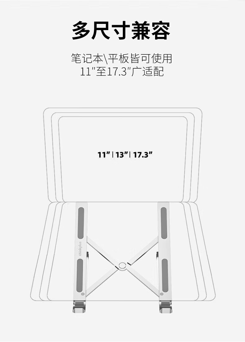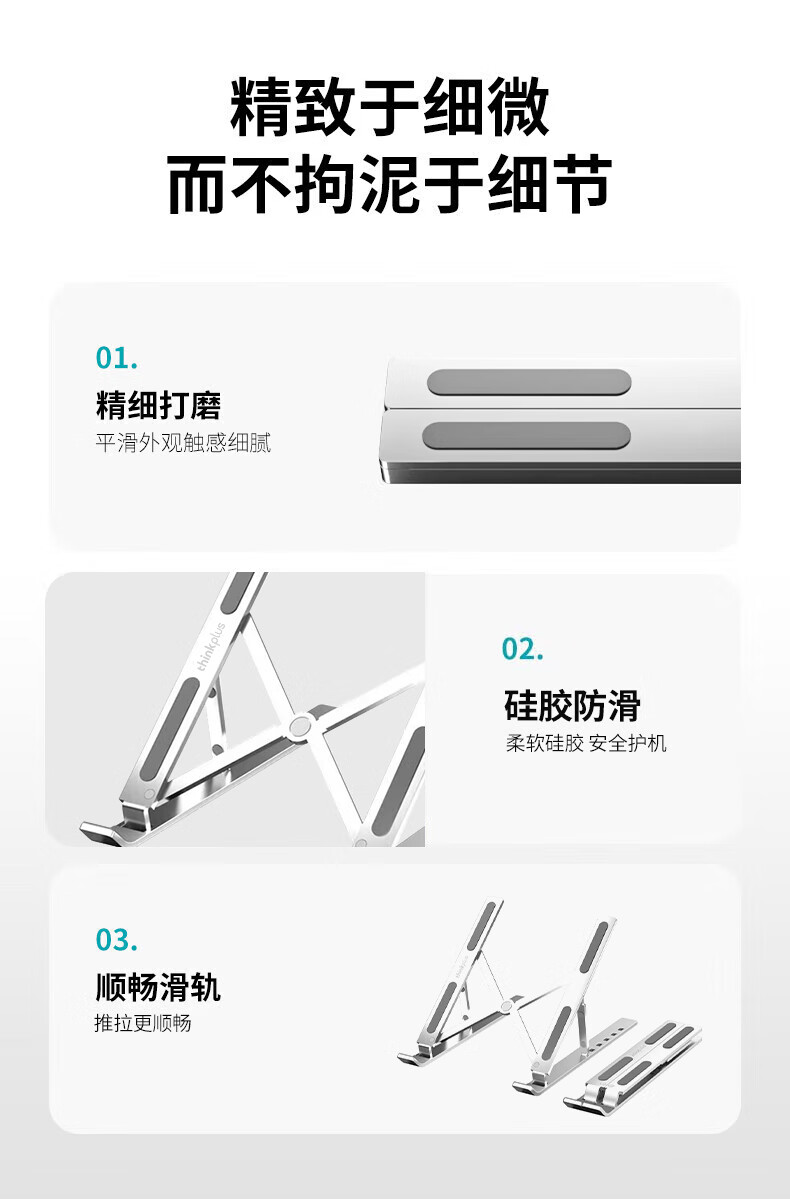 ThinkPad联想 笔记本支架电脑桌支架 便携立式铝合金增高架适用苹果小新PRO14 华为11-17.3英寸 ZJA3 银色