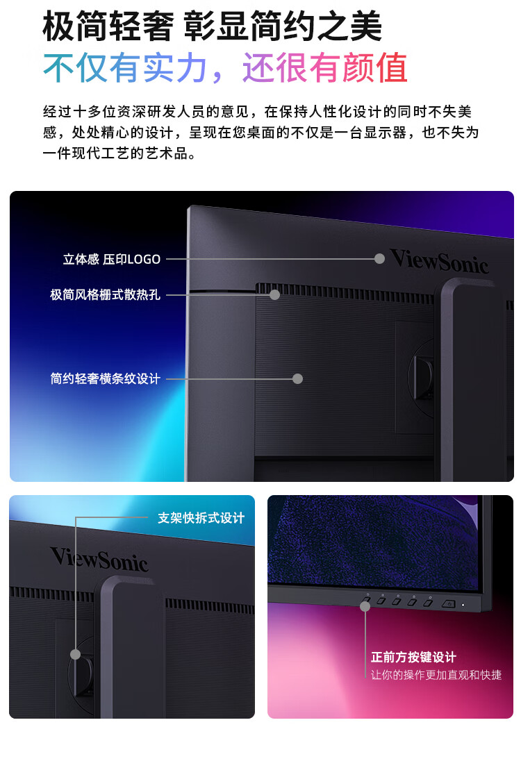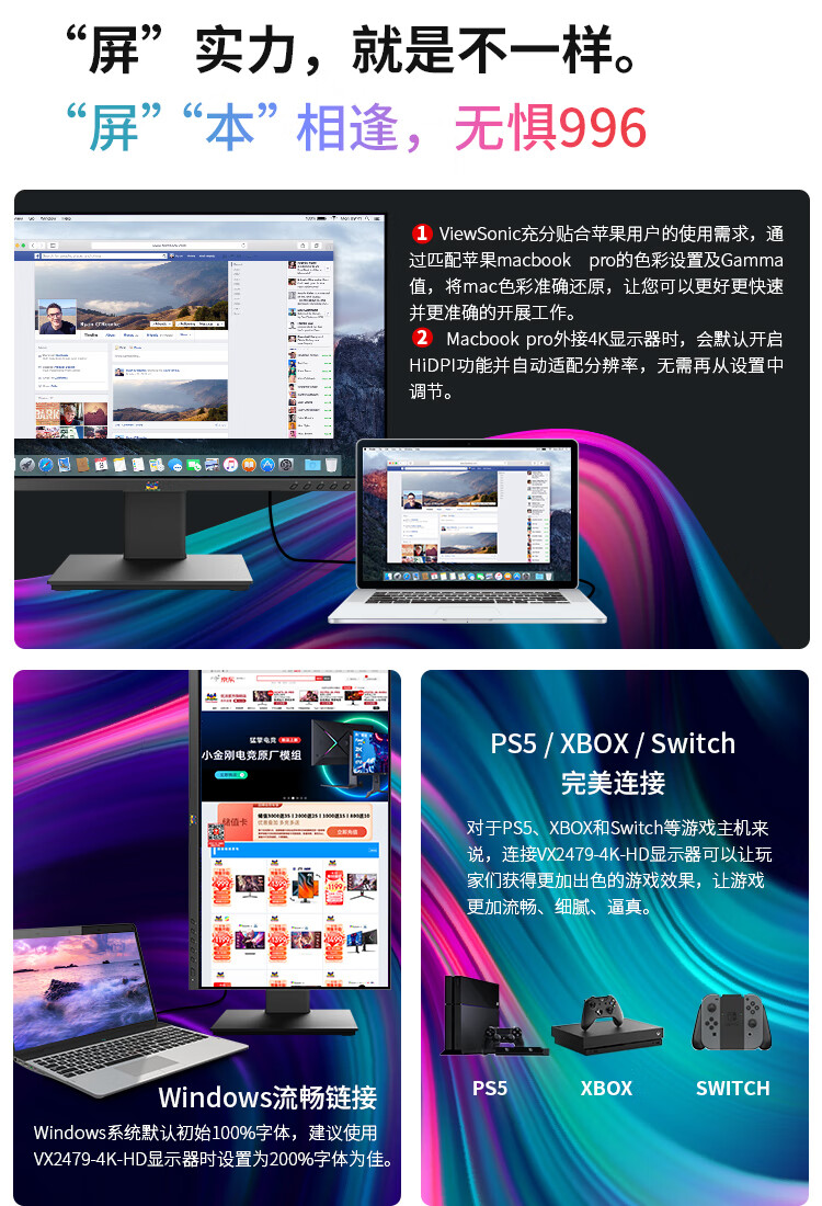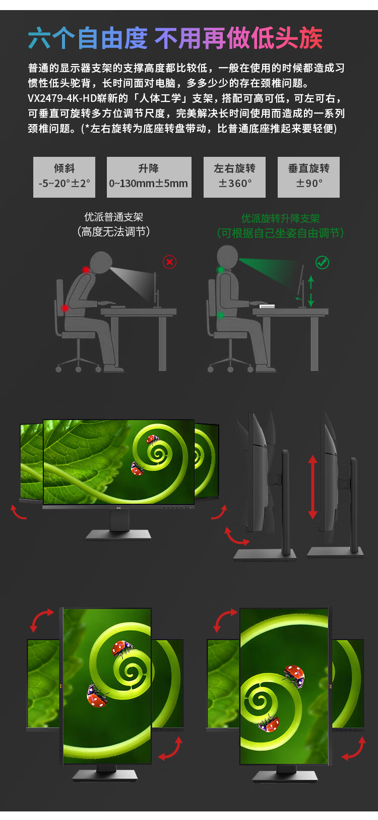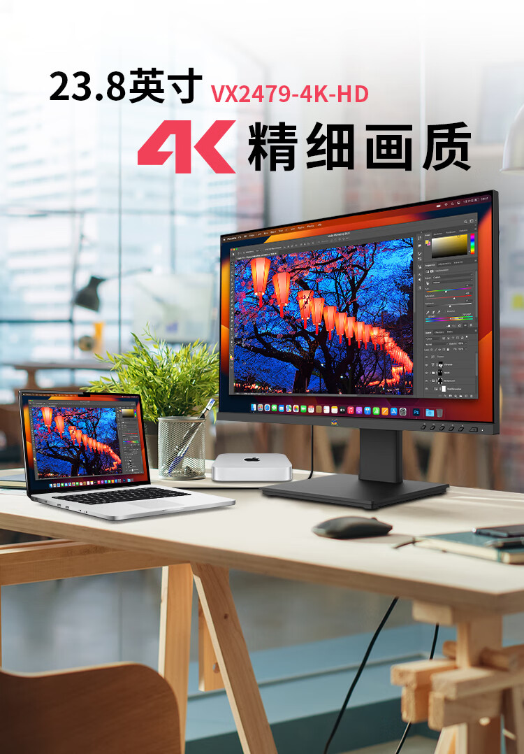 优派23.8英寸4K超清显示器IPS 10bit窄边框 升降旋转 爱眼不闪屏HDMI PS4电脑显示器24VX2479-4K-HD