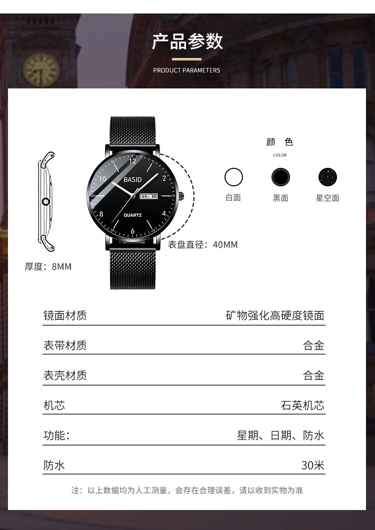 佰时顿公务员考试专用手表男女考研考公初高中大学生静音机械风石英手表