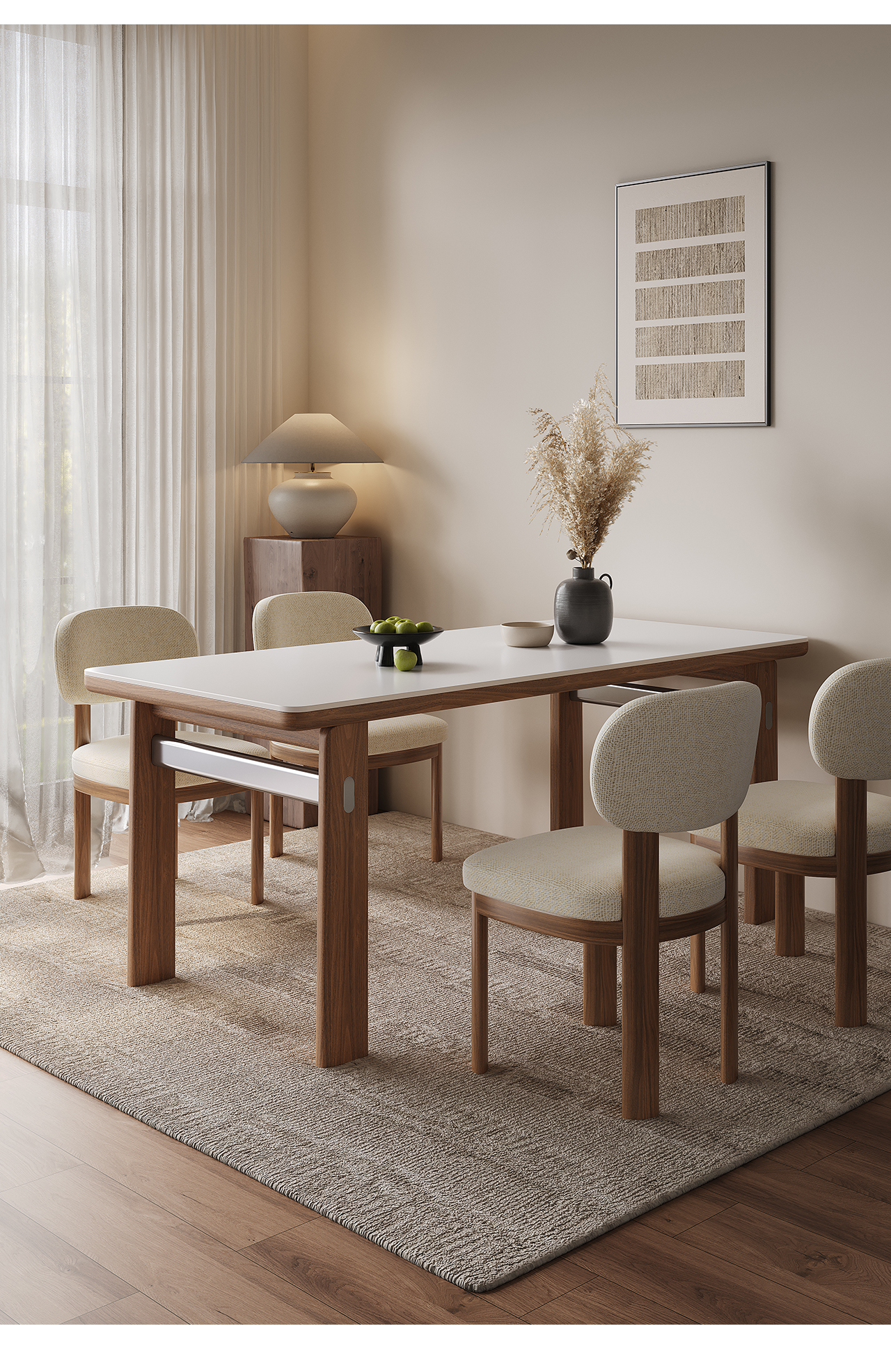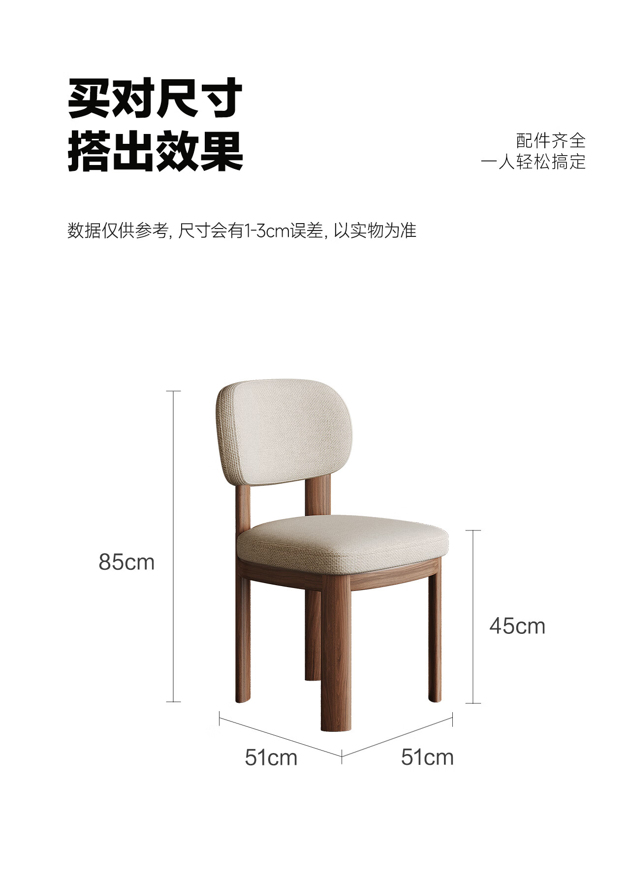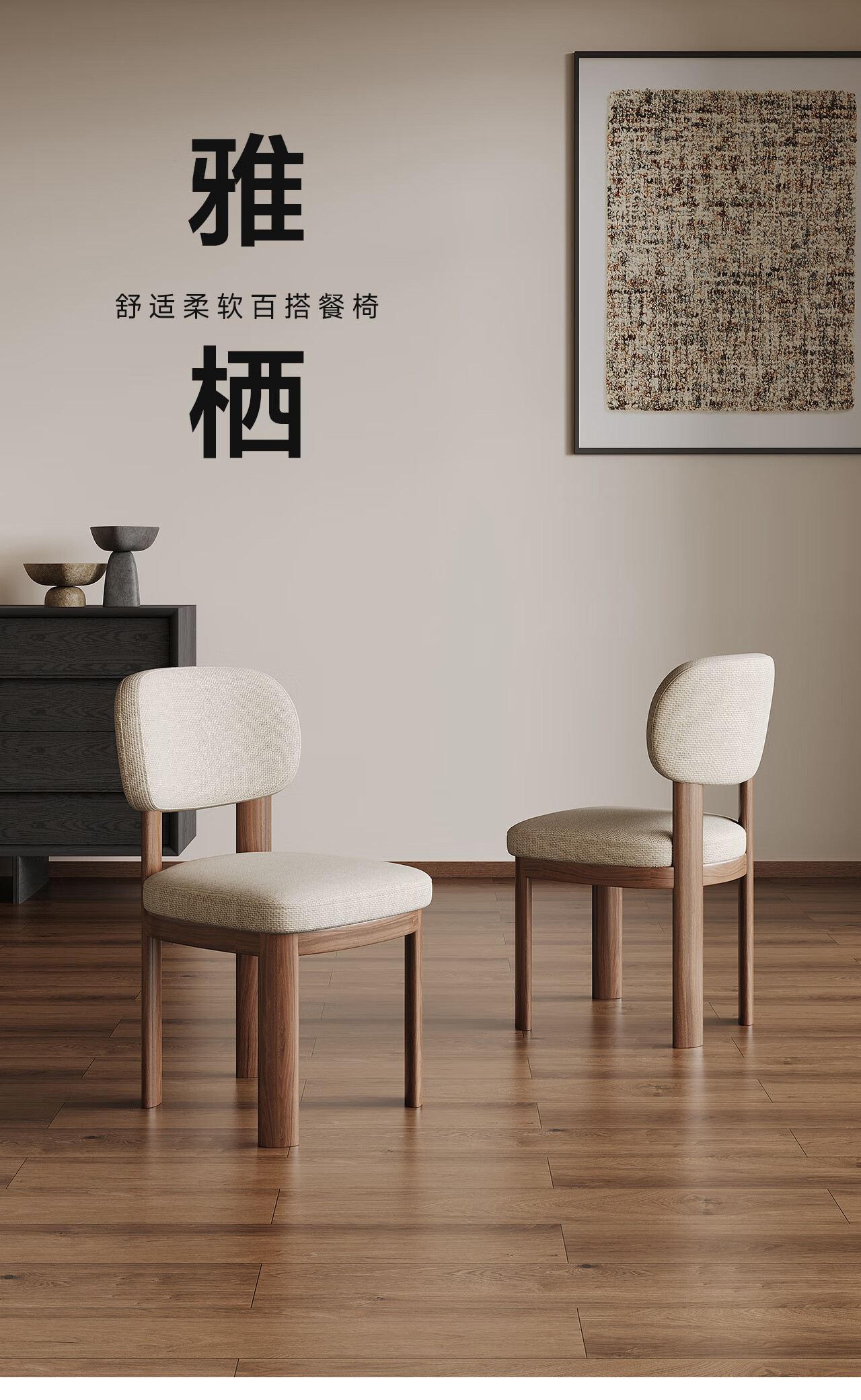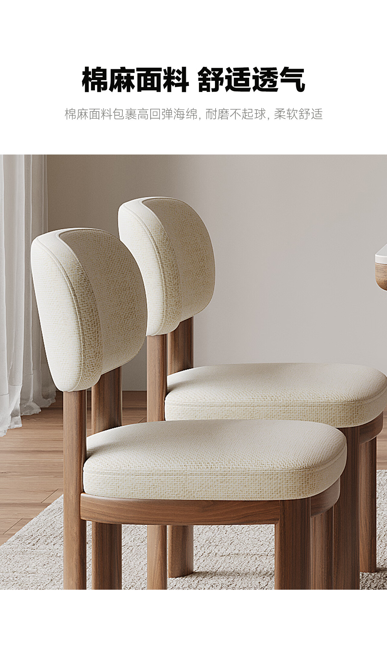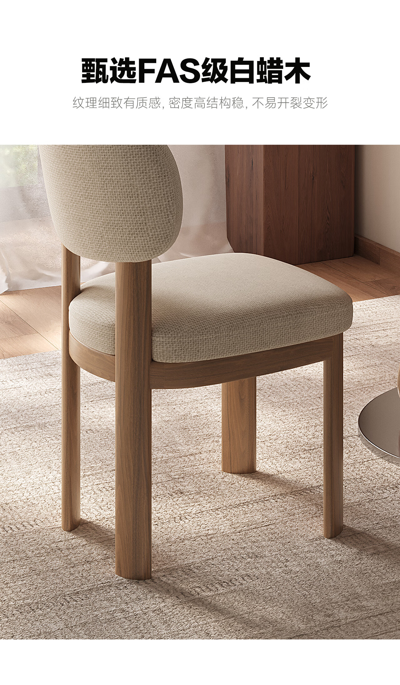 全慕·雅栖实木餐椅轻奢简约感棉麻透气饭桌椅家用靠背椅子 雅栖餐椅