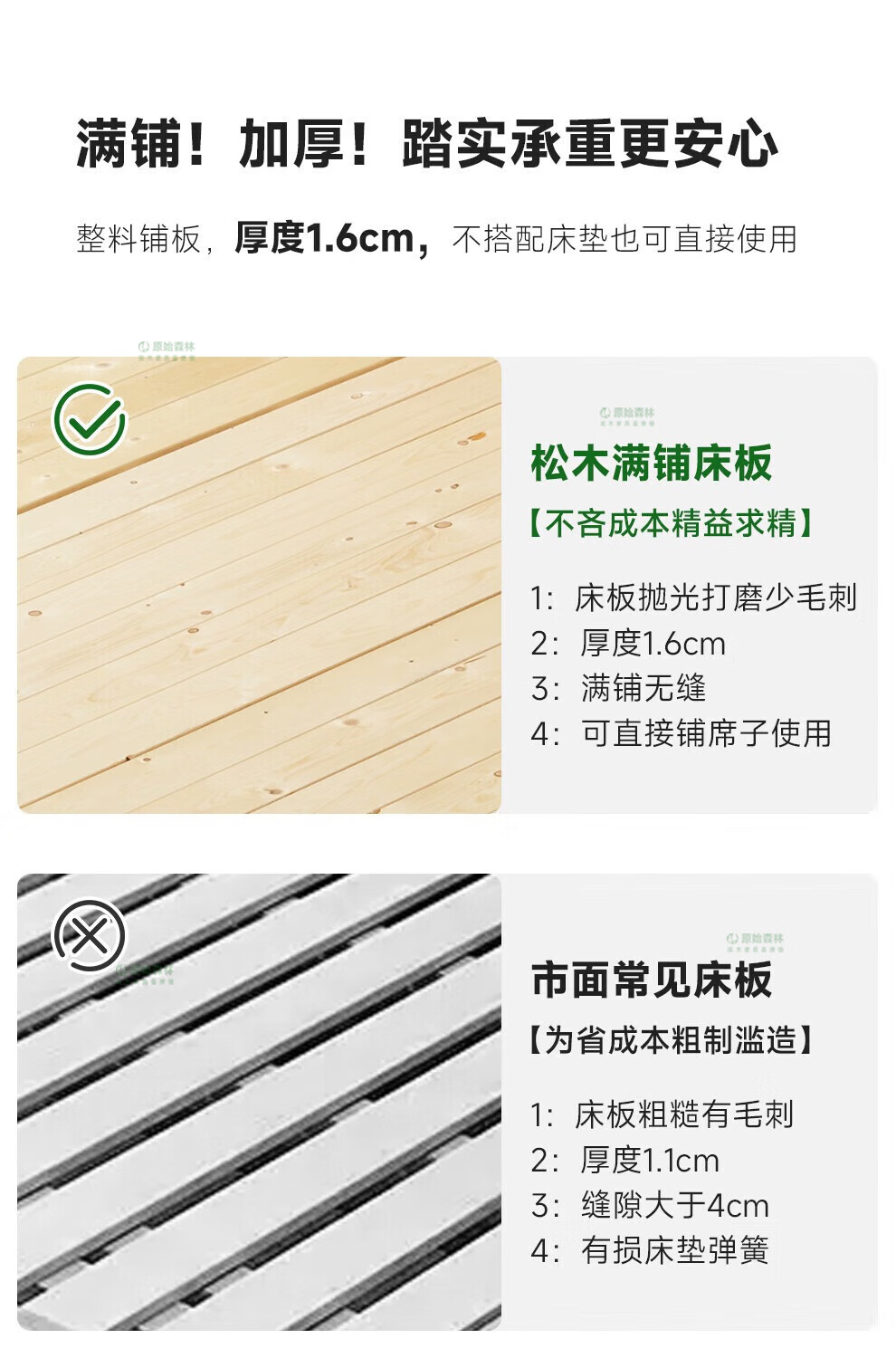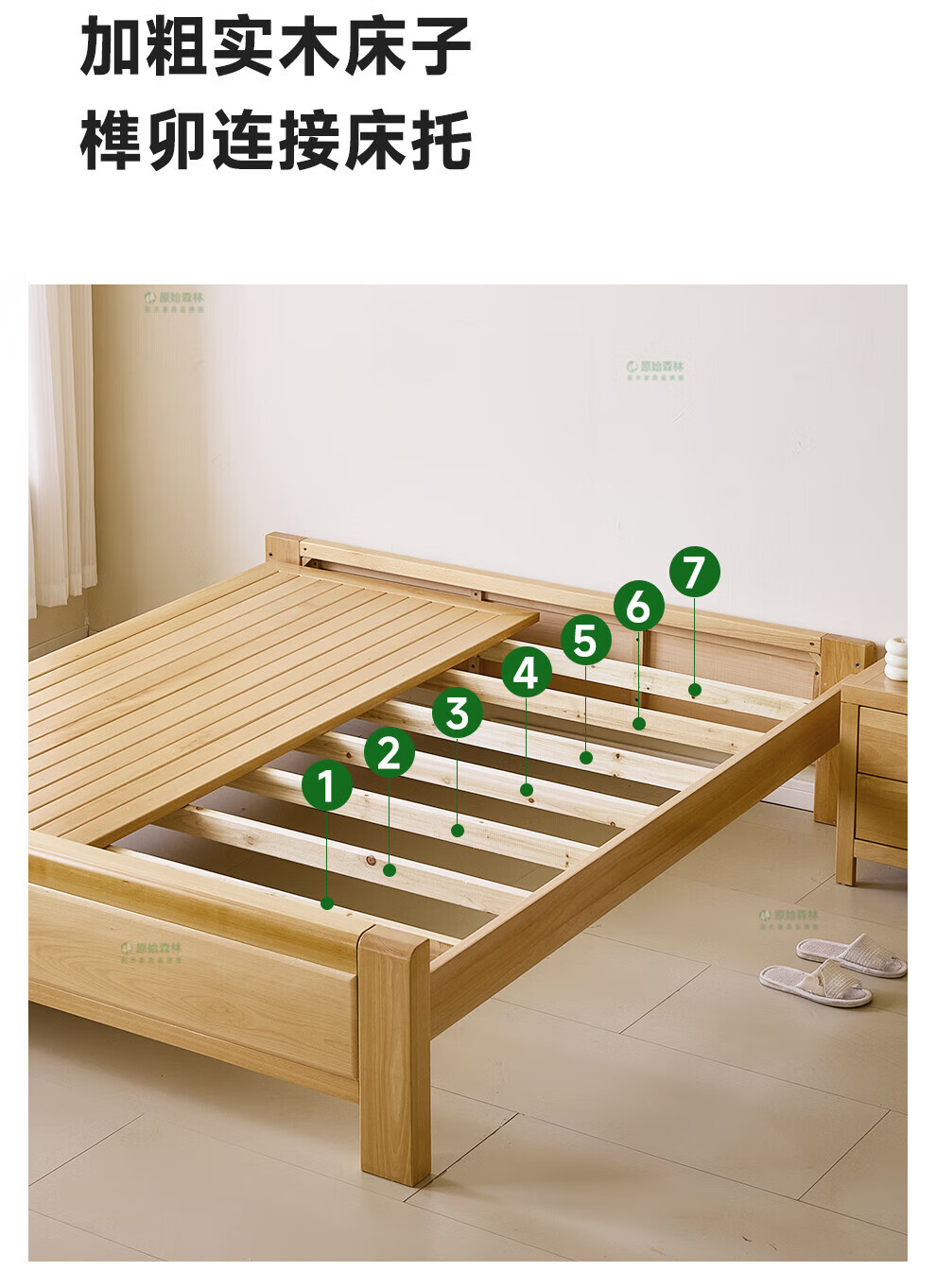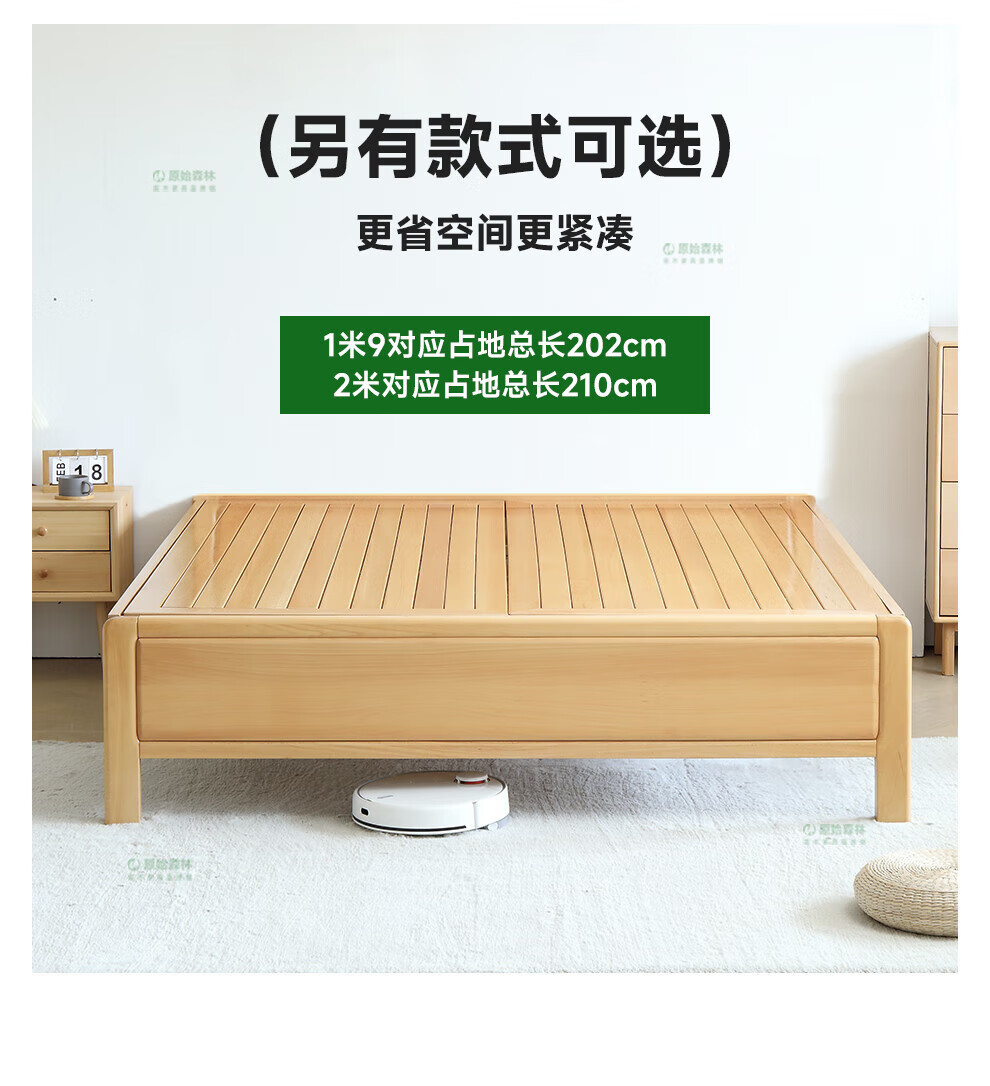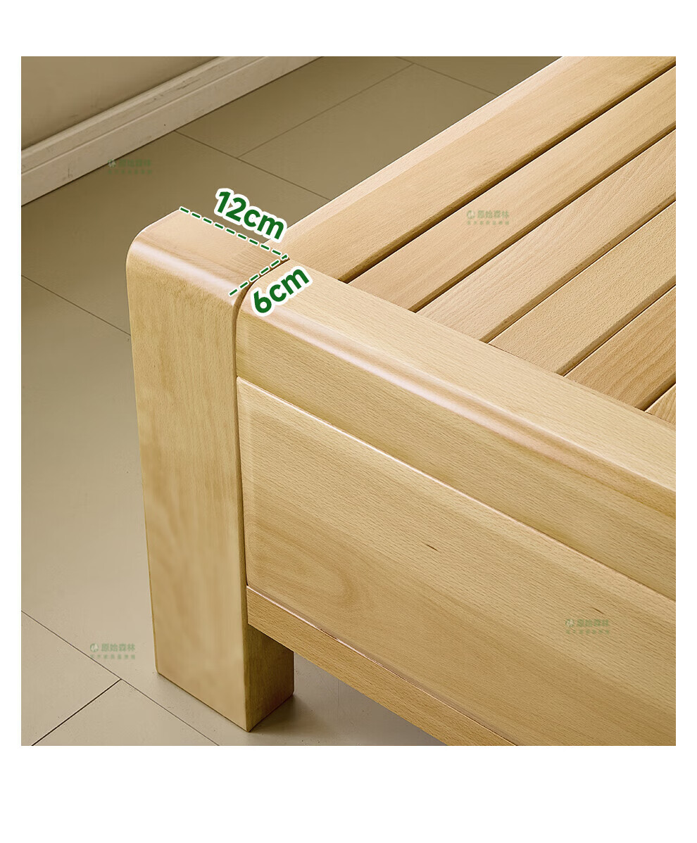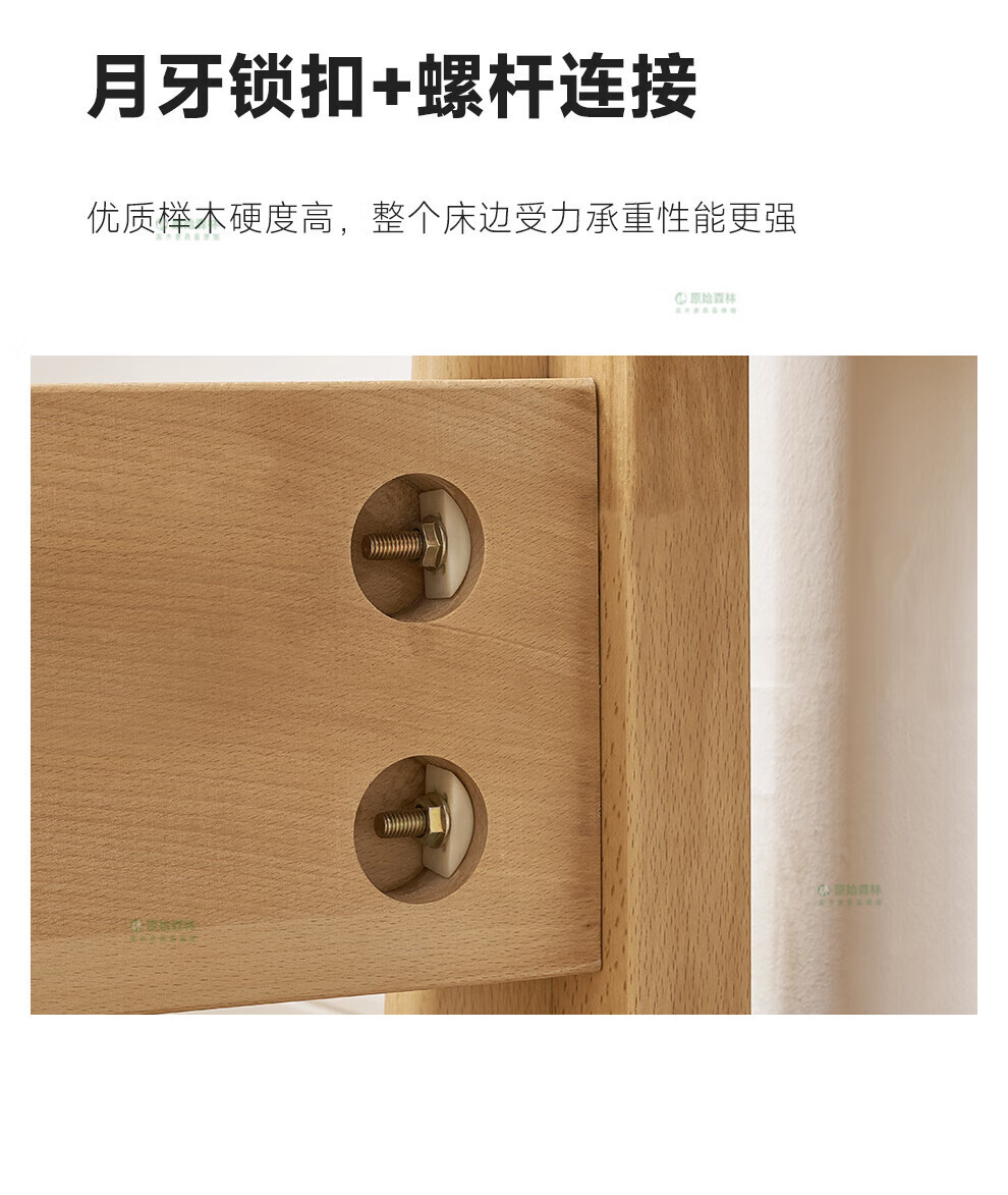原始森林全实木无床头榉木床可调高度榻榻米小户型无靠背齐边排骨架双人床 无床头单床 1500*2000mm-配松木满铺床板
