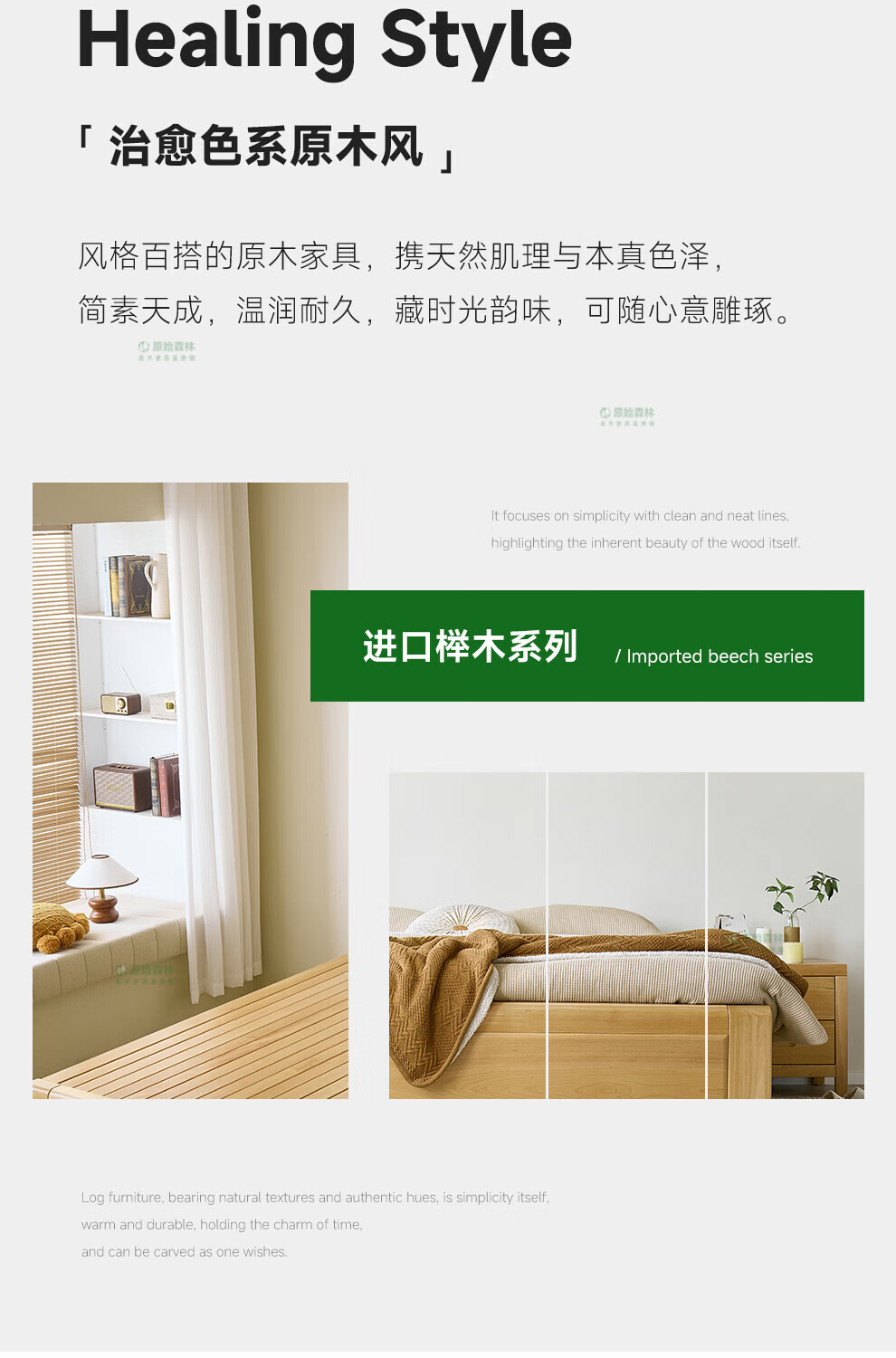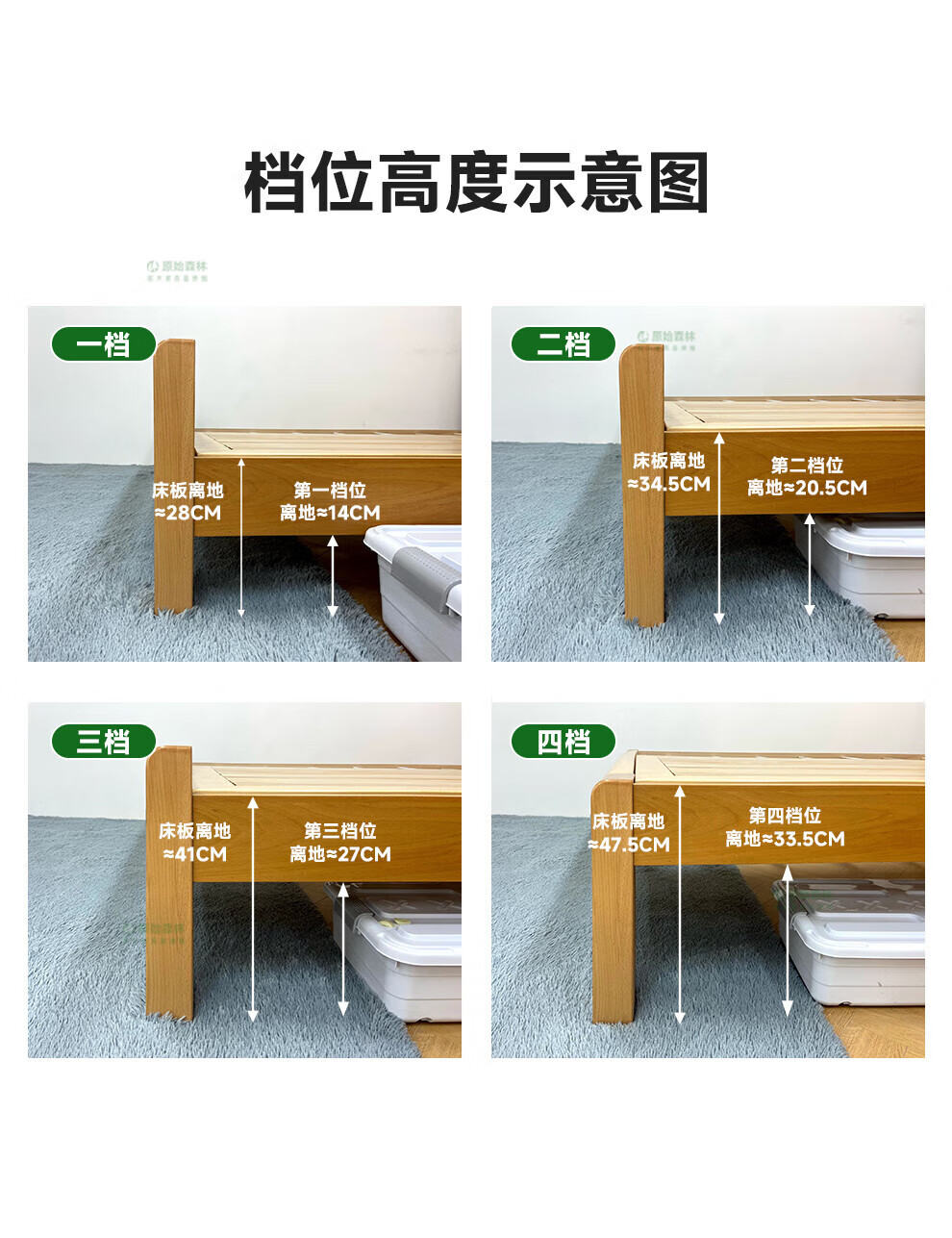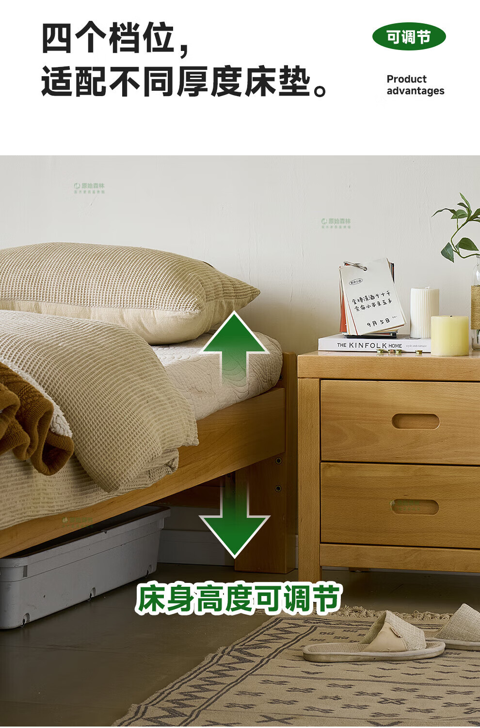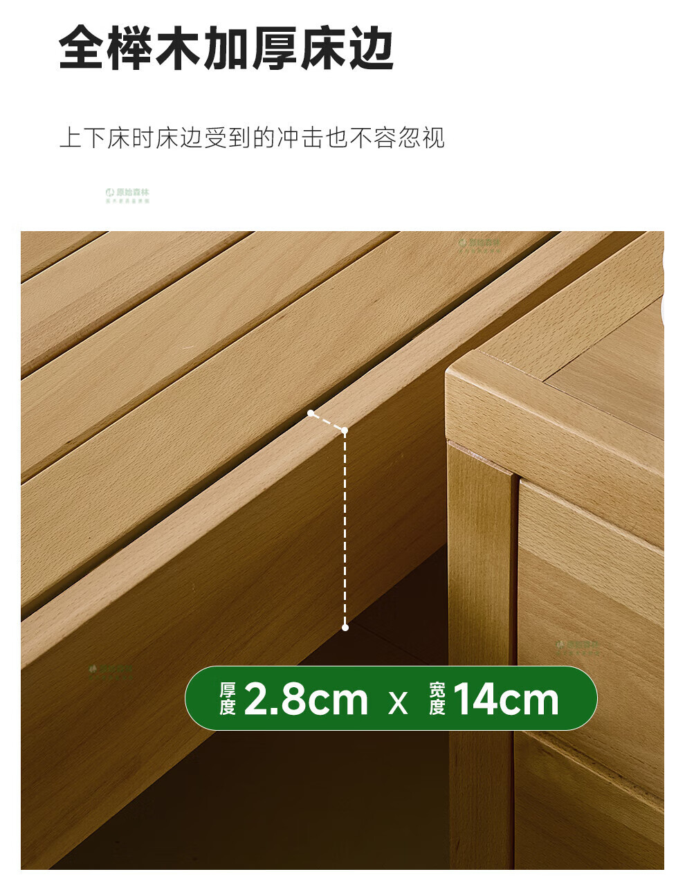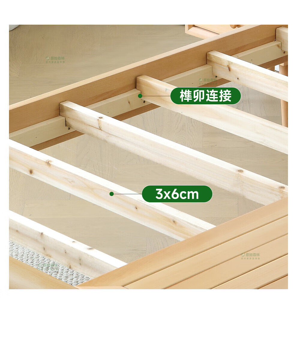 原始森林全实木无床头榉木床可调高度榻榻米小户型无靠背齐边排骨架双人床 无床头单床 1500*2000mm-配松木满铺床板