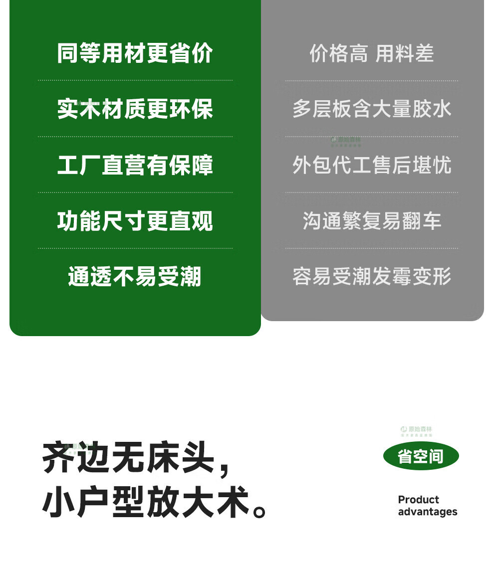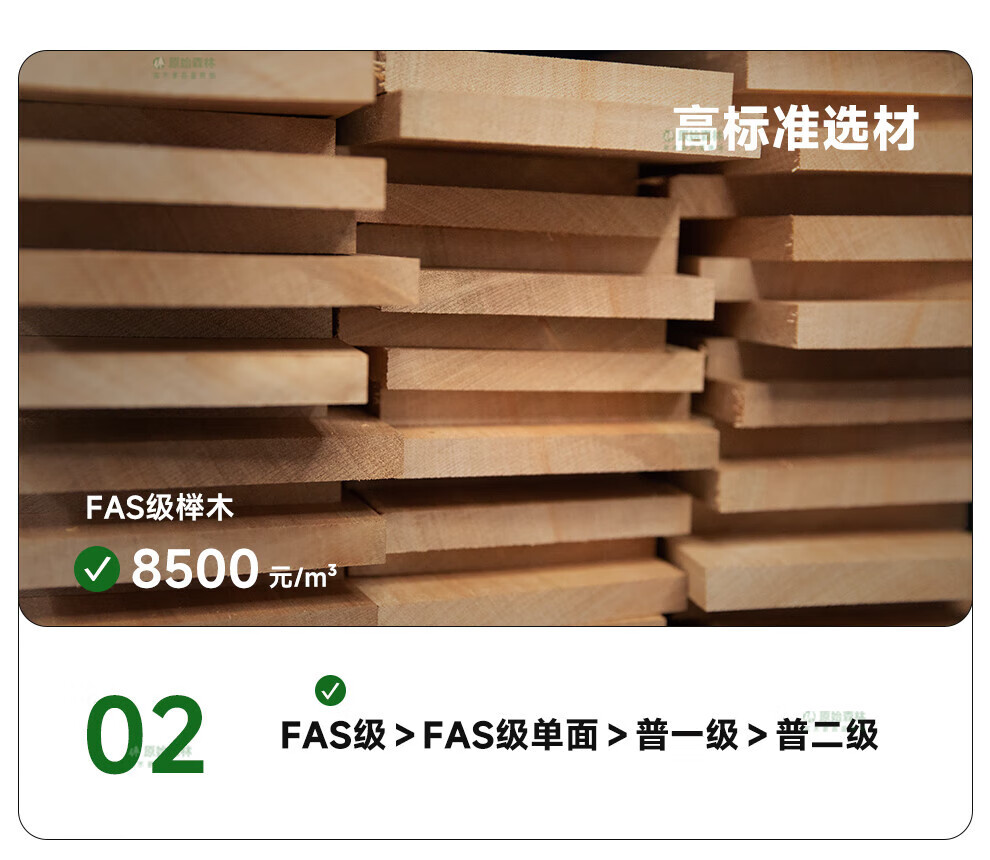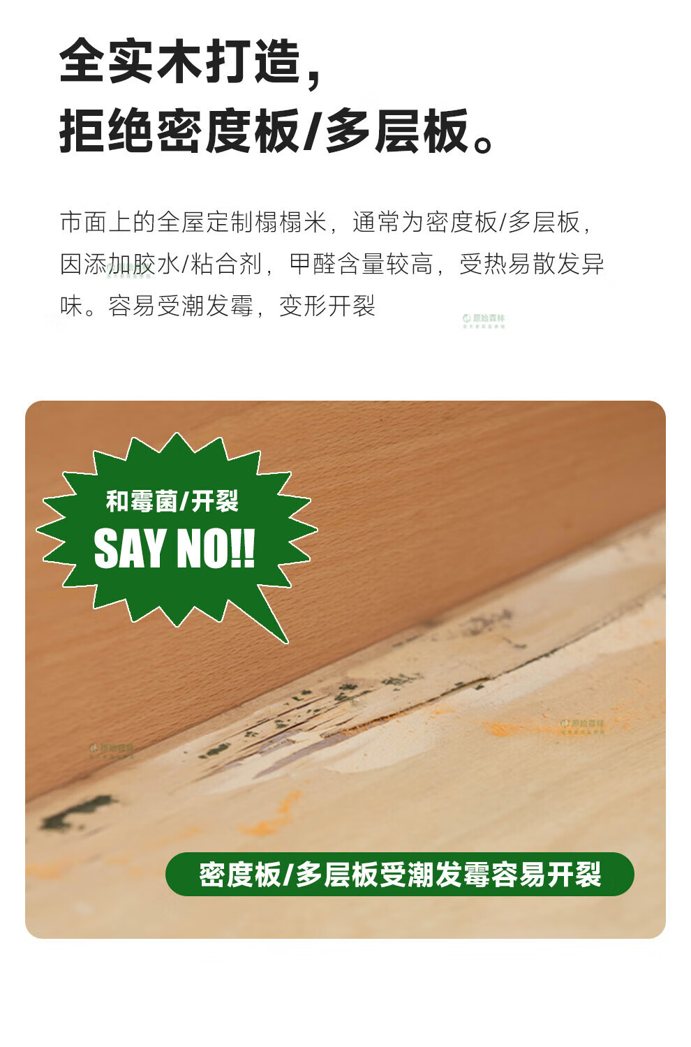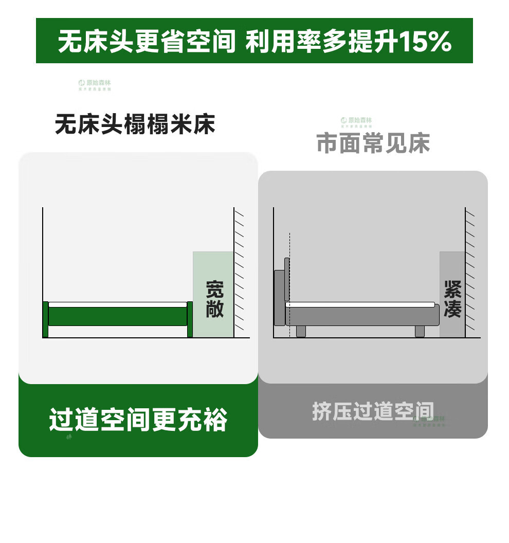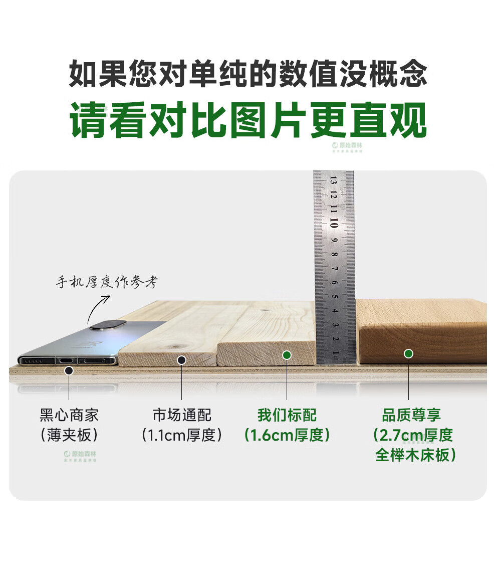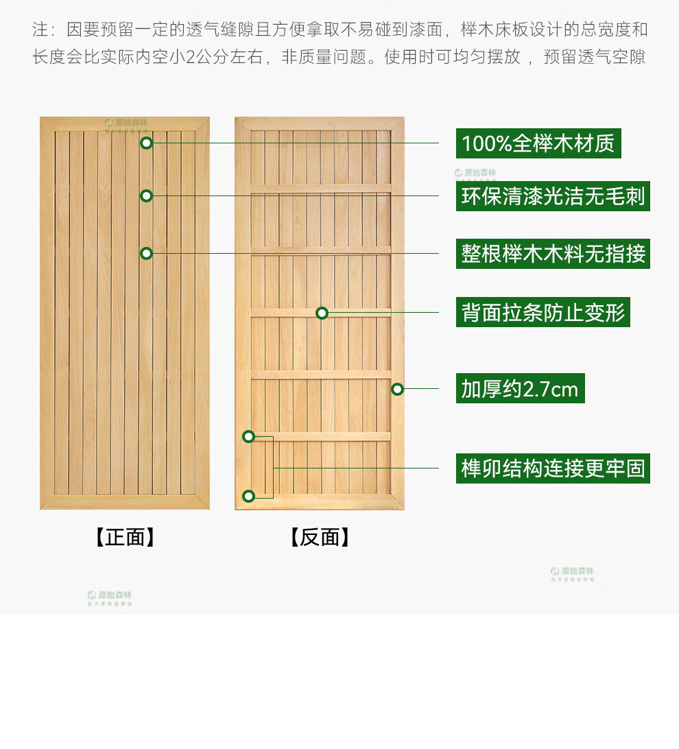 原始森林全实木无床头榉木床可调高度榻榻米小户型无靠背齐边排骨架双人床 无床头单床 1500*2000mm-配松木满铺床板
