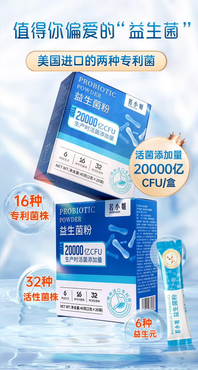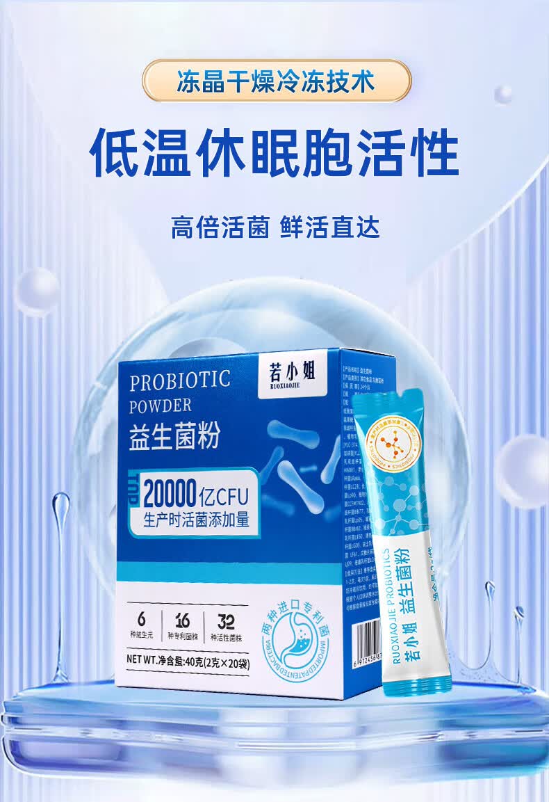 若小姐 益生菌20000亿成人肠胃肠道便秘脾胃虚弱儿童中老年人调理粉 2盒