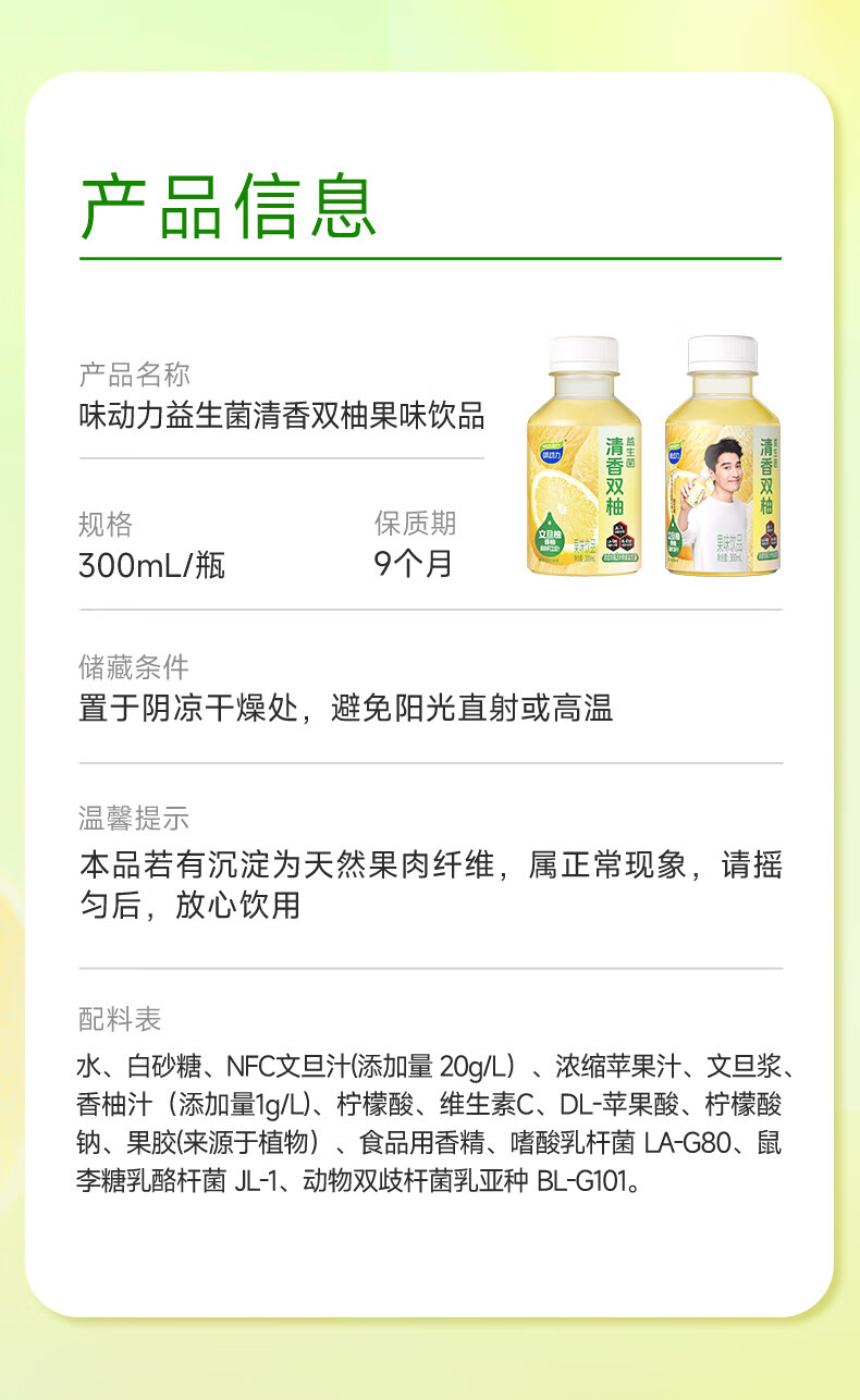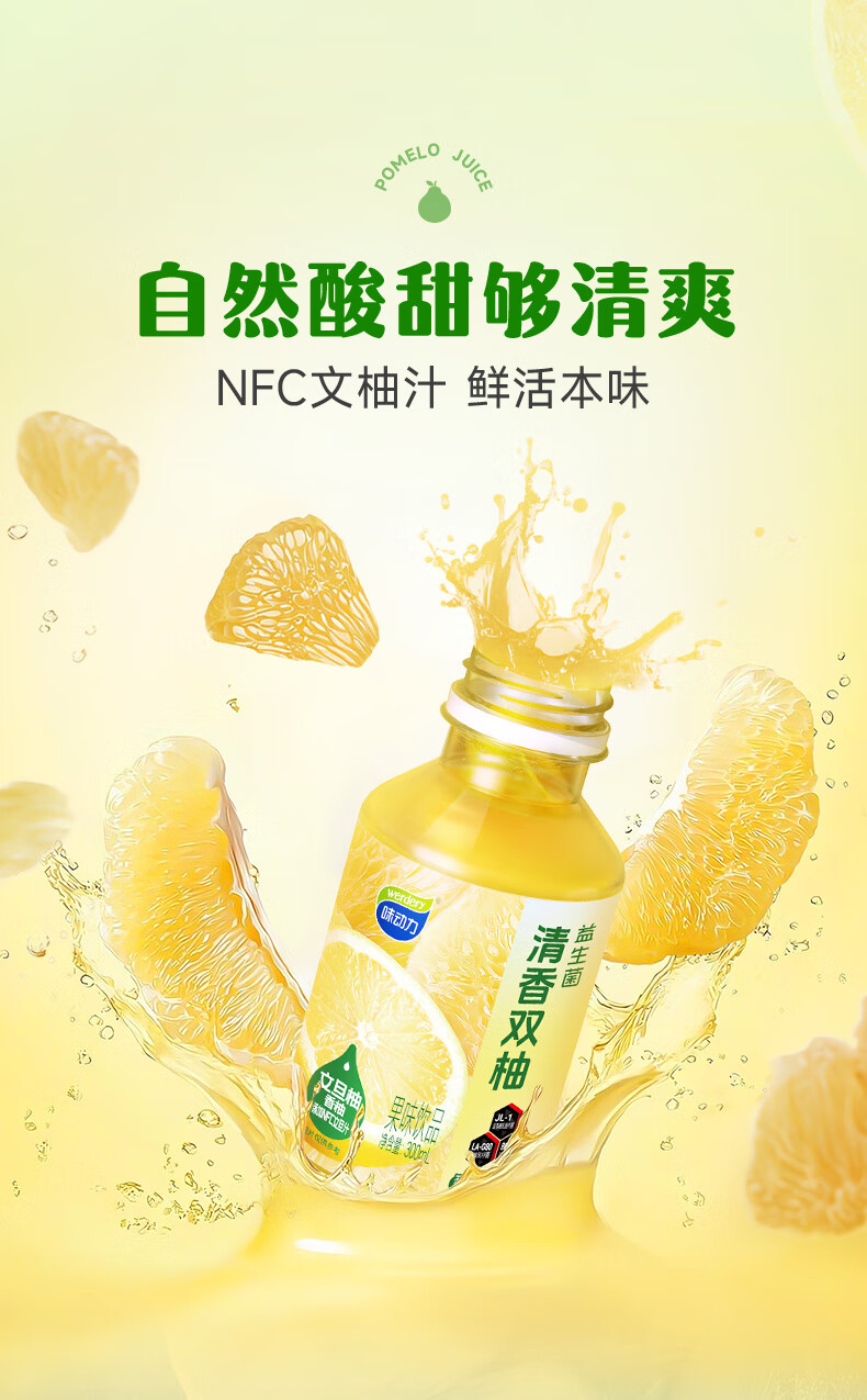 味动力益生菌双柚汁含NFC文柚汁果味饮品0脂饮料整箱 300ml*8瓶日常送礼