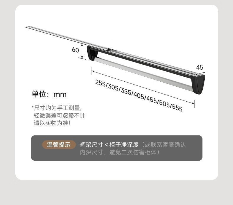 固特伸缩裤架顶装侧装多功能收纳架裤挂裤抽滑轨挂衣杆晾衣架衣柜收纳 顶/侧两用款【柜深≥25.5】黑色