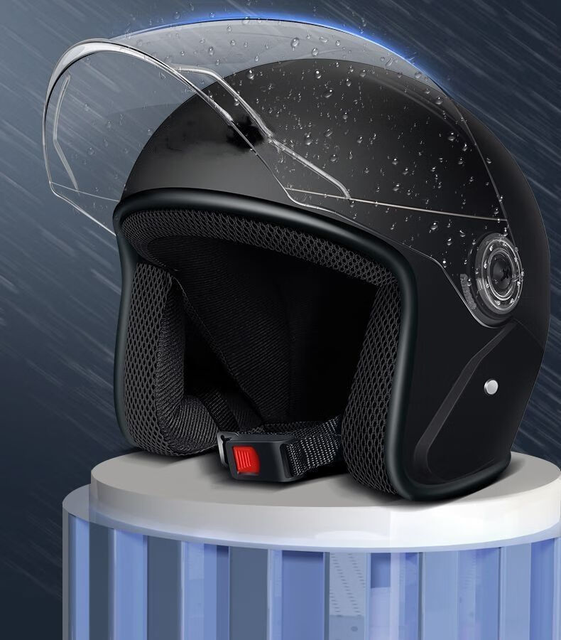 澳颜莱头盔冬季防冻保暖 新国标3C认证电动车头盔女冬季保暖四季电瓶摩托车全半盔男安全帽 3C新国标【钢琴黑】高清防雾