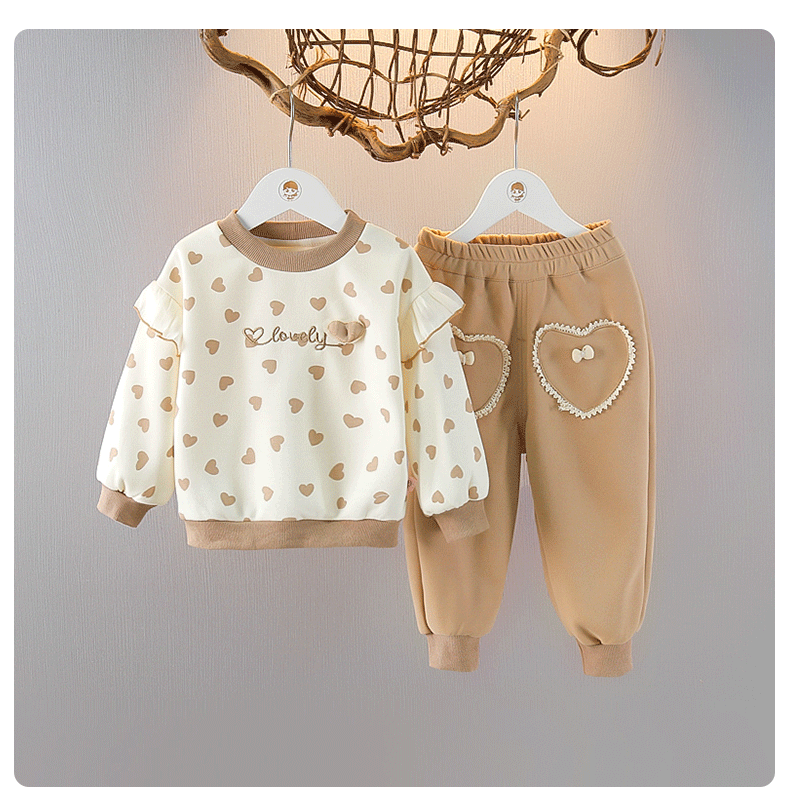G.duck小黄鸭女童套装25秋季新款女宝宝运动套一周岁春秋儿童卫衣两件套 卡其色 【套装】 80 码建议身高70-80cm
