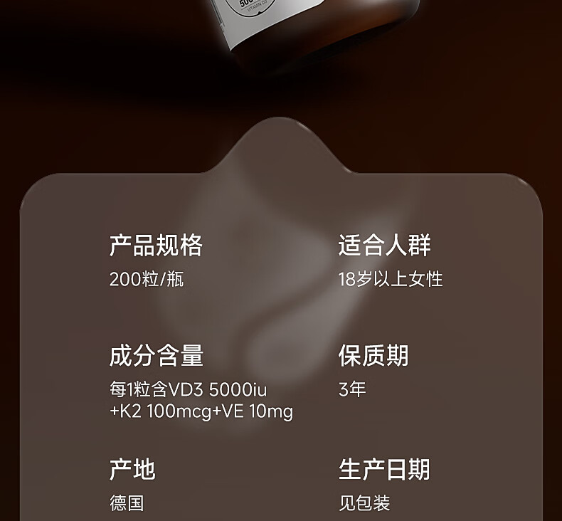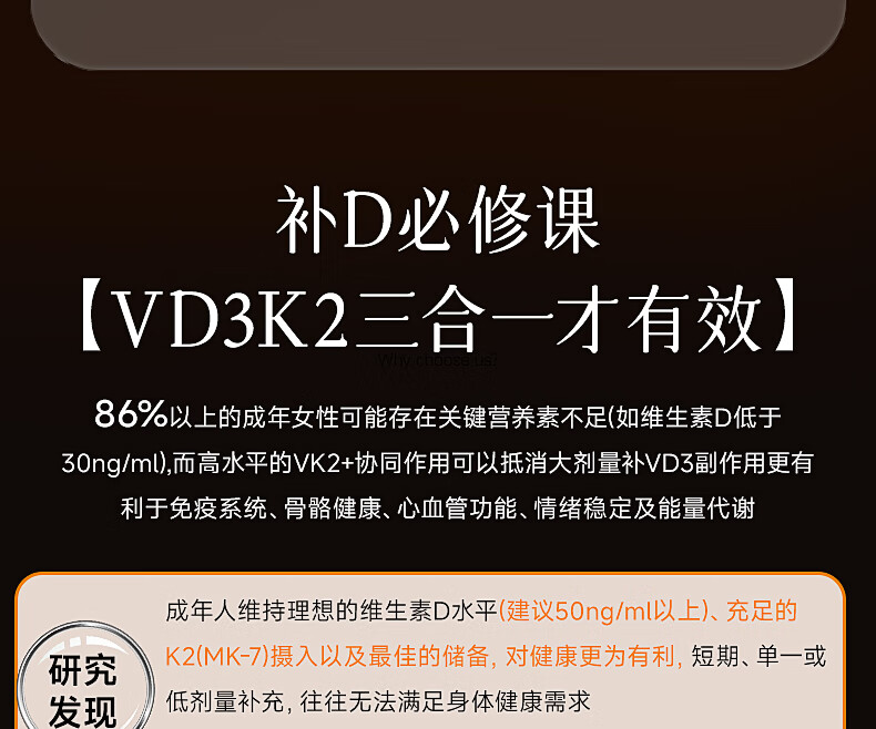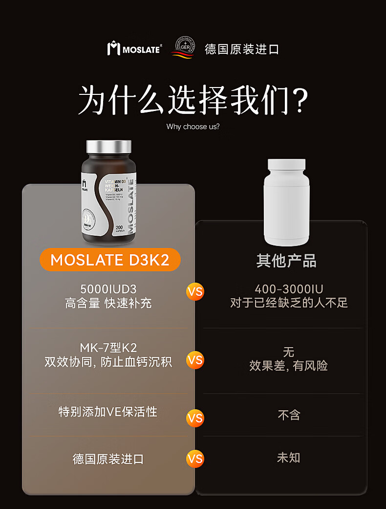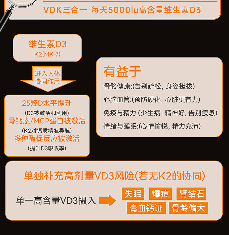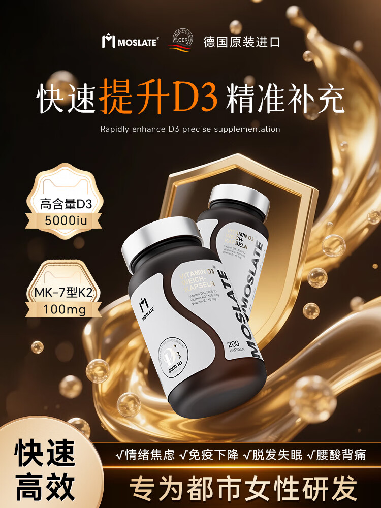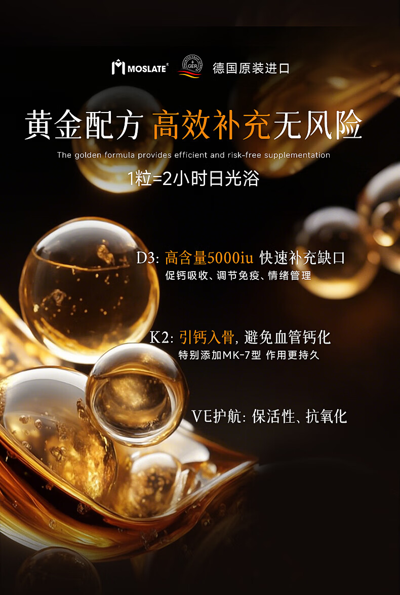 MOSLATE维生素d3K2成年人5000iu【阳光瓶】维生素D3成人女