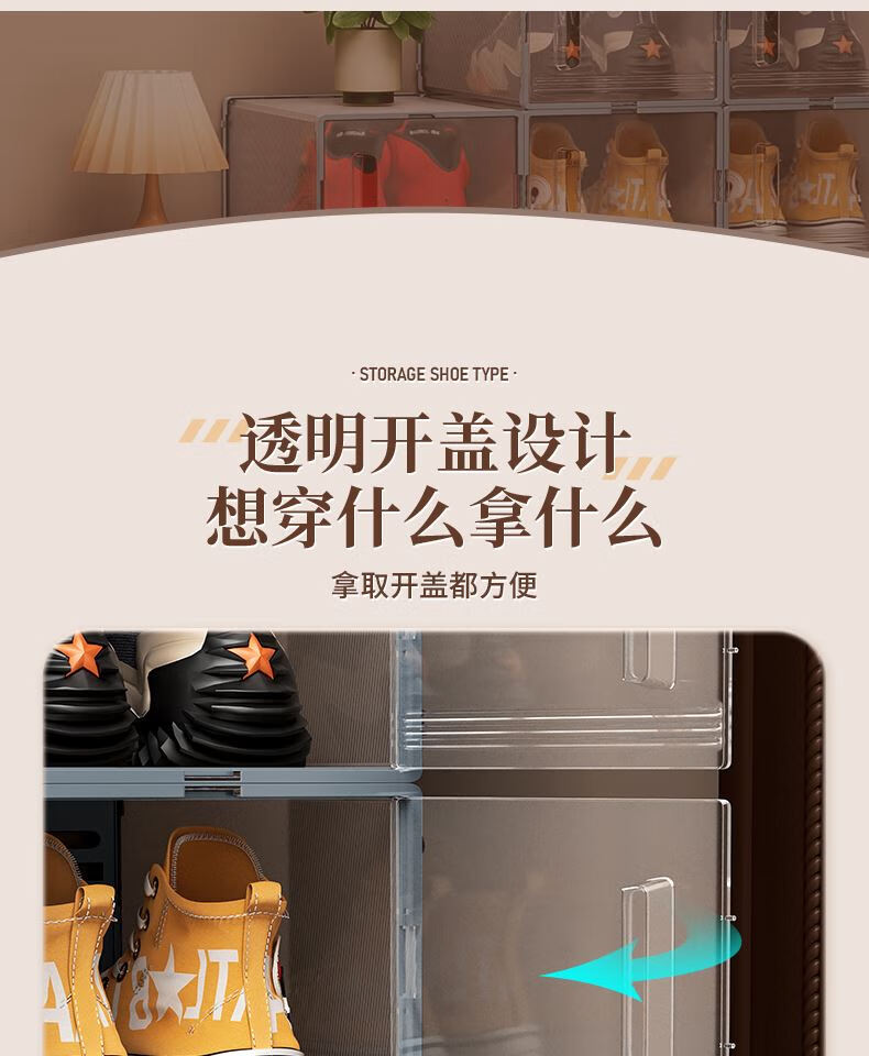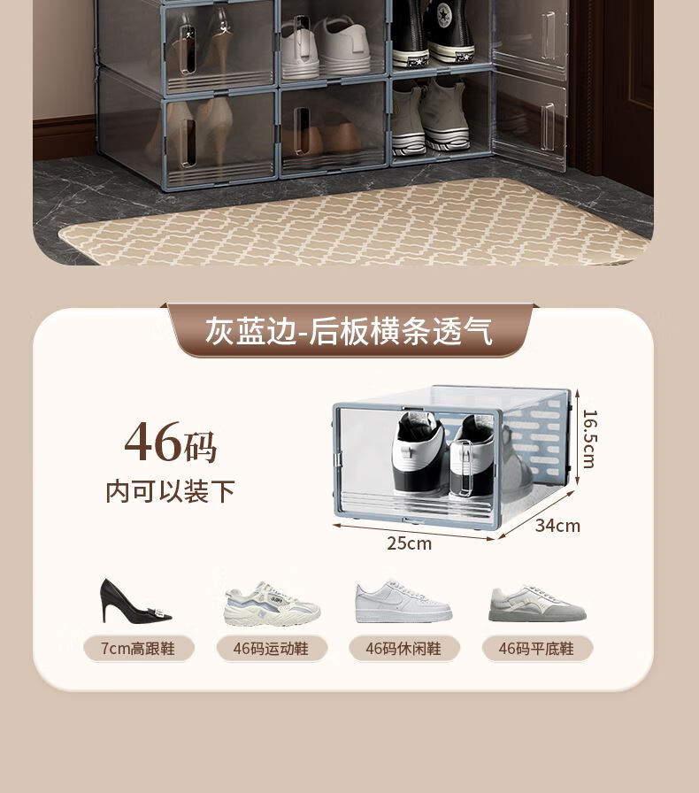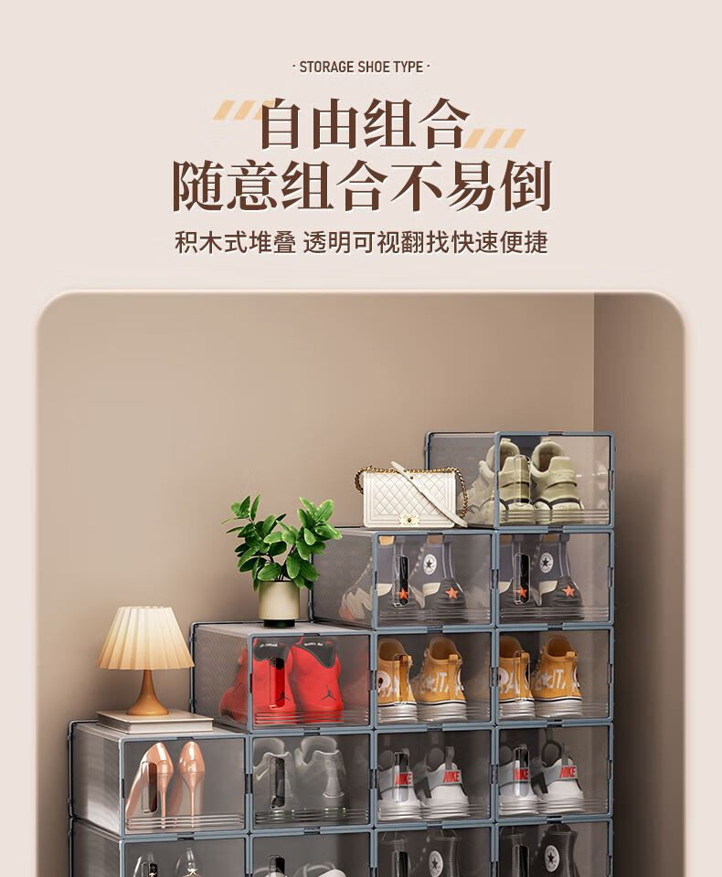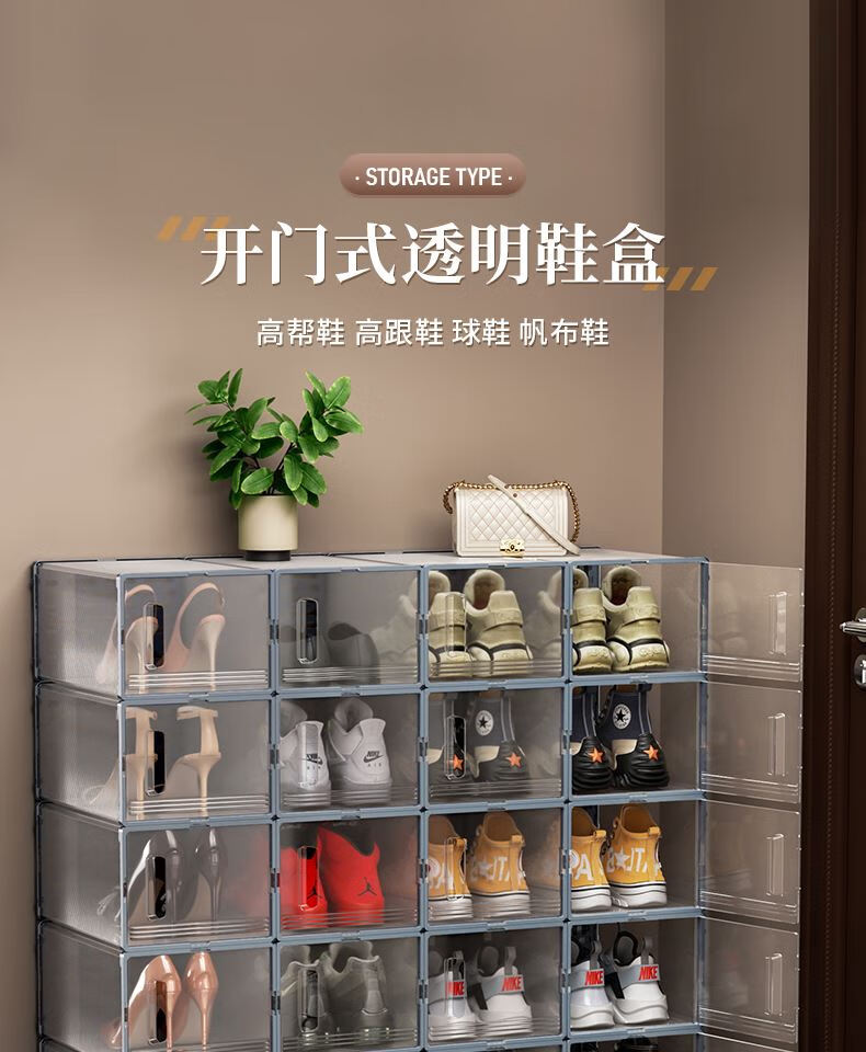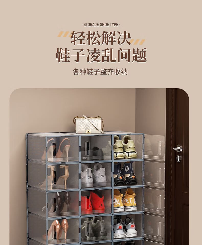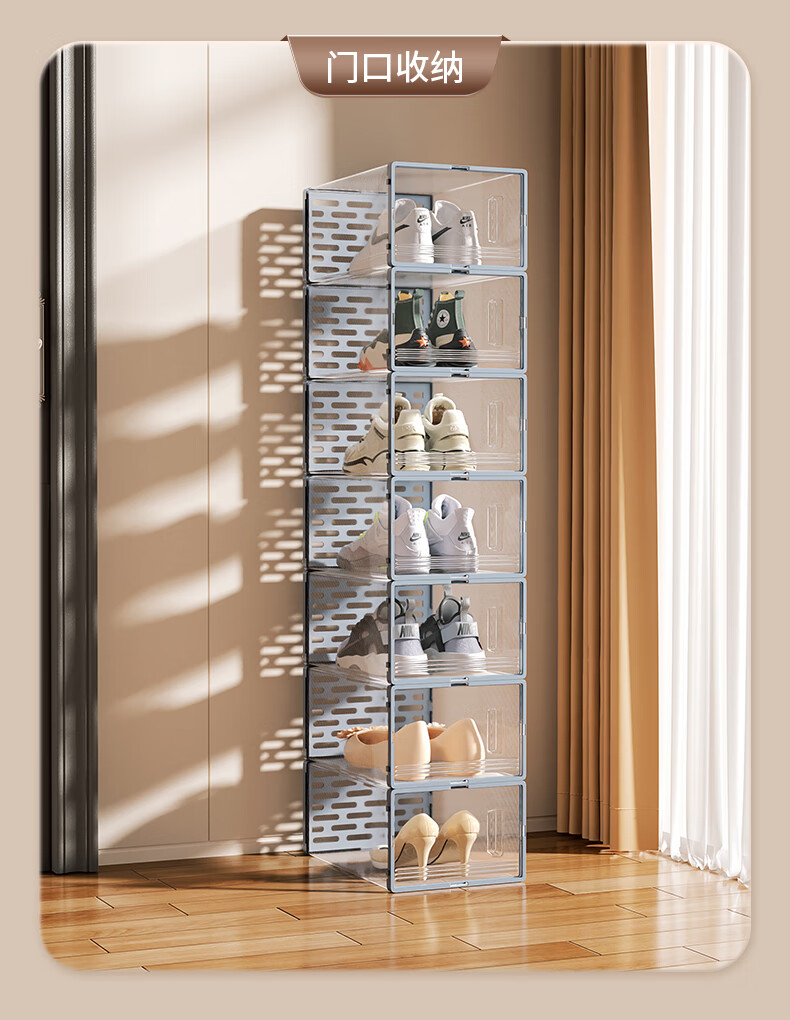 木格格透明鞋盒收纳盒简易鞋柜门口入户柜鞋子收纳神器防尘鞋架学生宿舍 特大加厚/加硬【6个装】