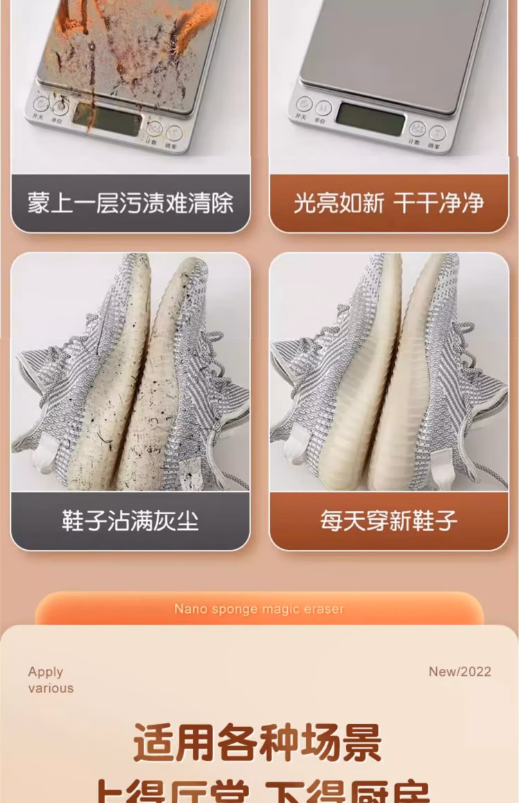 DEATKN日本新升级魔力擦去污纳米海绵耐用洗茶杯海绵茶具去茶渍去污 【60倍】纳米级高密度白色20个