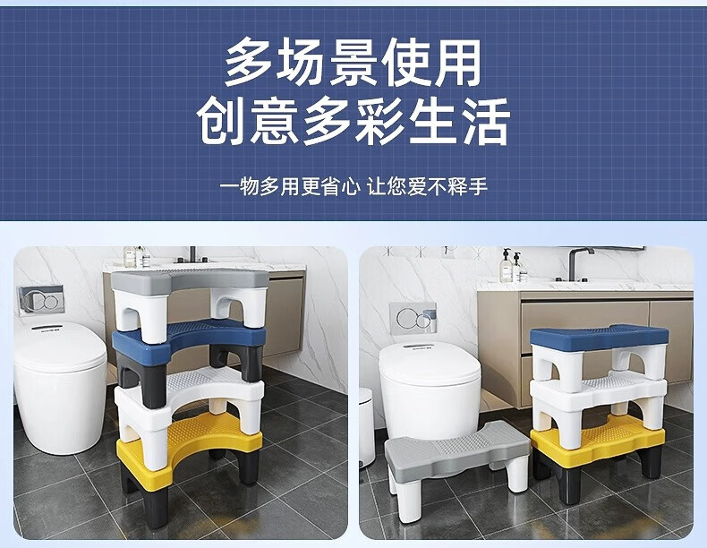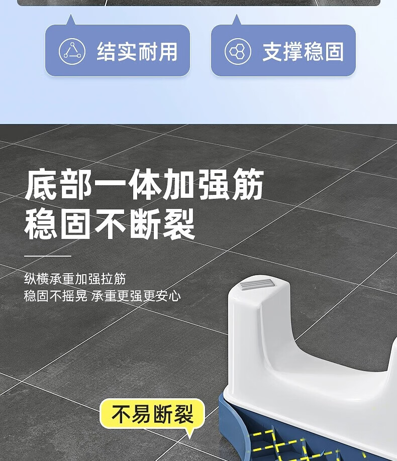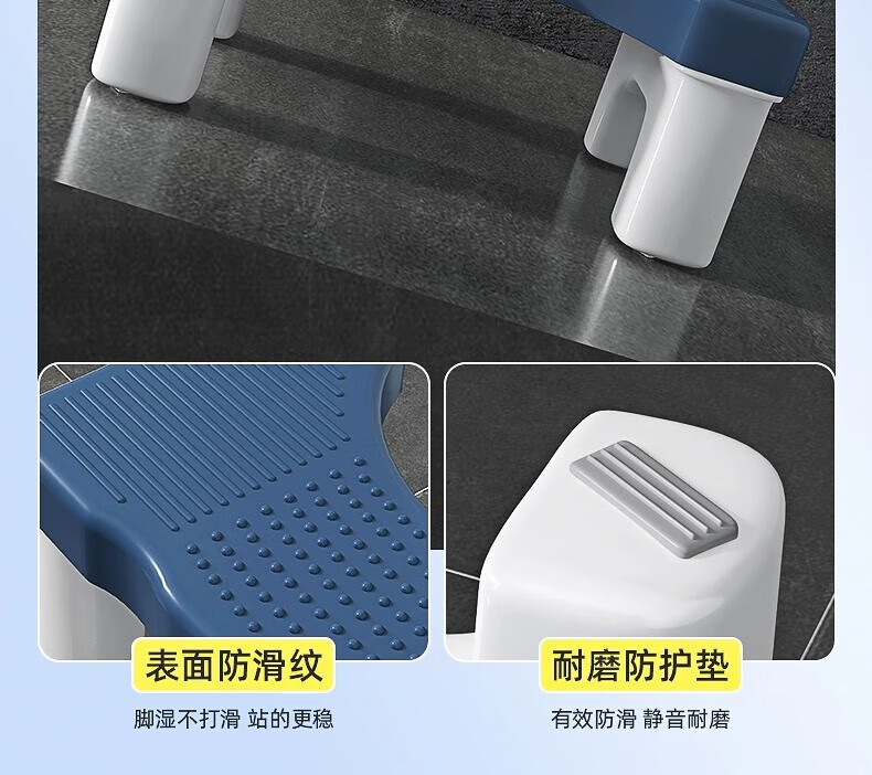 木格格马桶凳子马桶脚踩凳马桶凳脚踏塑料凳子加厚家用卫生间厕所小板凳 白腿+蓝色