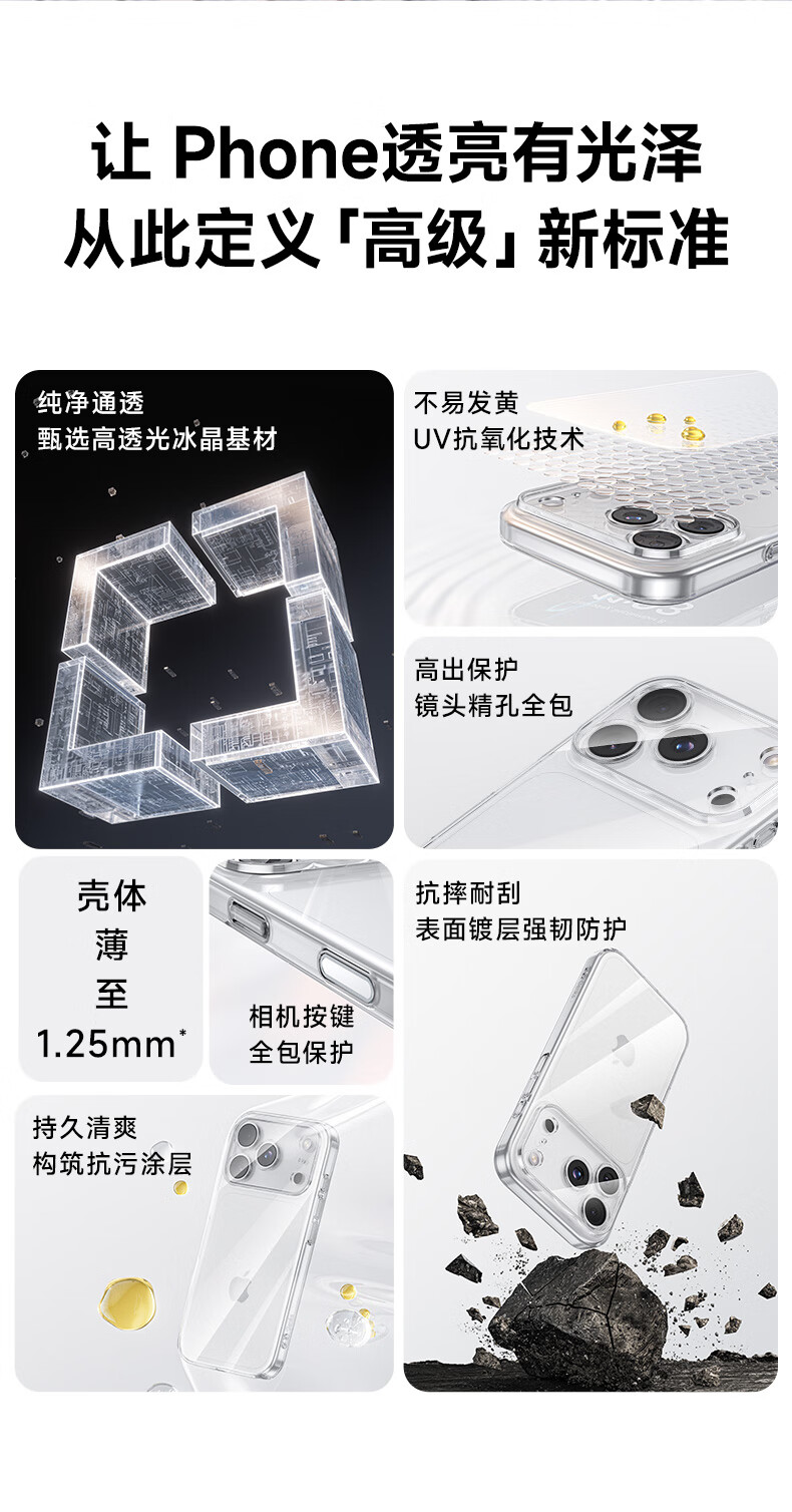 杉哲适用于iphone Air手机壳新款苹果17ProMax手机保护套高级感透明全包防摔苹果17Pro男女自带镜头膜 iphone Air【全透明】自带镜头膜