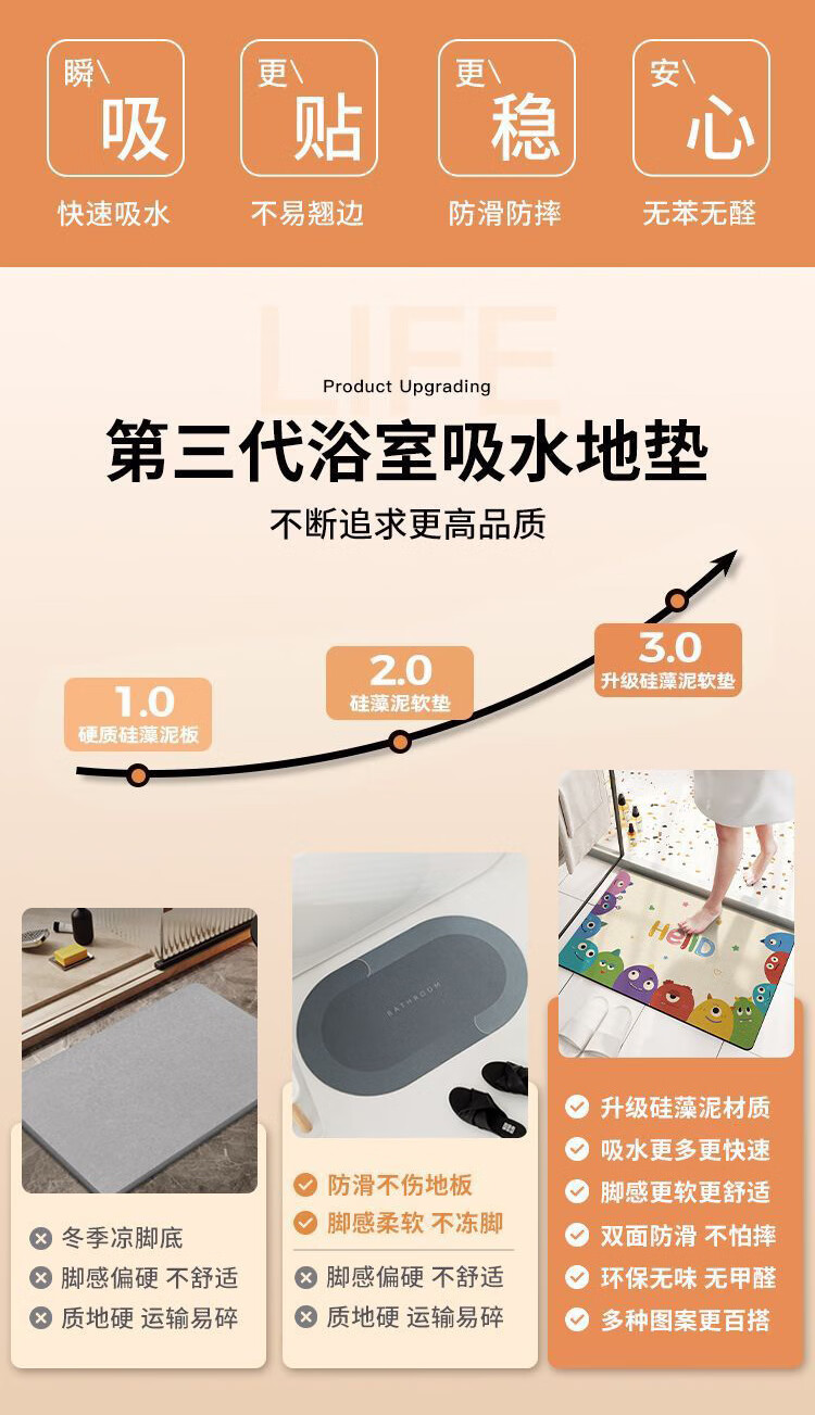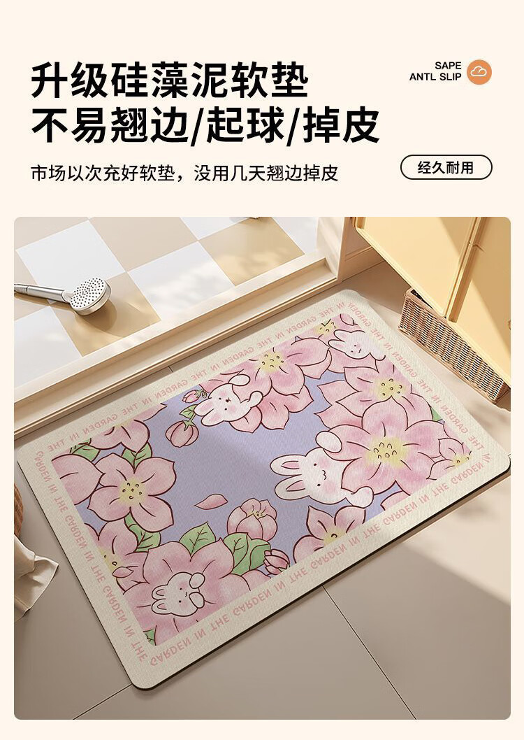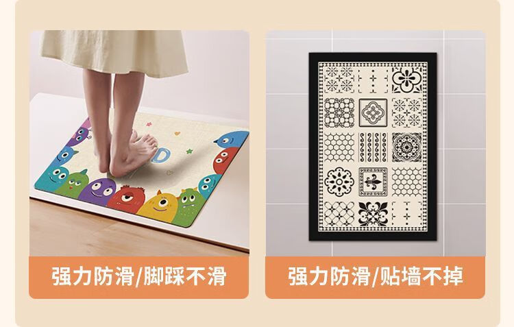 KAYE浴室地垫软硅藻泥吸水速干垫子卫生间门口防滑垫厨房厕所卫浴脚垫 GZN-繁花-云朵异形 50x80 cm
