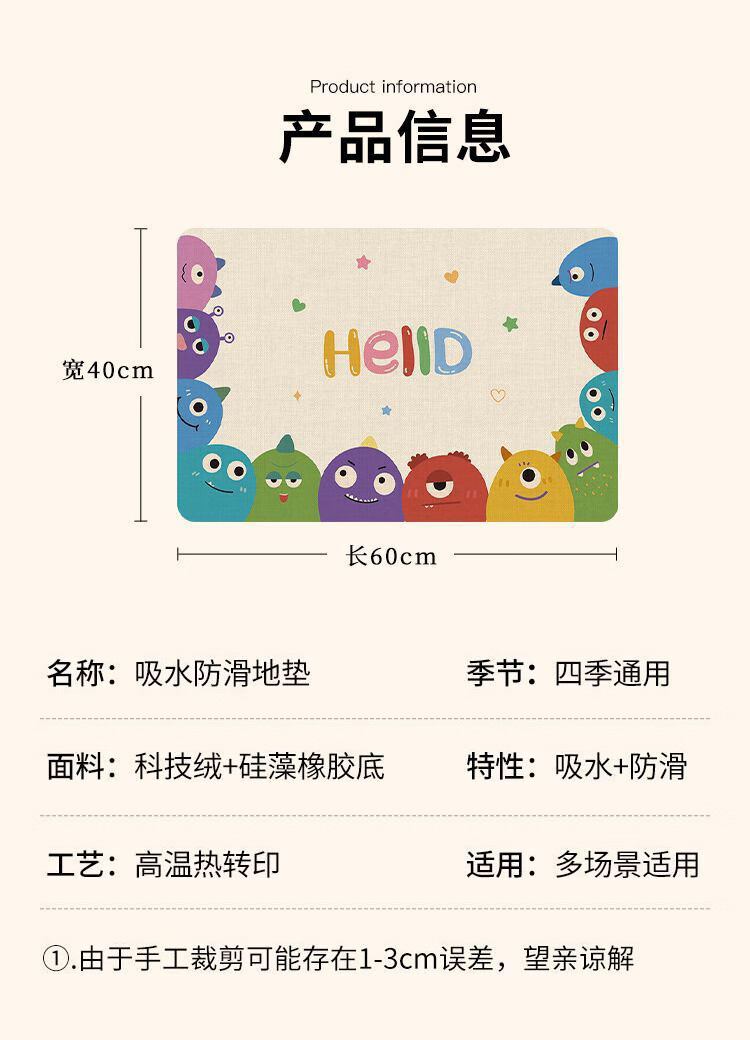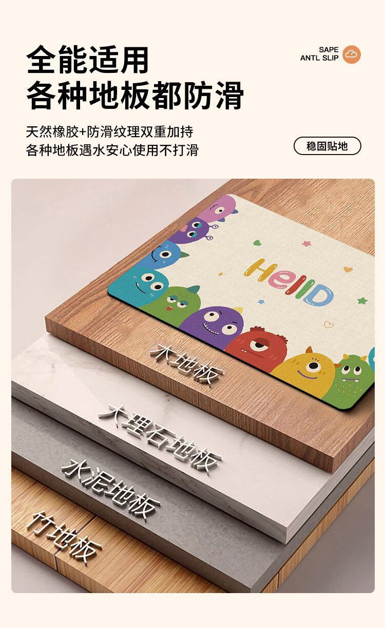 KAYE浴室地垫免洗卫浴吸水垫卫生间厕所门口防滑垫家用厨房入户门脚垫 GZN-3D幻境-太阳花园 50X80cm