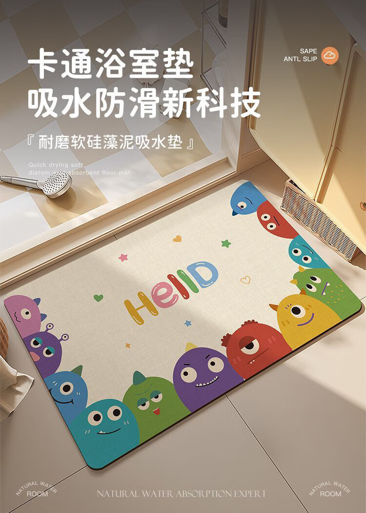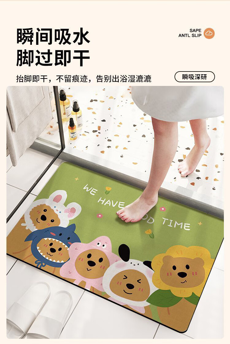 KAYE硅藻泥软垫浴室防滑吸水地垫厕所卫生间速干脚垫门口厨房入户垫子 GZN-青衣-椭圆 40x60 cm