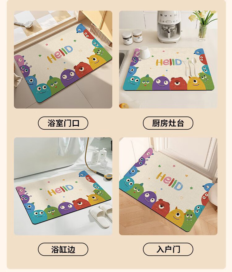 KAYE硅藻泥软垫浴室防滑吸水地垫厕所卫生间速干脚垫门口厨房入户垫子 GZN-法式浪漫-椭圆 40x60 cm