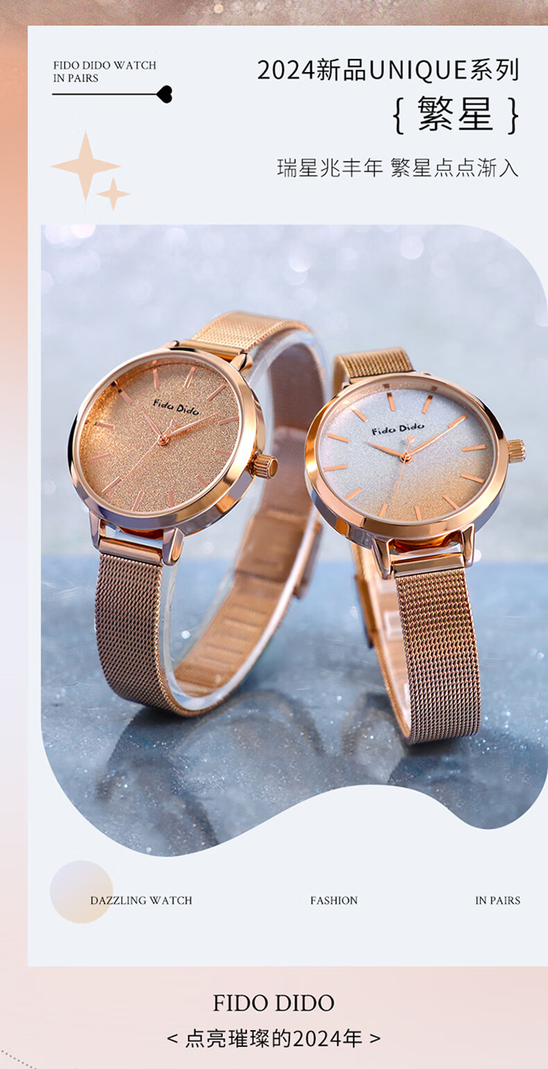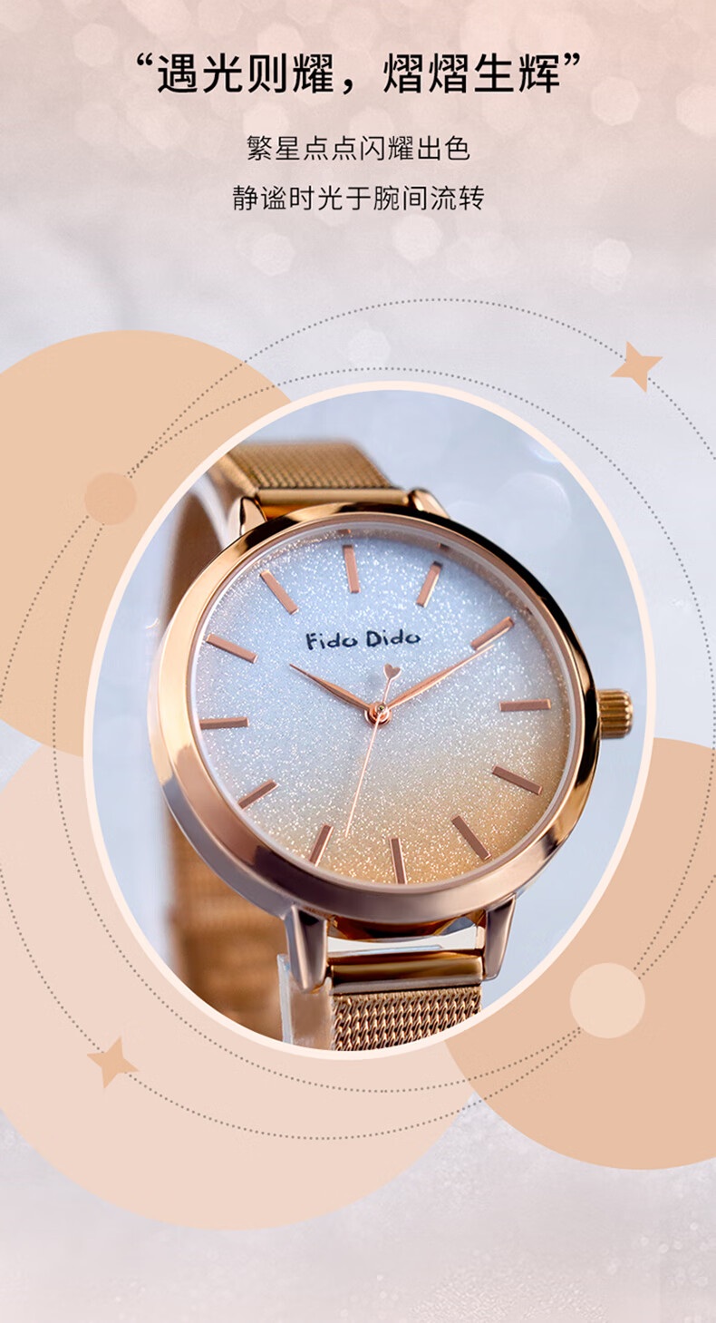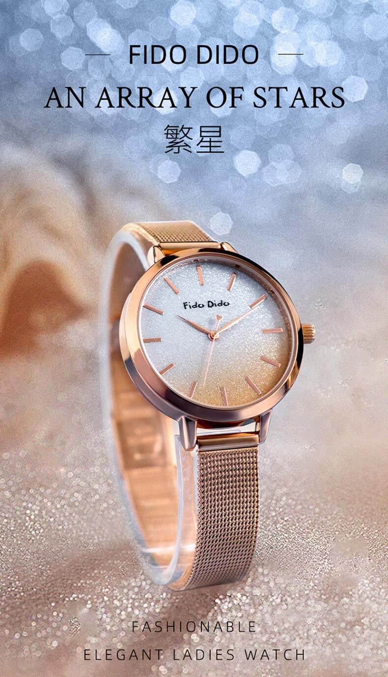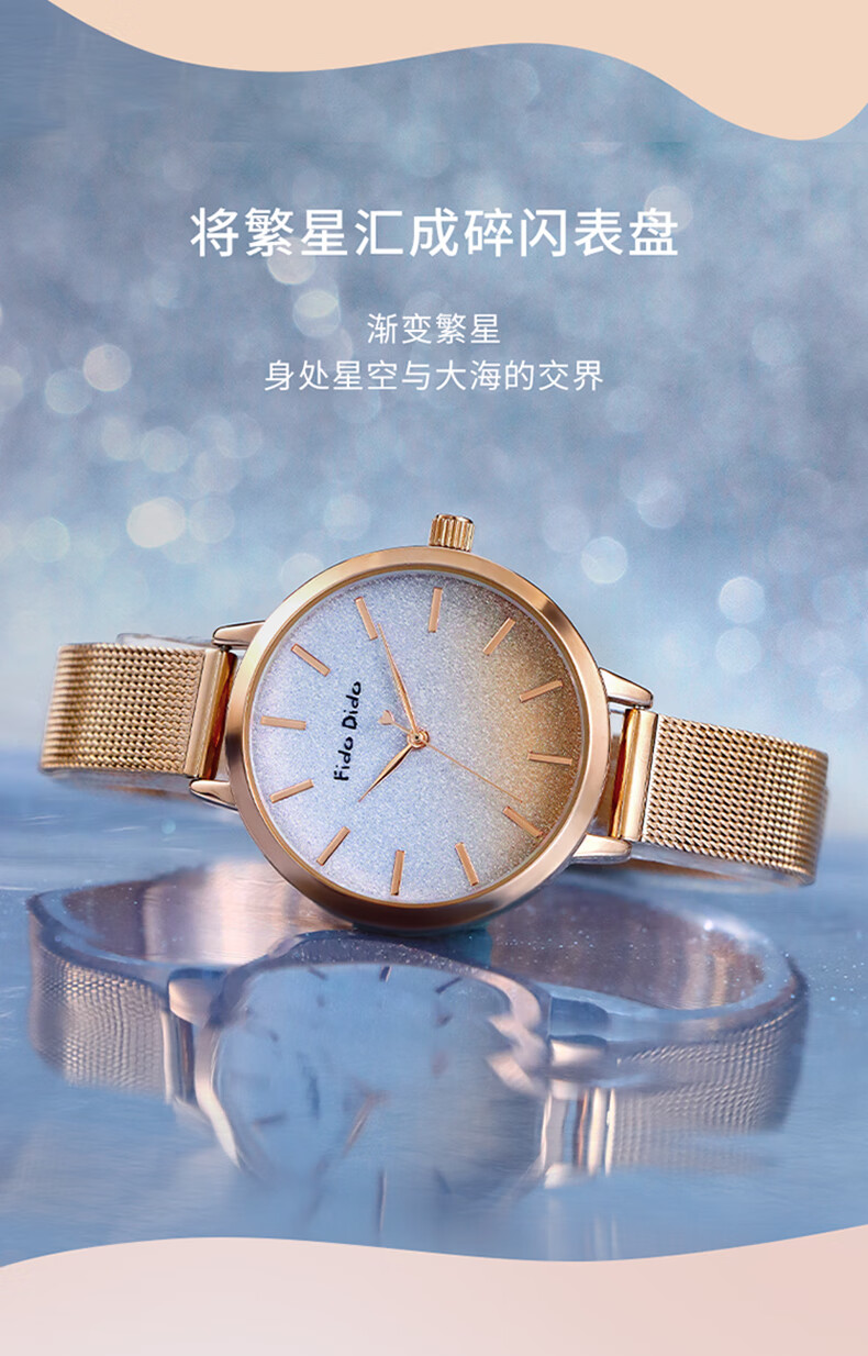 FIDO DIDO女士手表满天星轻奢小众高级感送女友礼物腕表FD2333-R5渐变蓝