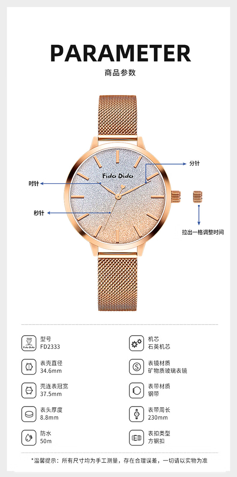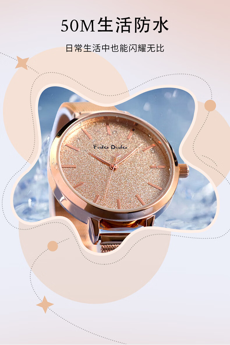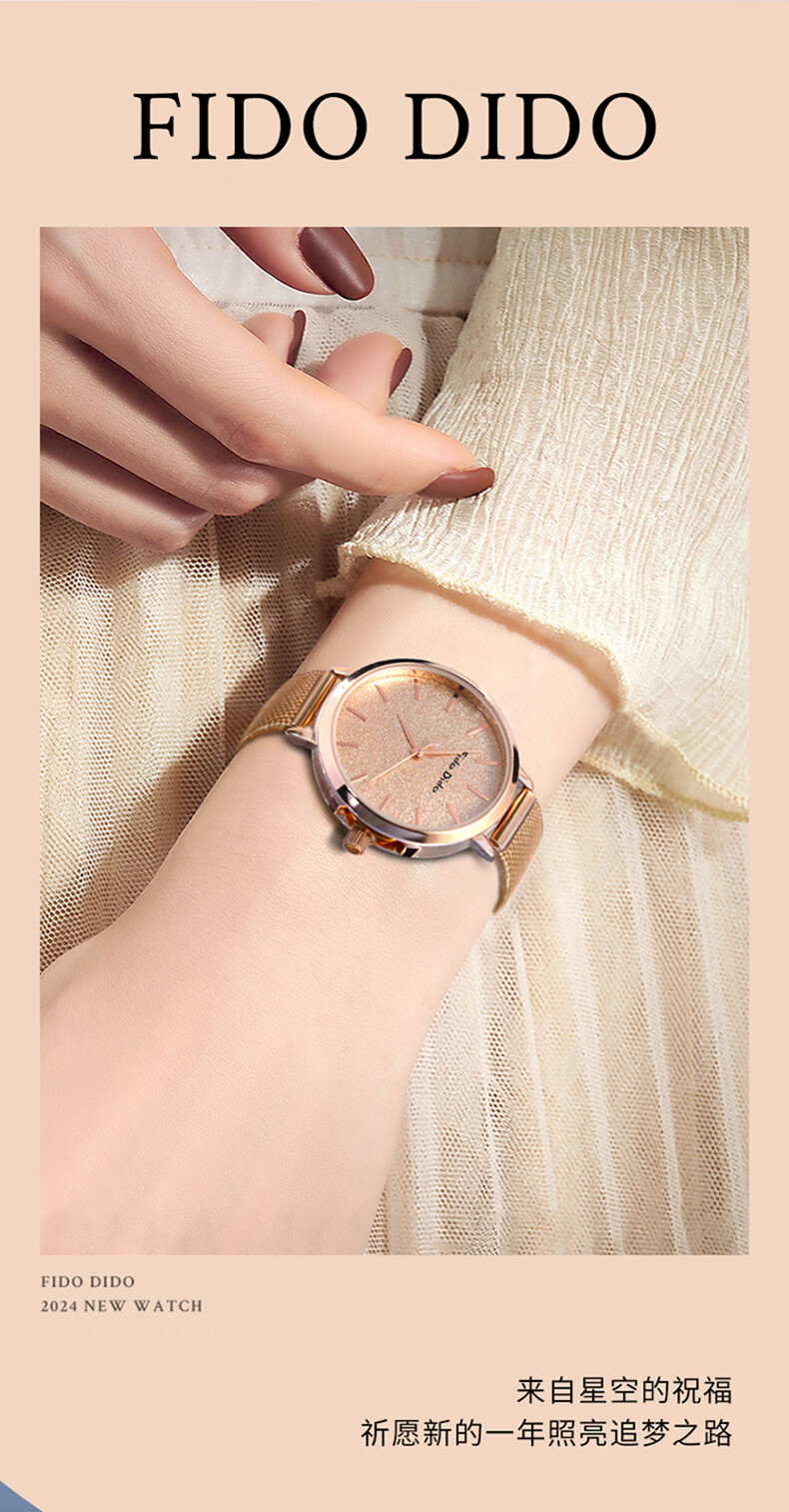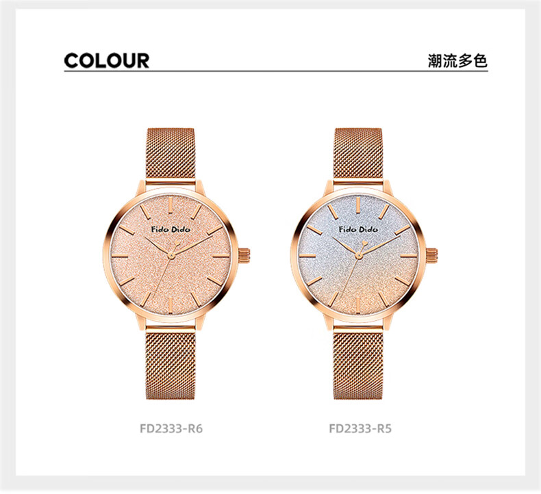 FIDO DIDO女士手表满天星轻奢小众高级感送女友礼物腕表FD2333-R5渐变蓝