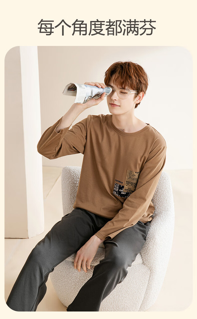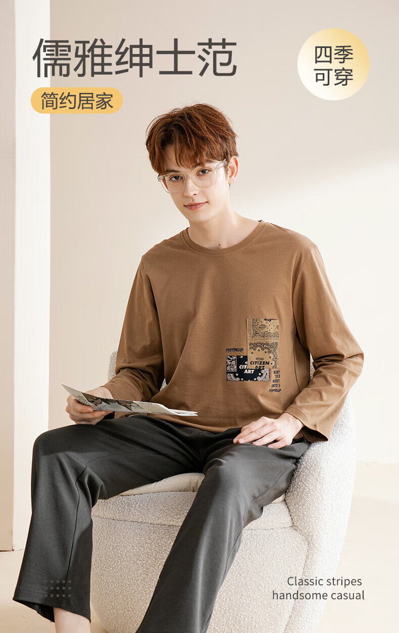 芬腾睡衣男新款潮流休闲圆领可外穿家居服套装睡衣长袖 灰绿色 2XL