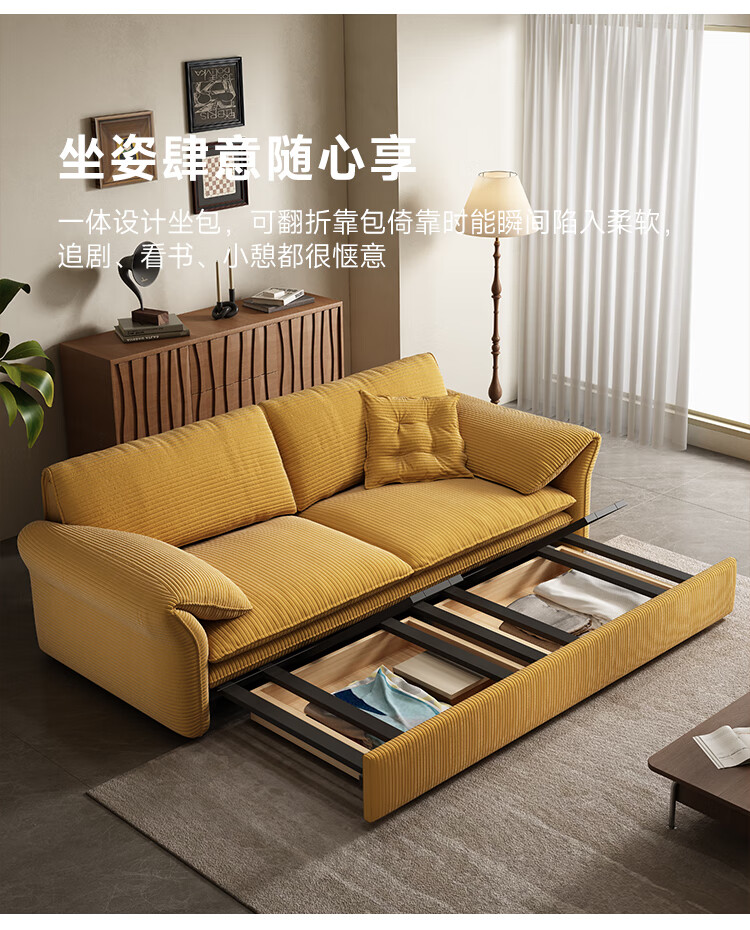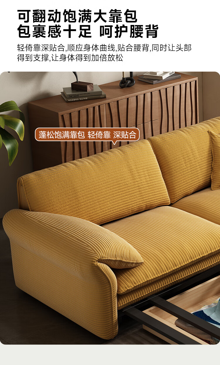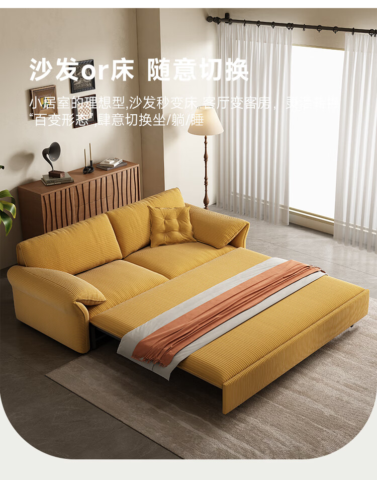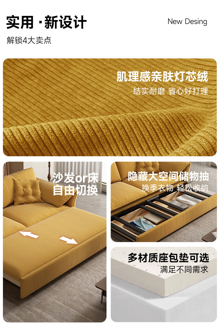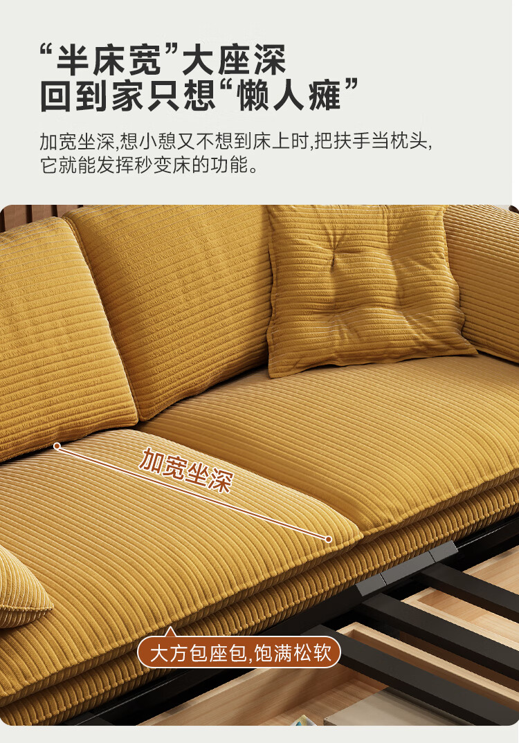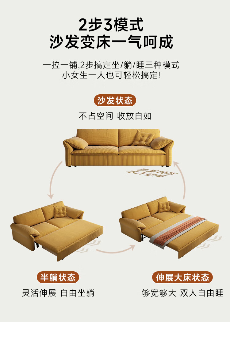哈森诗丹高端可折叠新款沙发床一体两用现代简约小户型客厅可拆洗布艺沙发 外径:1.35m(无储物)加厚灯芯绒 高弹海绵款(软硬适中)