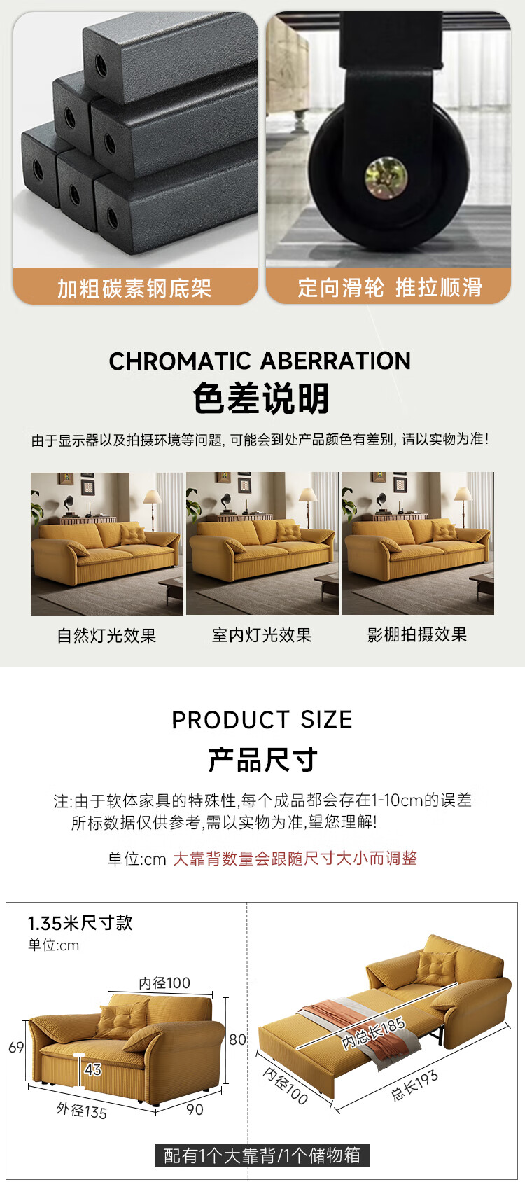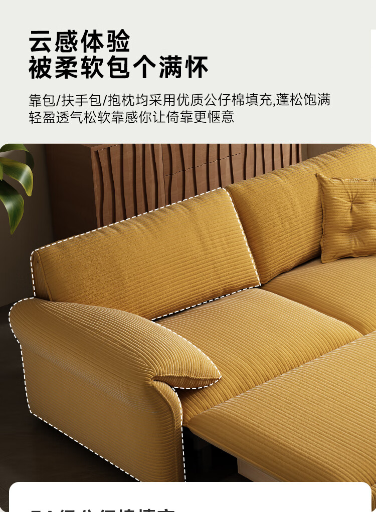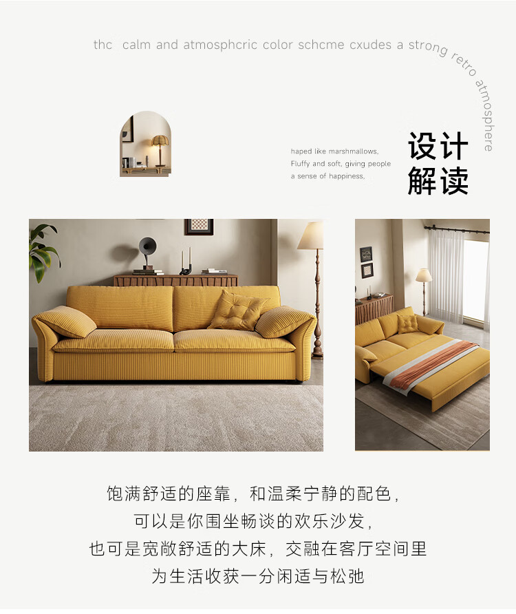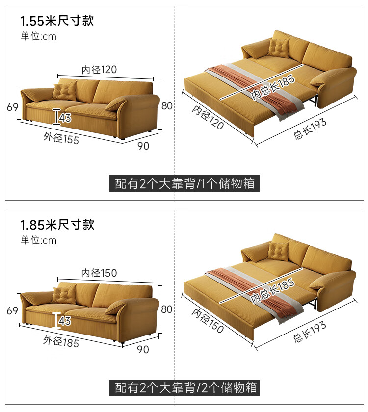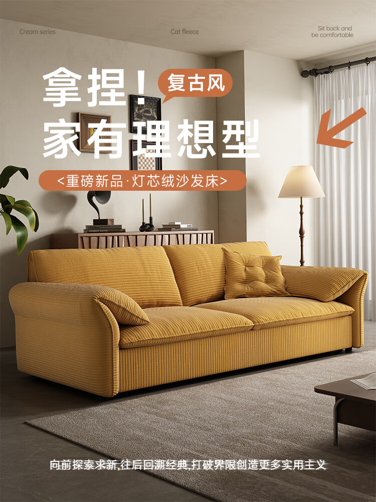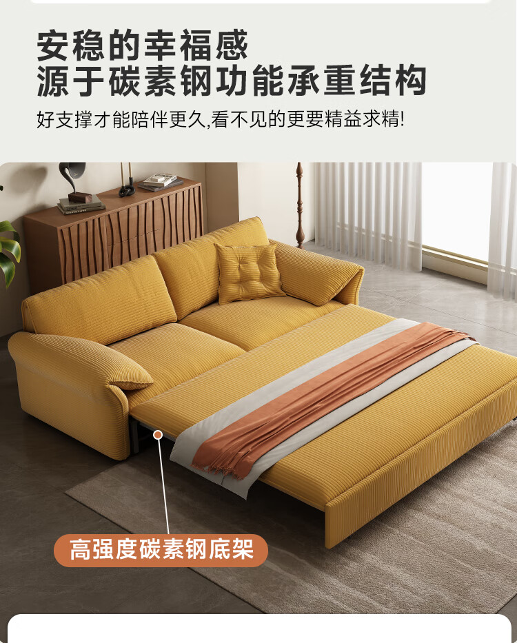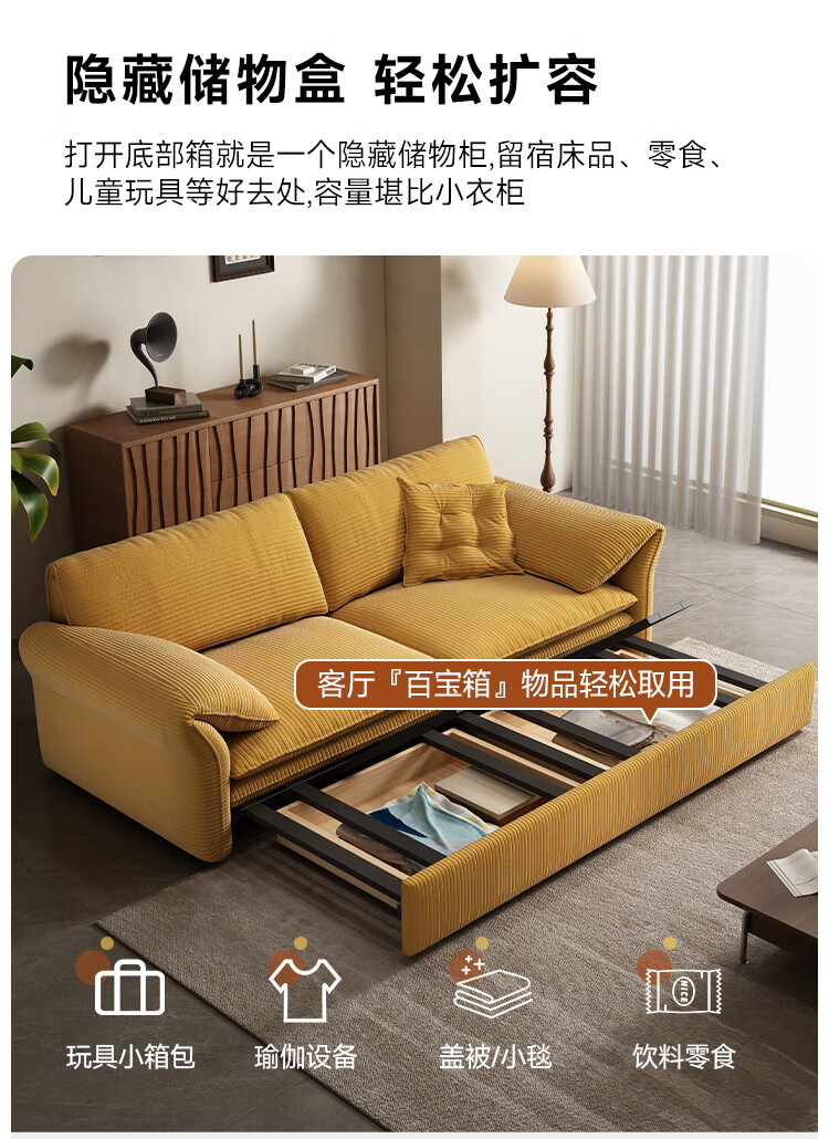 哈森诗丹高端可折叠新款沙发床一体两用现代简约小户型客厅可拆洗布艺沙发 外径:1.35m(无储物)加厚灯芯绒 高弹海绵款(软硬适中)