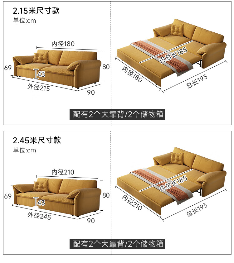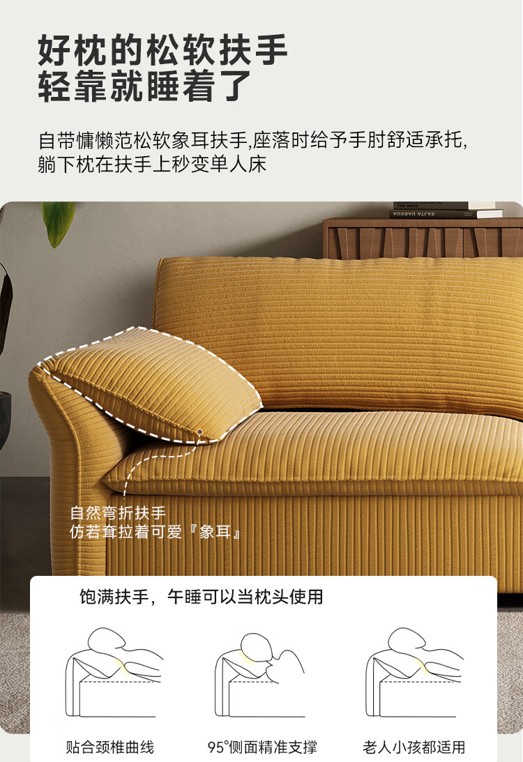 泽贤阁2025新款现代简约多功能折叠沙发一体两用客厅小户型懒人沙发 【新款猫抓皮+实木脚】米黄 【抑菌乳胶款】2*1.2米(2腰枕2扶手)