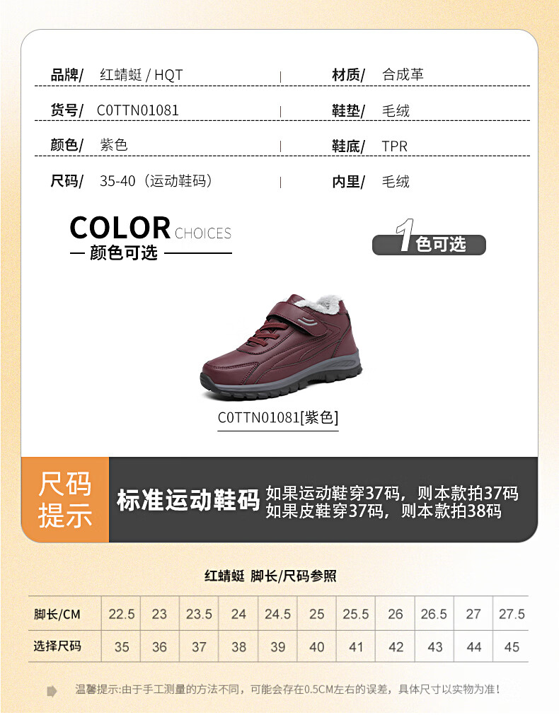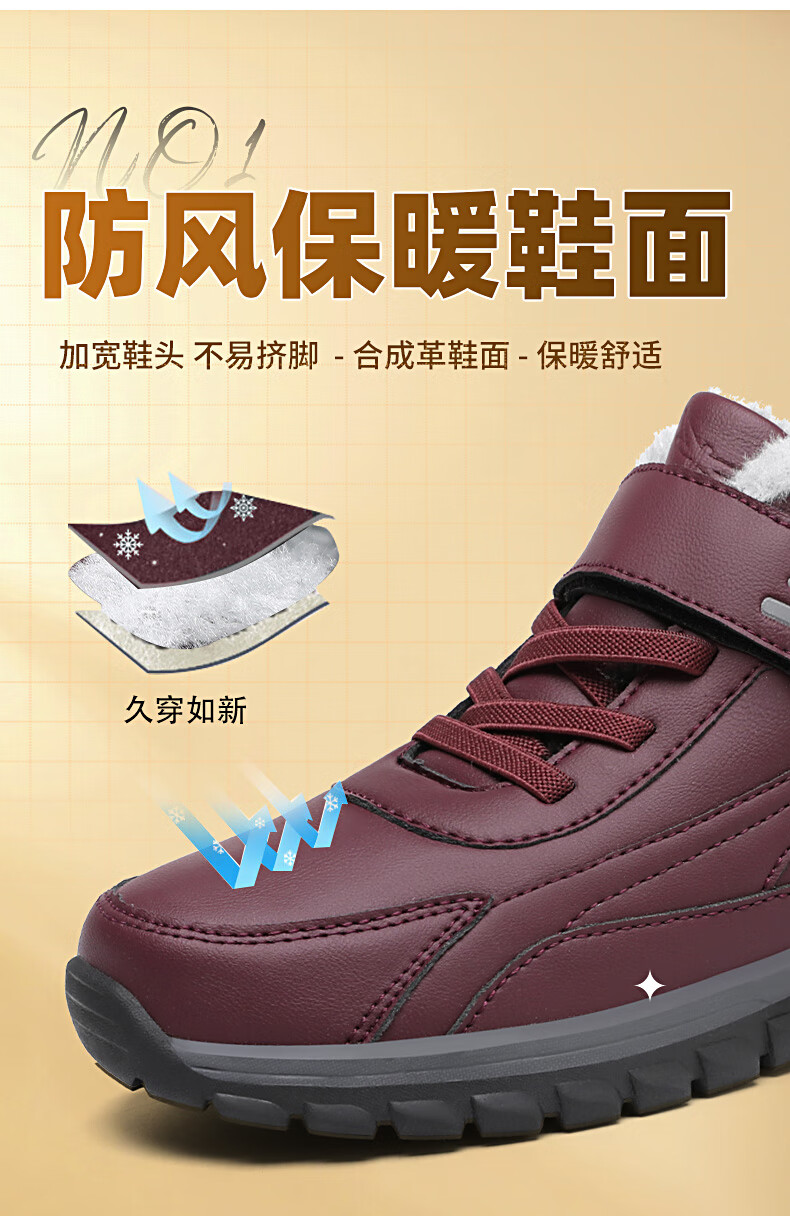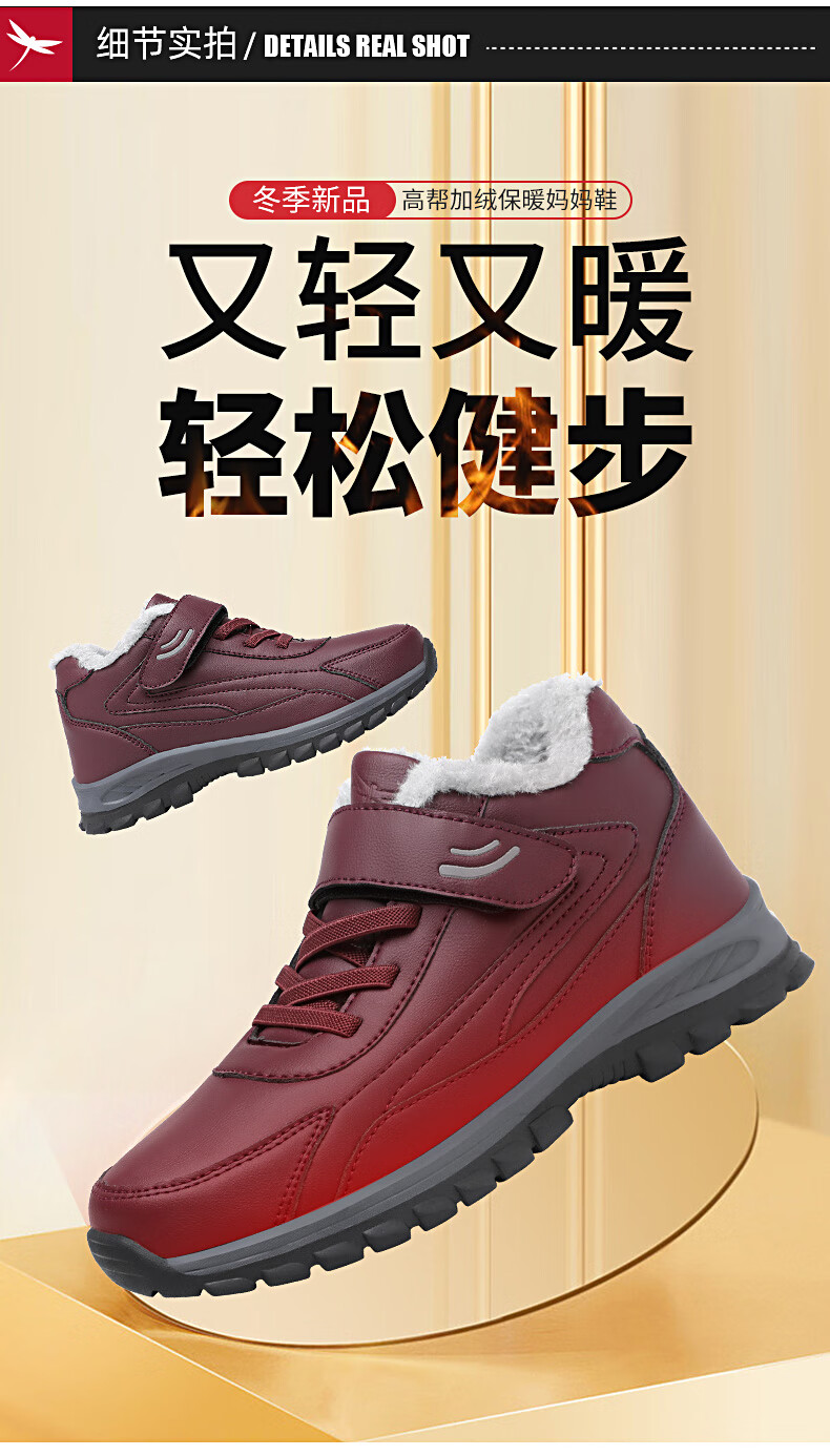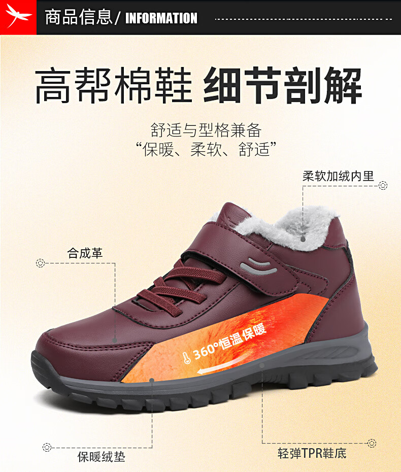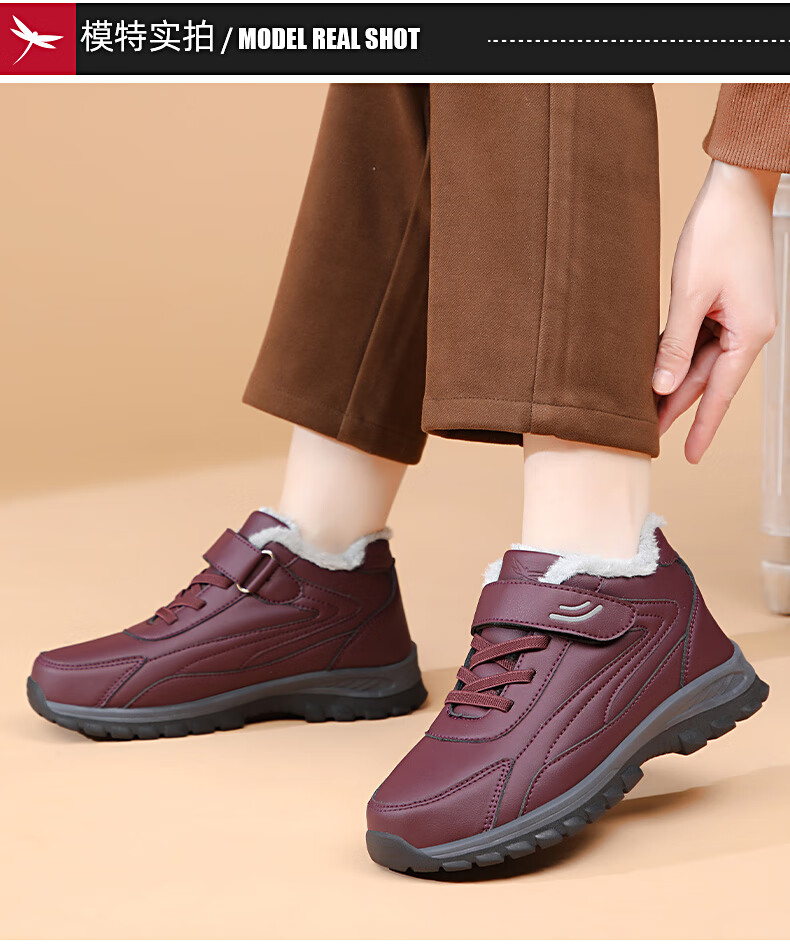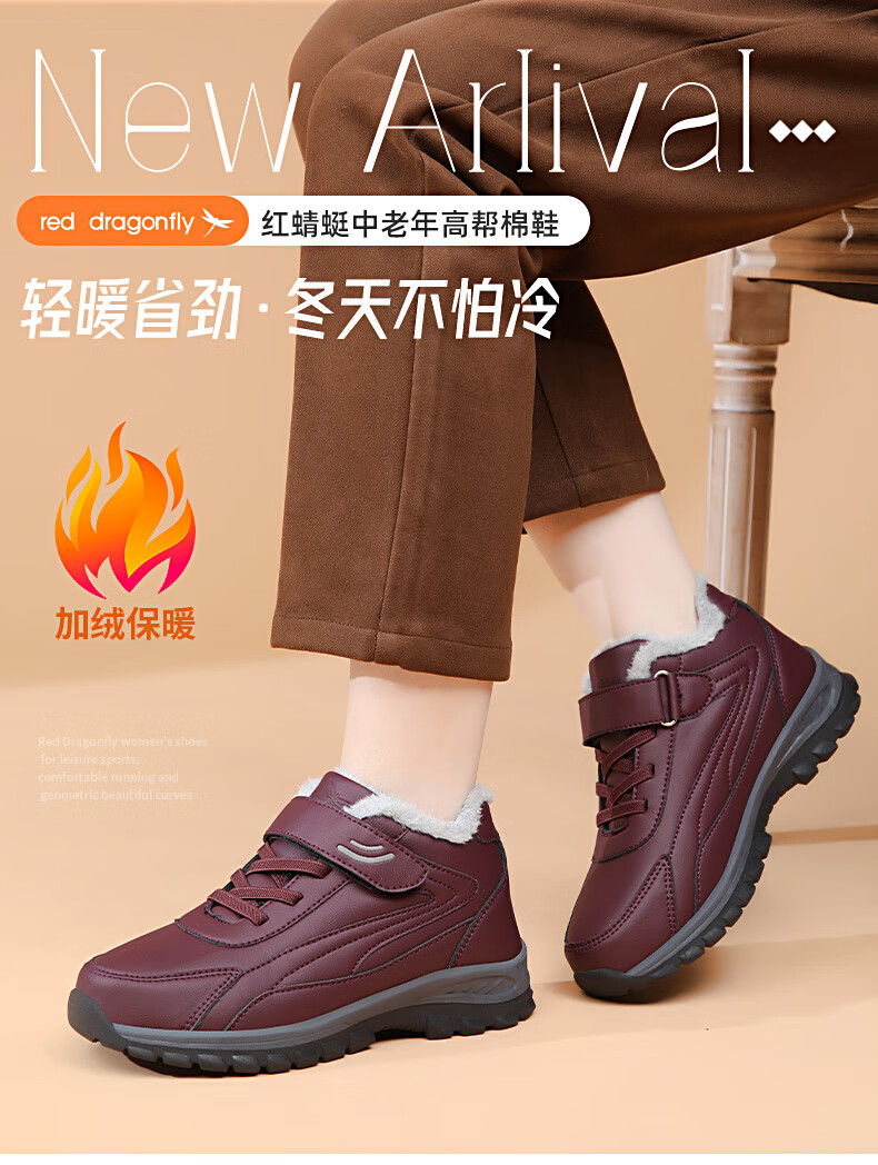 红蜻蜓红蜻蜓冬季加绒保暖老人鞋加厚毛大棉靴中老年棉鞋女 C0TTN01081