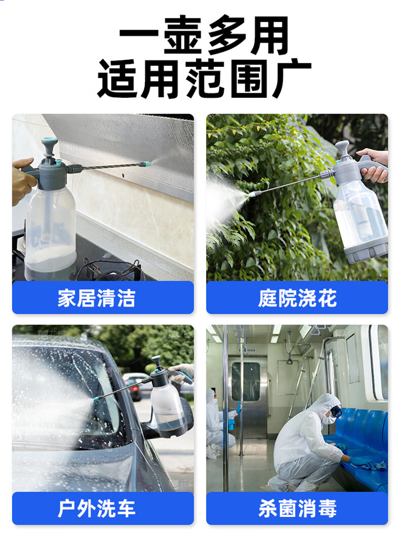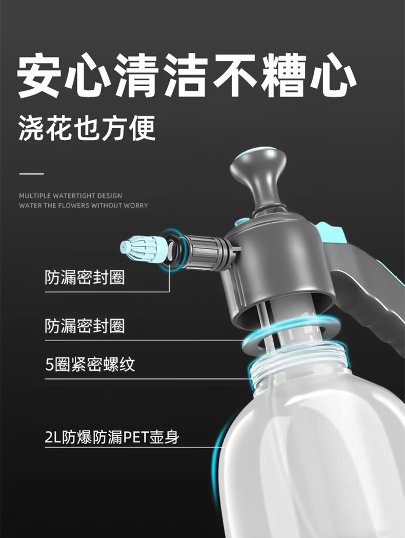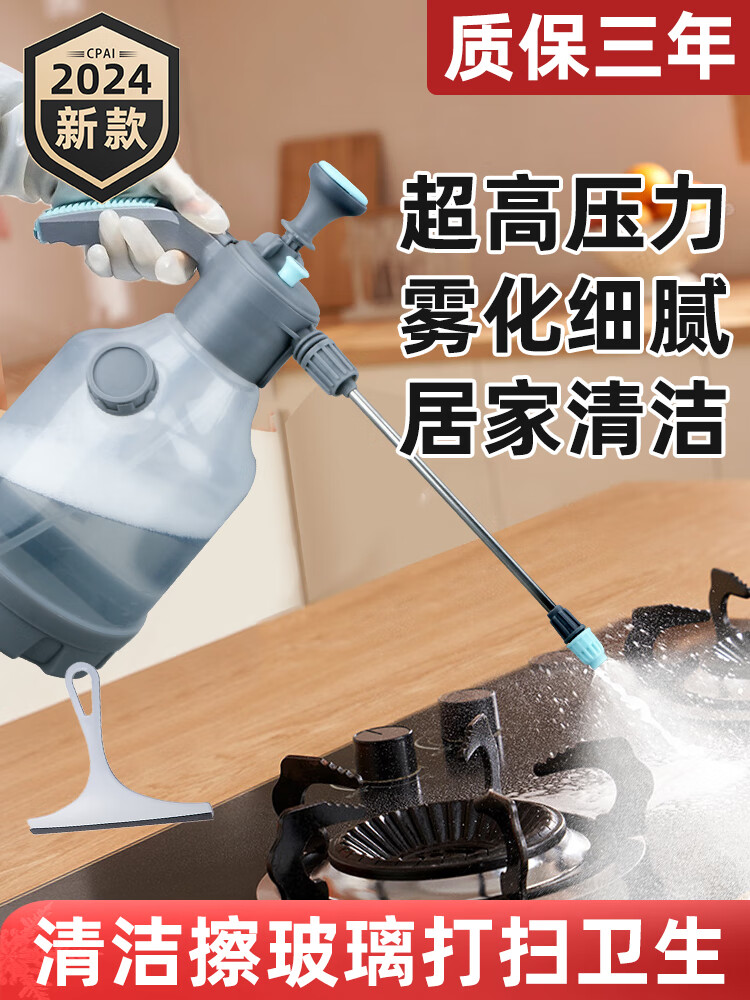 CPAI喷壶清洁专用擦地擦玻璃打扫卫生酒精消毒高压喷水壶气压式浇水壶 2L透明喷壶+加长杆【送刮板】 无规格