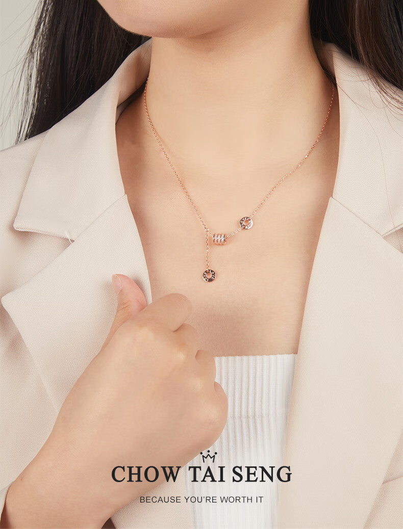 周大生小蛮腰项链送女生轻奢小众高级感纯银锁骨链生日礼物送女友
