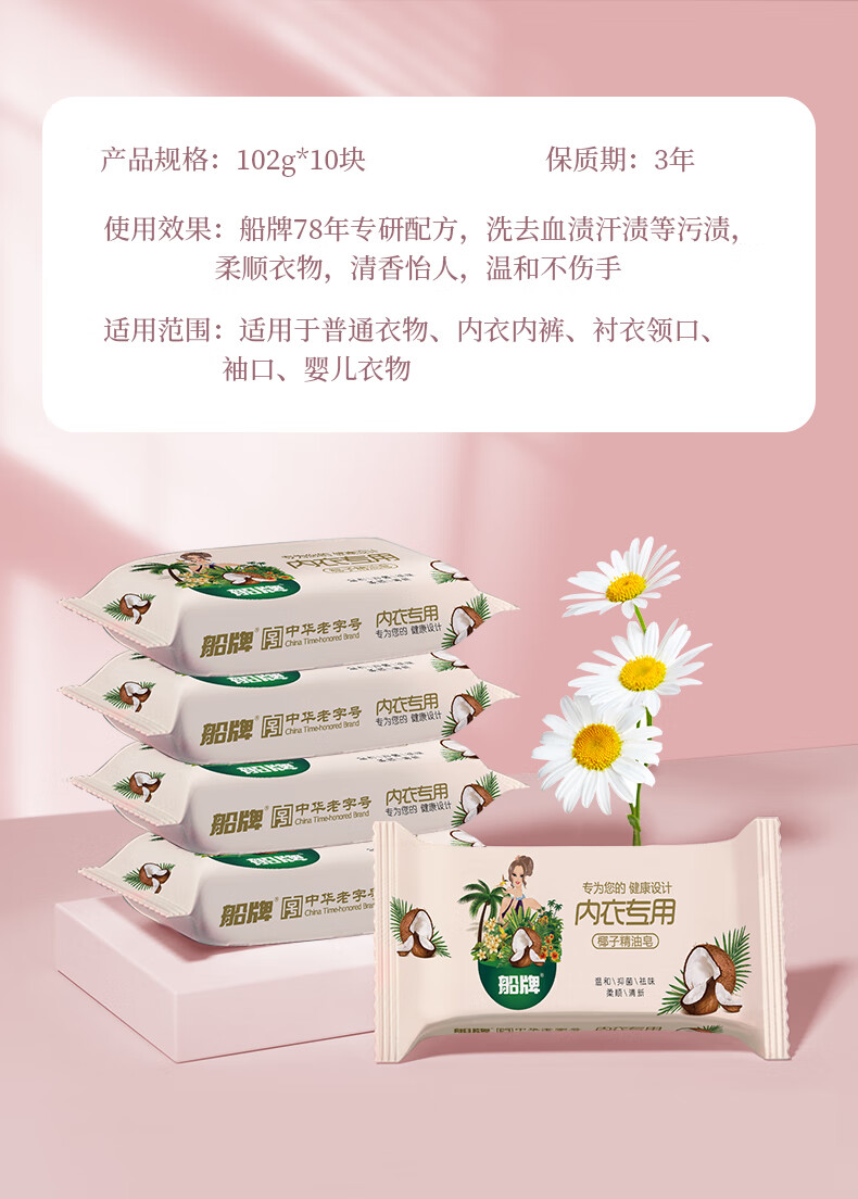 船牌内衣皂杀菌女士抑菌内衣专用肥皂 男女通用洗内裤皂去血渍洗衣皂 102g*10块