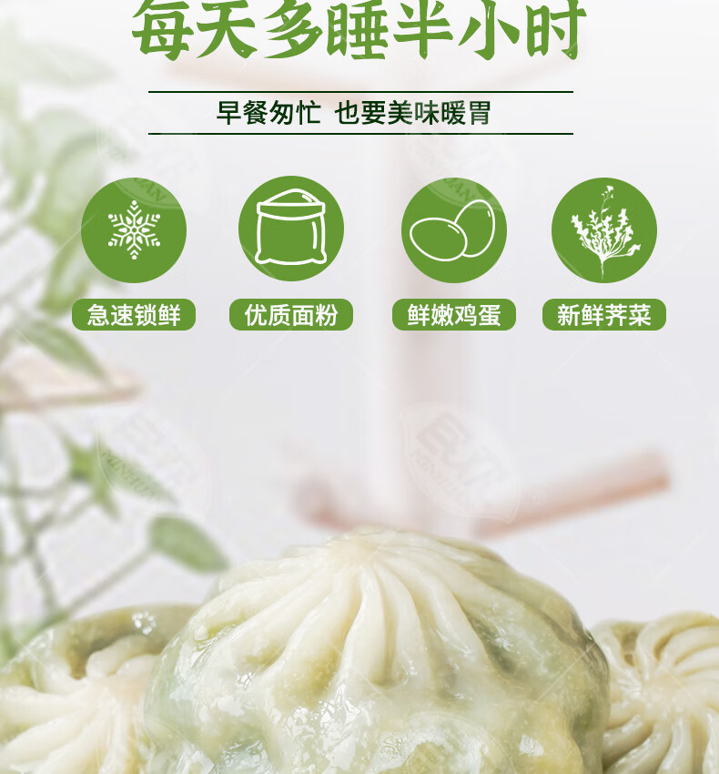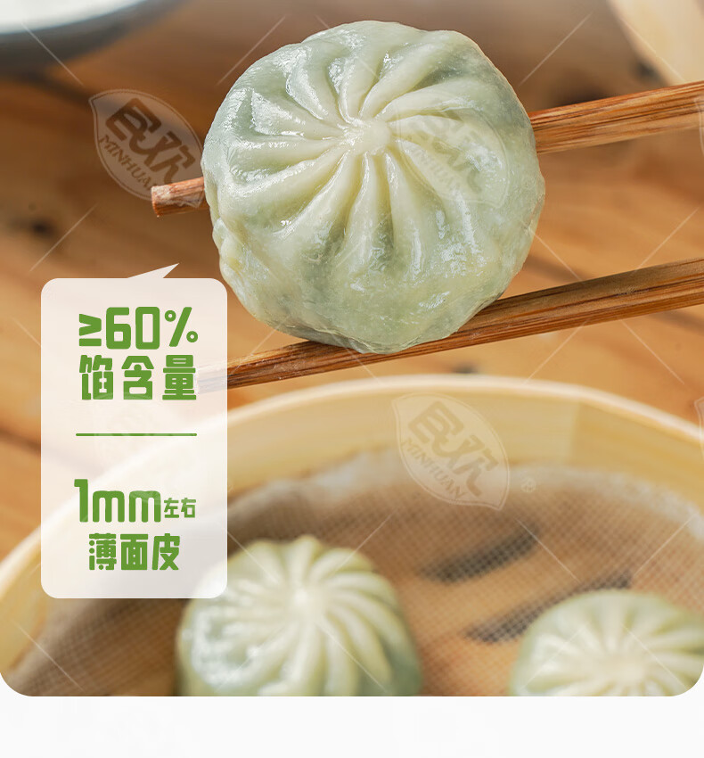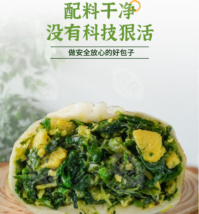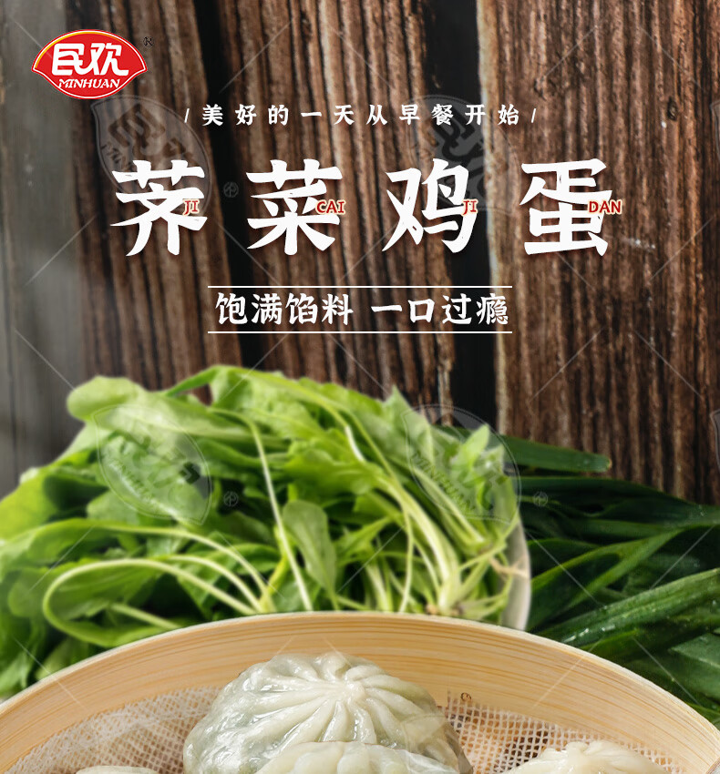 民欢荠菜鸡蛋薄皮包子素馅小笼包学生儿童早餐速食半成品速冻懒人食品 荠菜鸡蛋薄皮素包500克4袋约60个