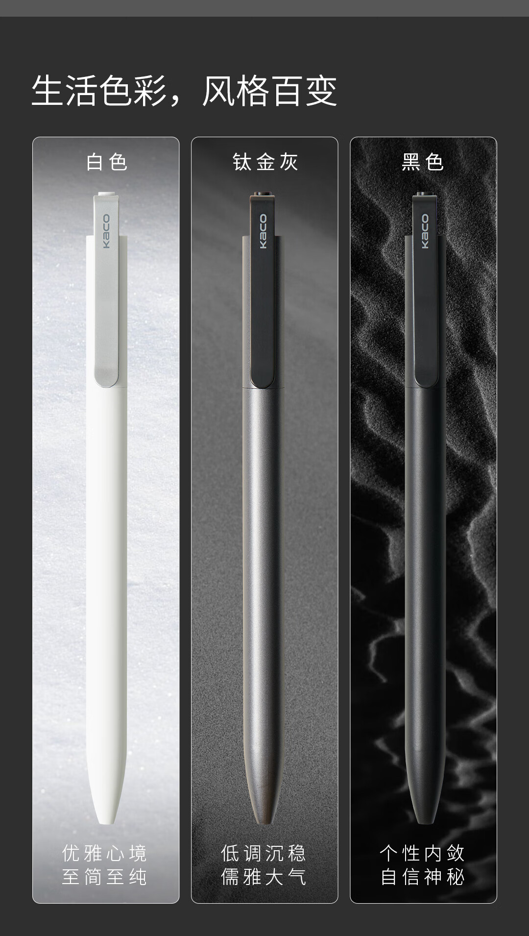KACO 好写DAILY中性笔按动式商务签字笔单支装0.5黑芯 金属笔夹大容量800米书写办公文具速干顺滑 学生刷题笔
