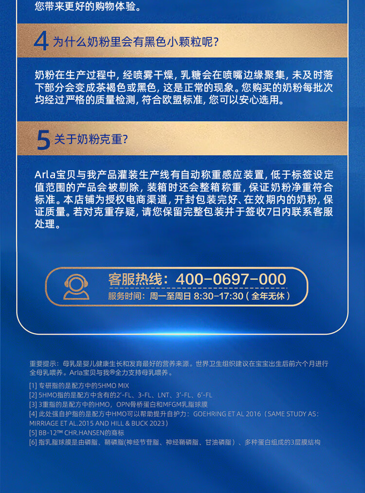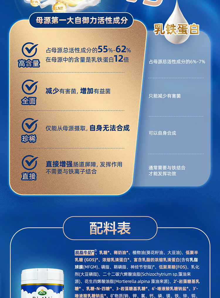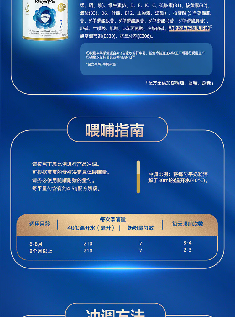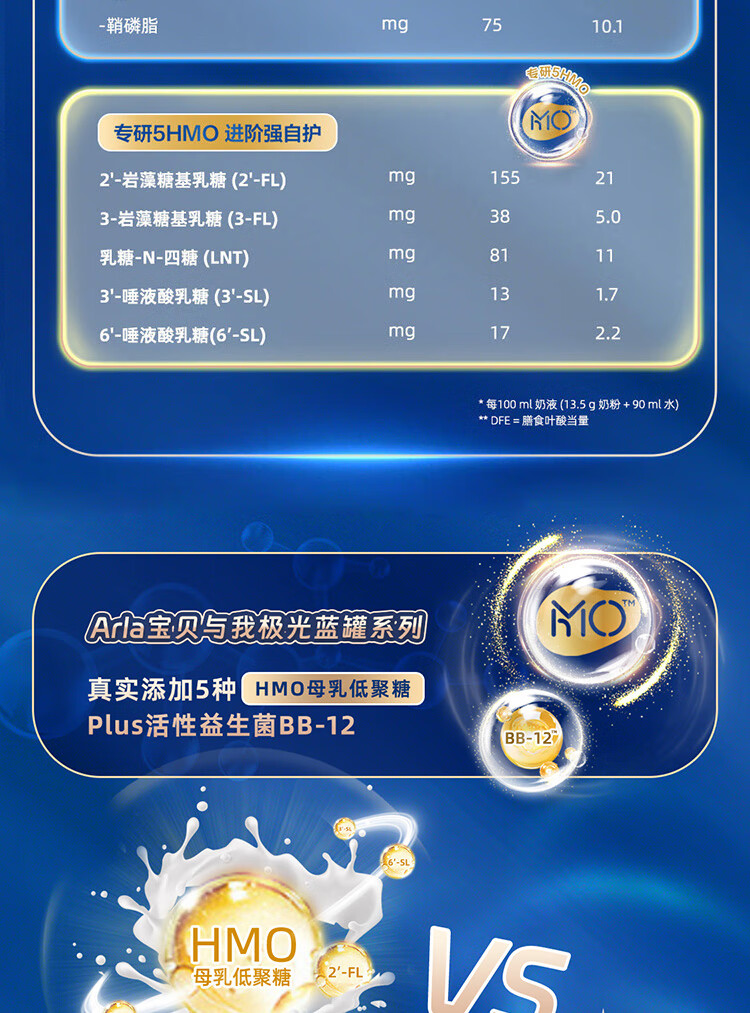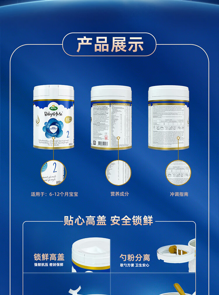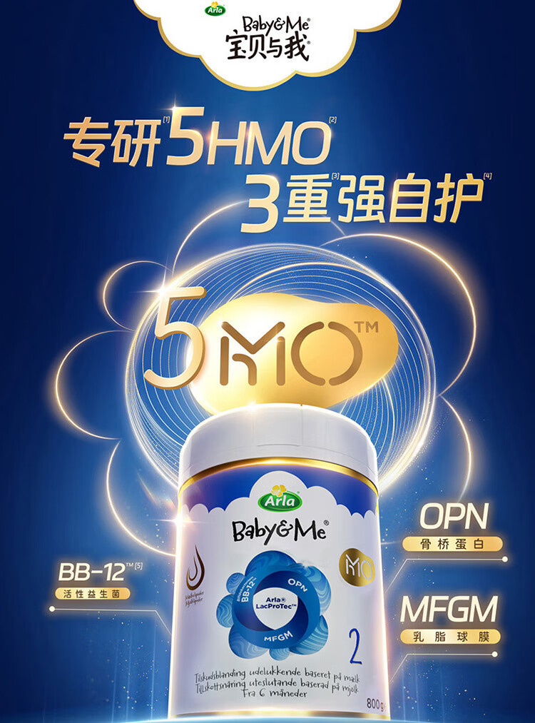 宝贝与我Arla丹麦5HMO极光蓝罐 含益生菌阿拉婴儿奶粉2段800g【6-12个月】 极光蓝罐2段【效期27年4月】