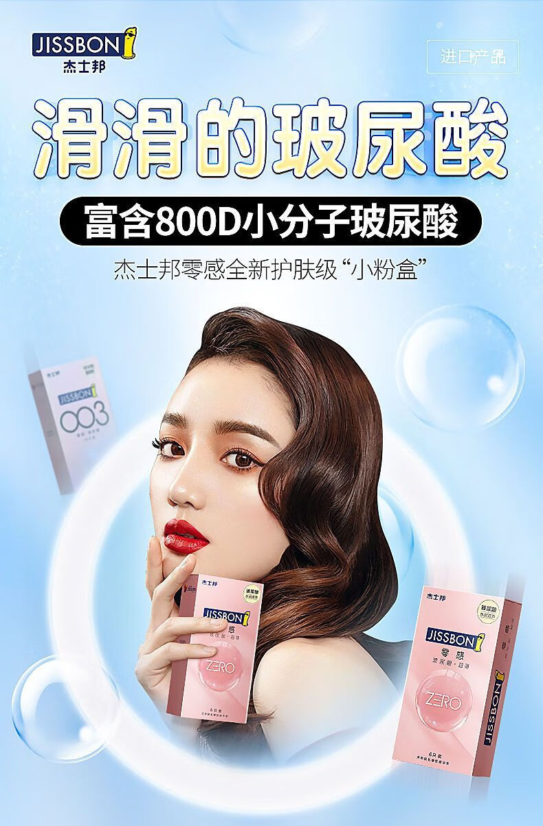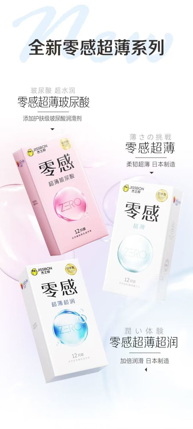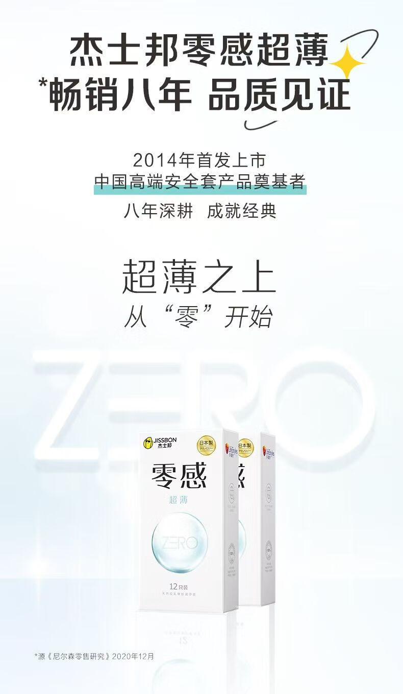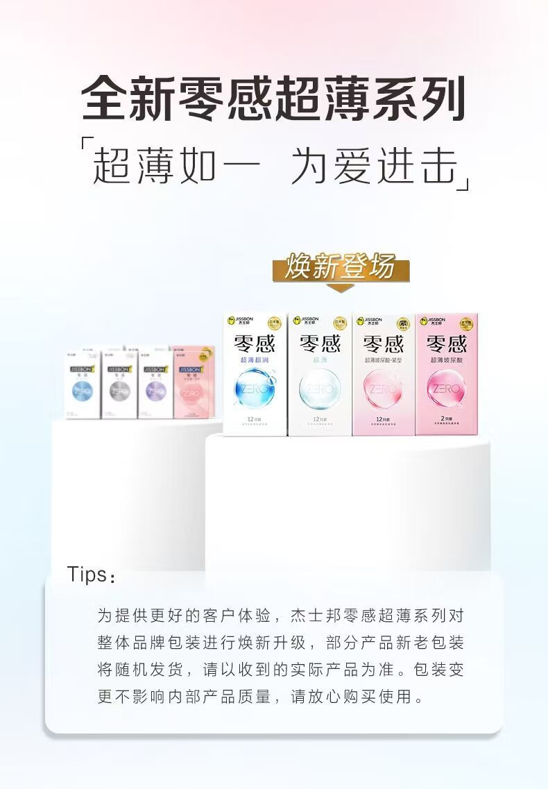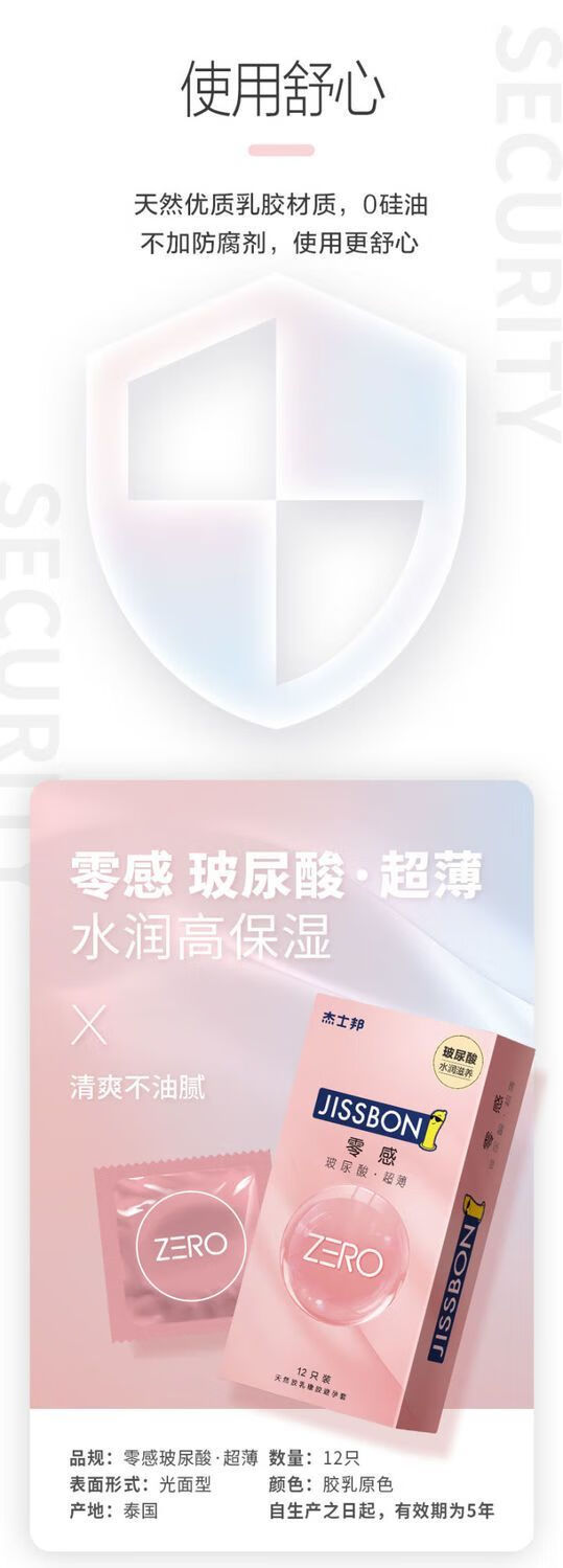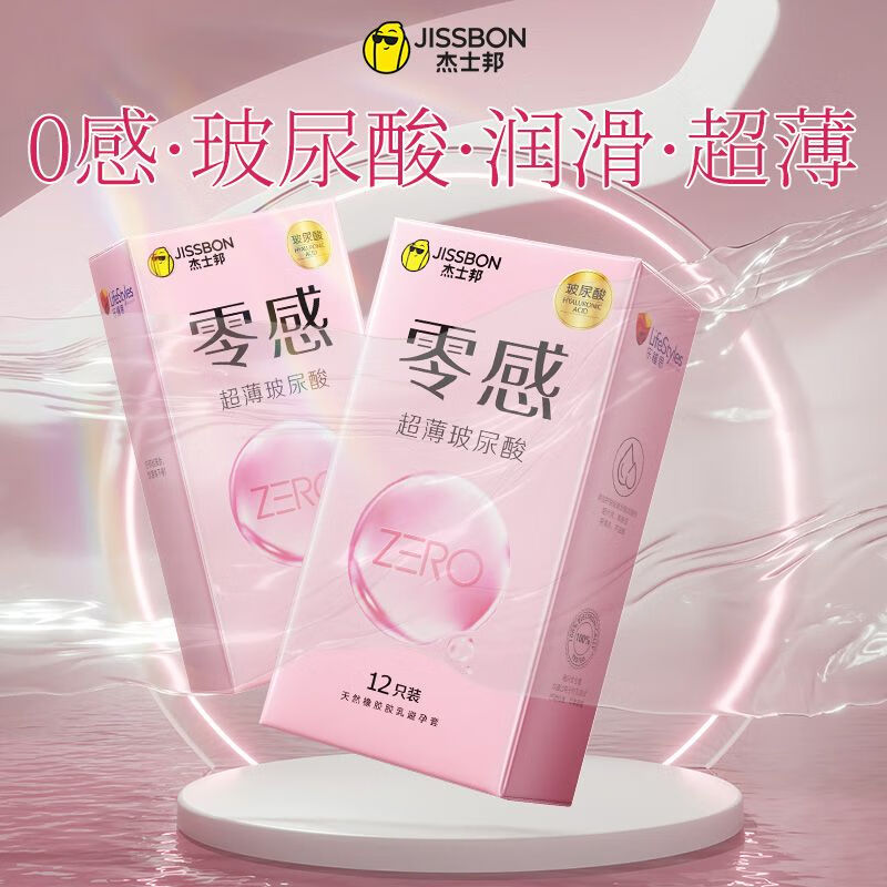 杰士邦超薄零感玻尿酸避孕套 12只 男用润滑byt安全套免洗成人情趣正品 零感玻尿酸超薄【1盒】