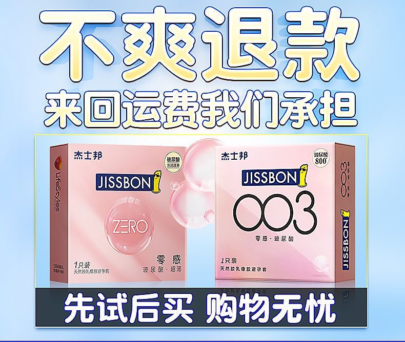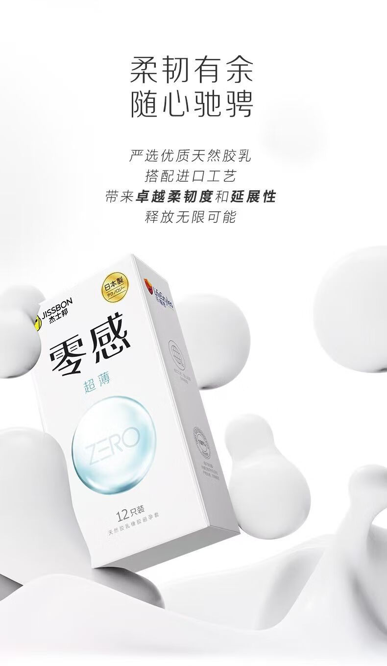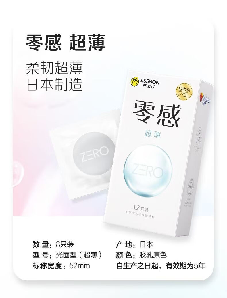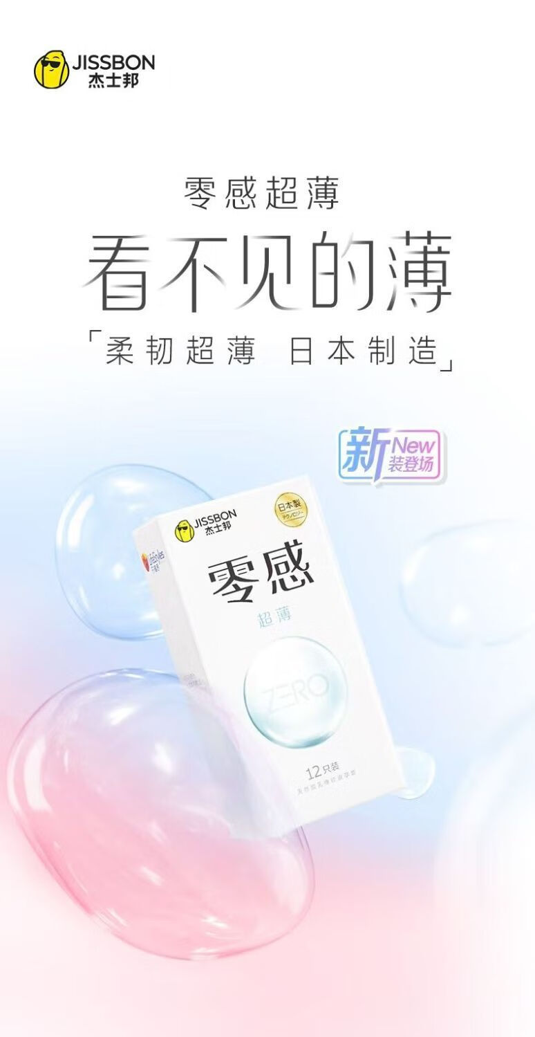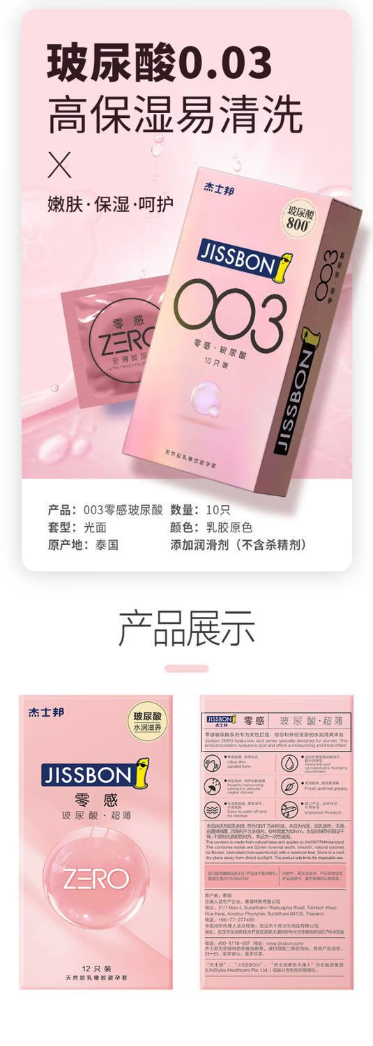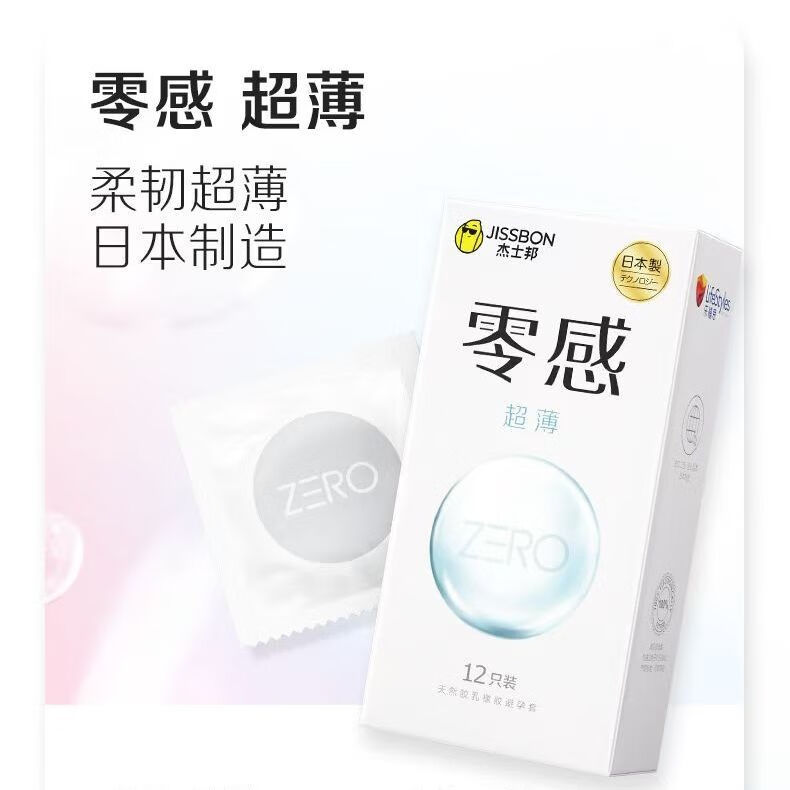 杰士邦超薄零感玻尿酸避孕套 12只 男用润滑byt安全套免洗成人情趣正品 零感玻尿酸超薄【1盒】