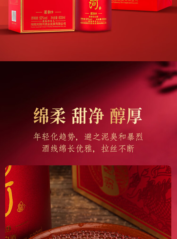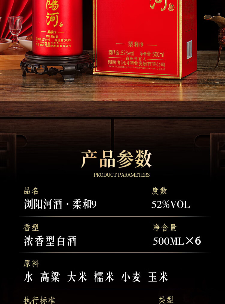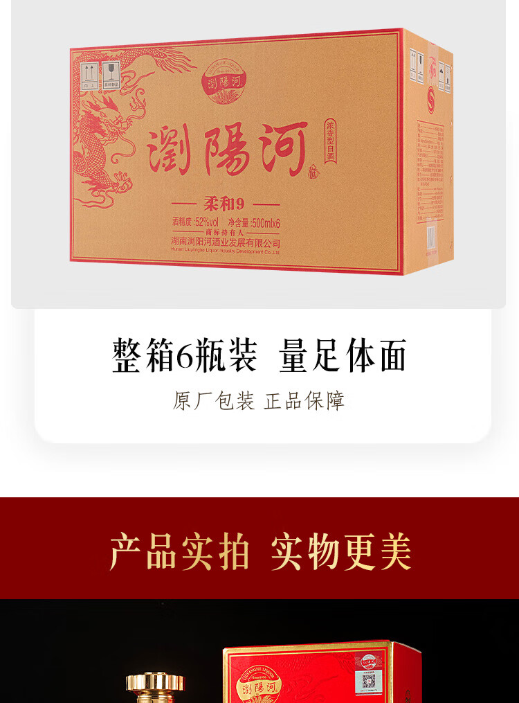 瀏陽河酒柔和9白酒整箱52度浓香型500ml*6瓶请客送礼佳品 52度 500mL 6瓶