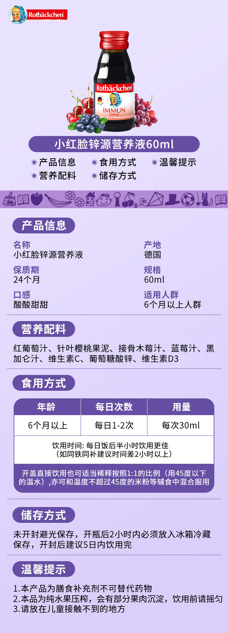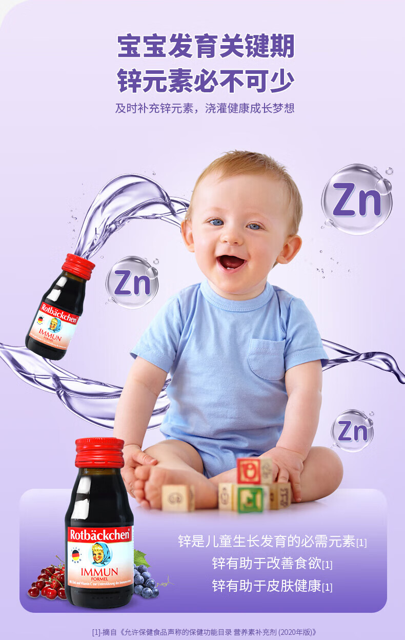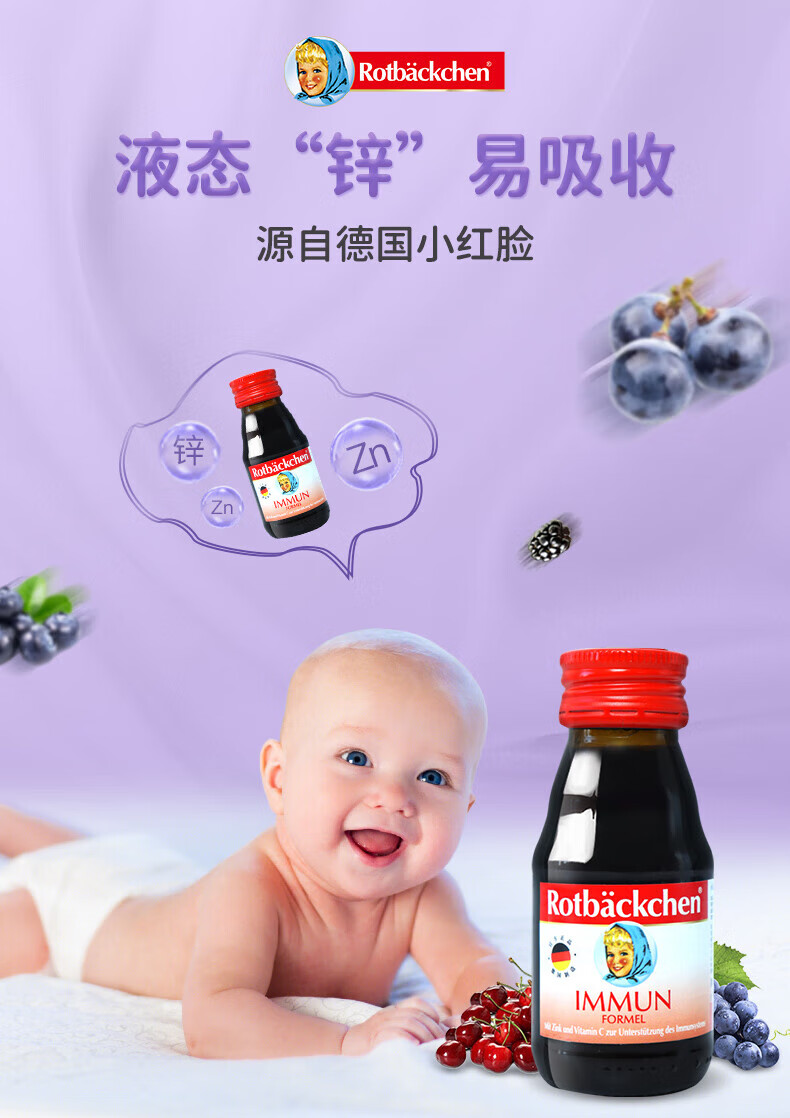小红脸 德国锌源宝宝儿童口服液锌剂 果汁 锌源+ 60ml*2瓶 尝鲜装