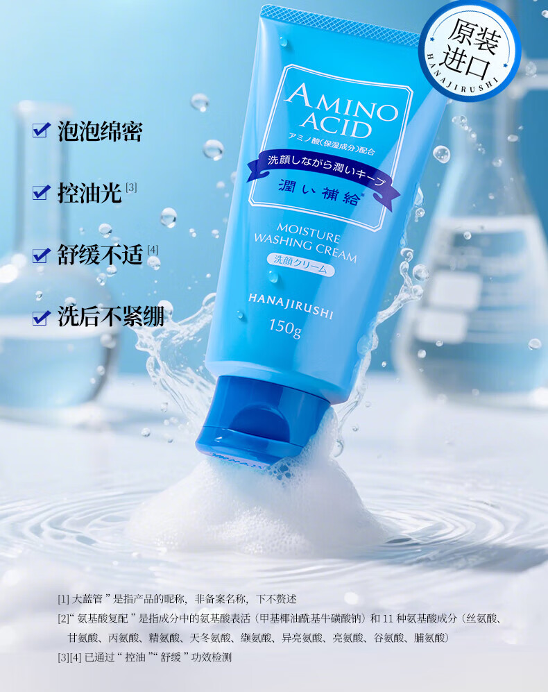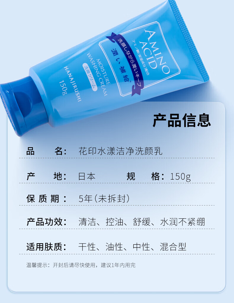 花印水漾洗面奶洁净亲肤保湿男士女士泡沫细舒适不紧绷改善毛孔堵塞 【含氨基酸】水漾洗面奶150g