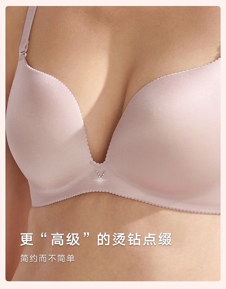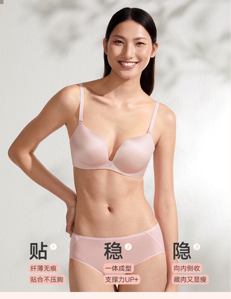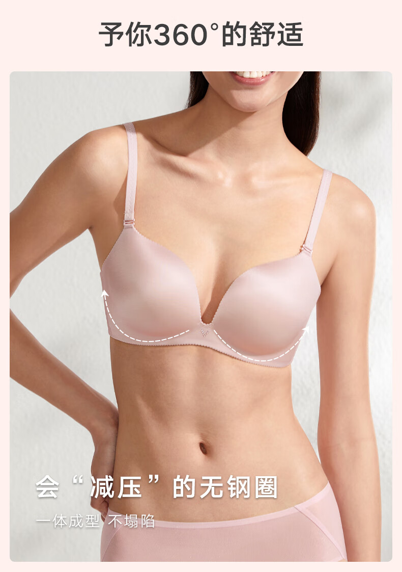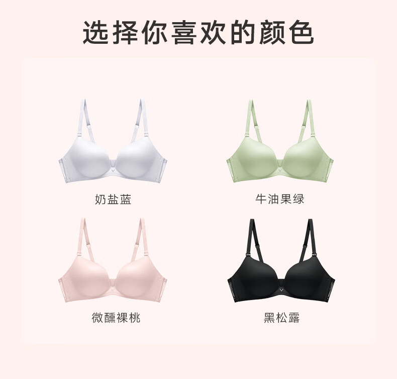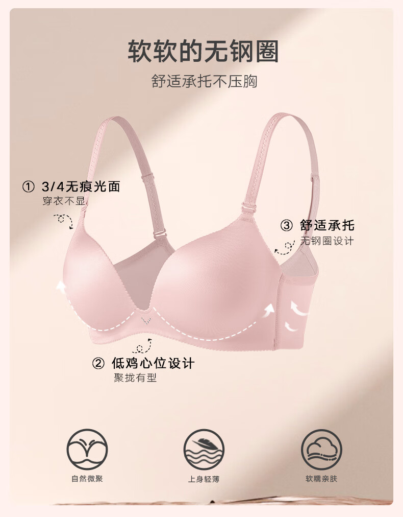 曼妮芬软乎乎光面内衣可拆卸肩带薄款无钢圈无痕舒适女士小胸聚拢文胸 微醺裸桃+奶盐蓝 80B 舒适中杯 约1.2CM厚