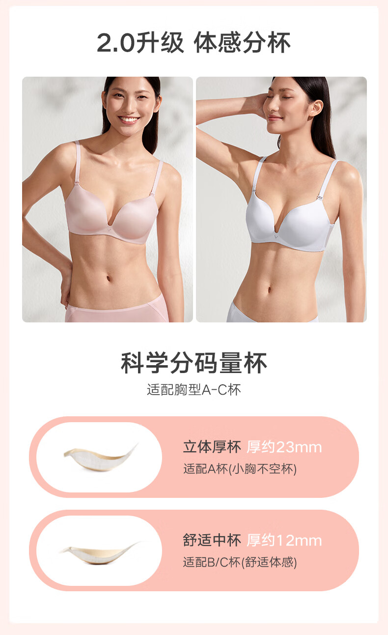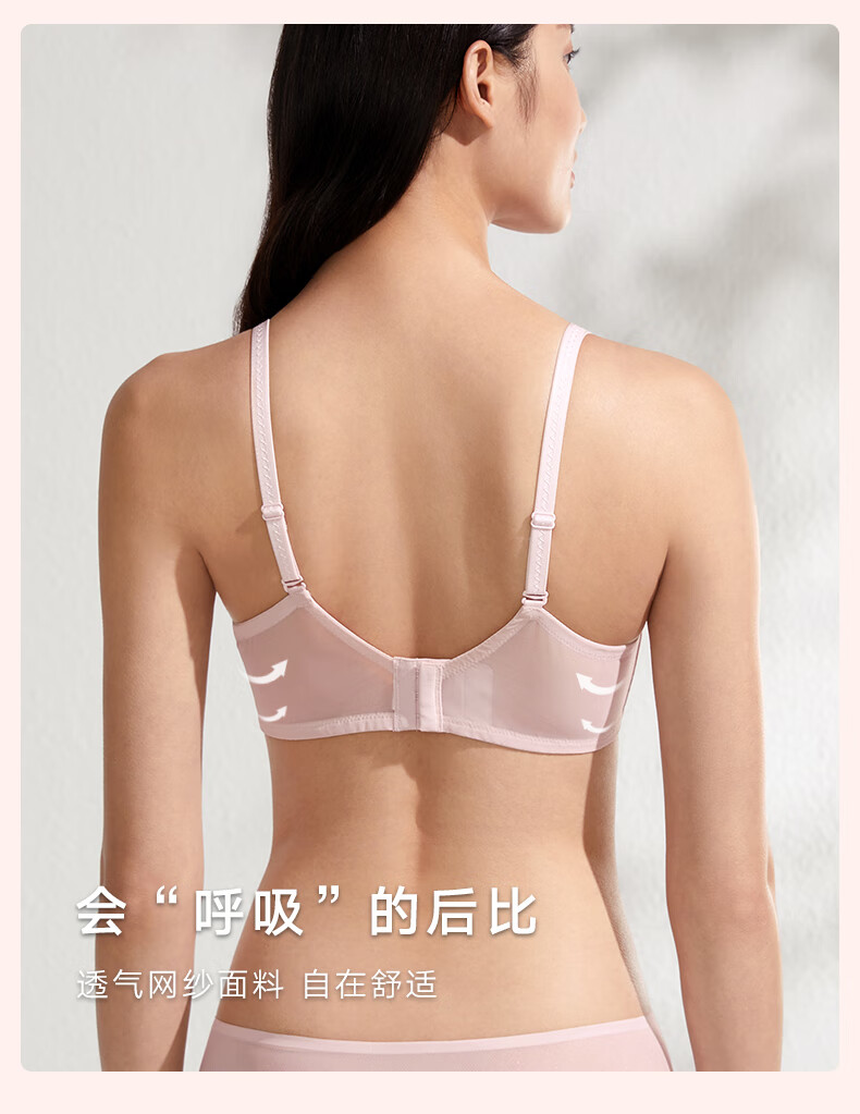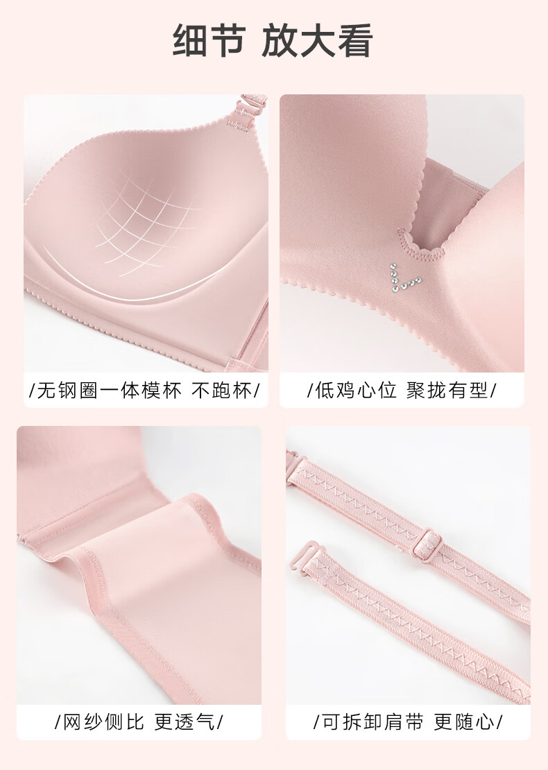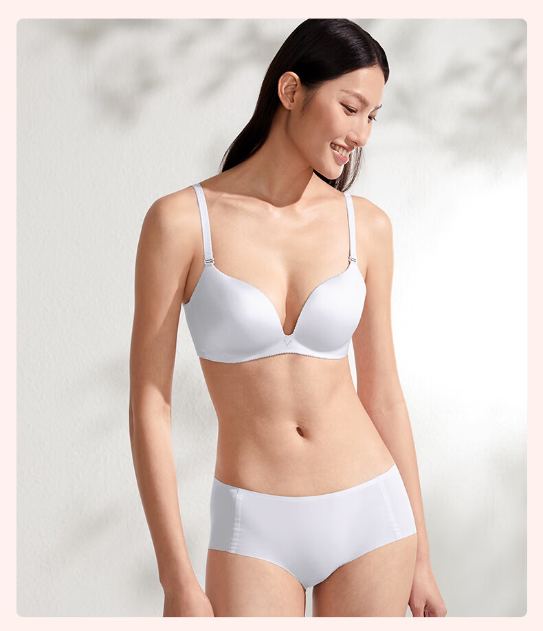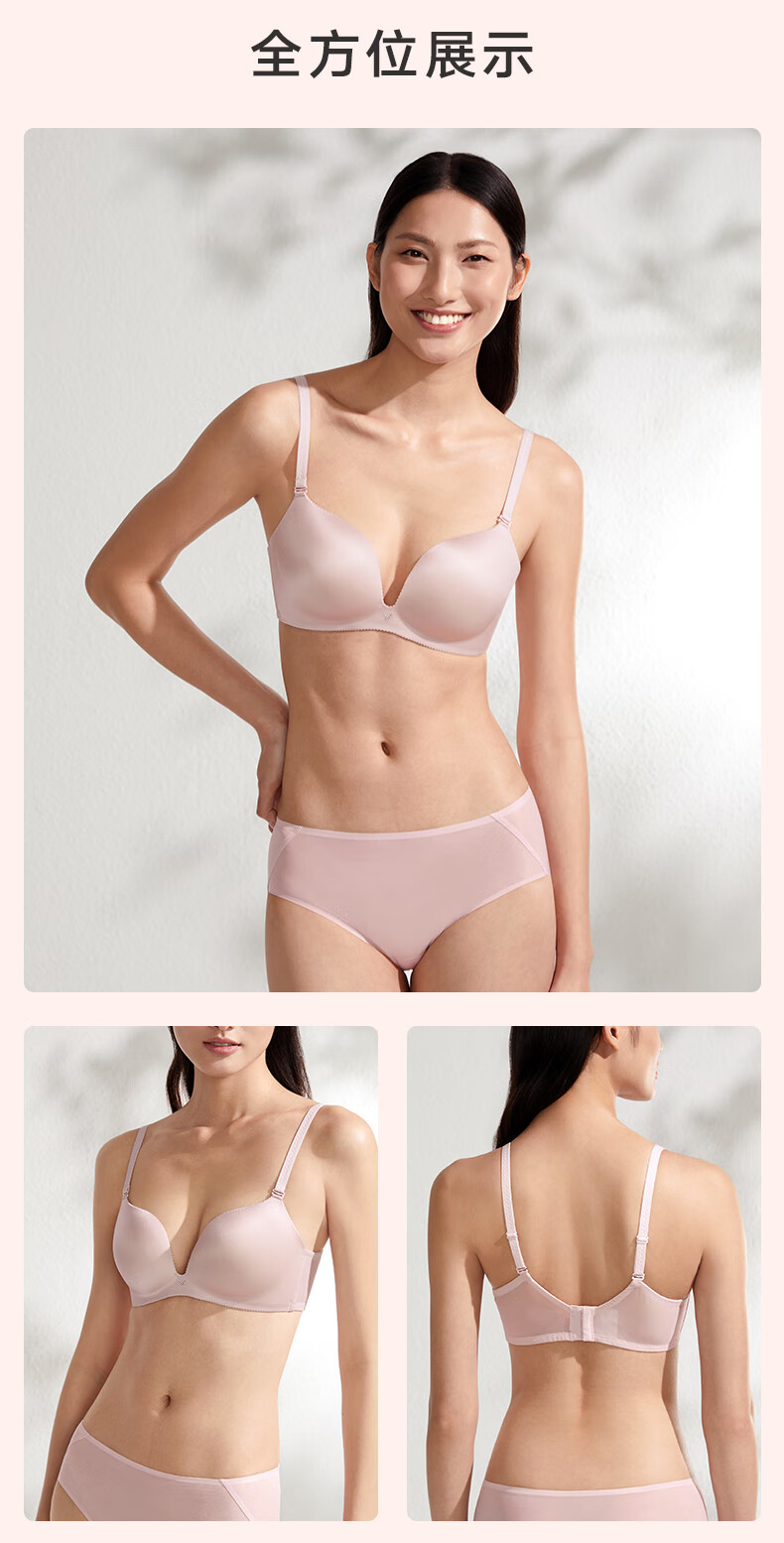 曼妮芬软乎乎光面内衣可拆卸肩带薄款无钢圈无痕舒适女士小胸聚拢文胸 微醺裸桃+奶盐蓝 80B 舒适中杯 约1.2CM厚