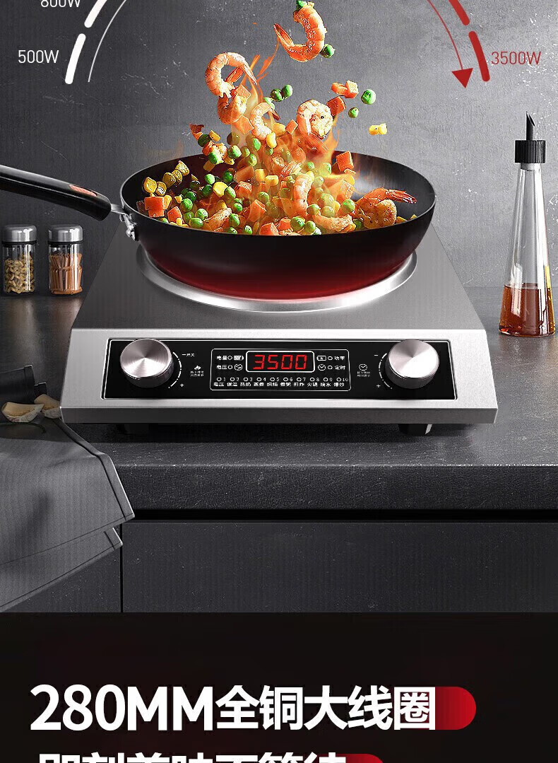 万利达电磁炉家用大功率5000W商用平面电池炉一体电炒锅电磁灶火锅炉 智能3500W单机