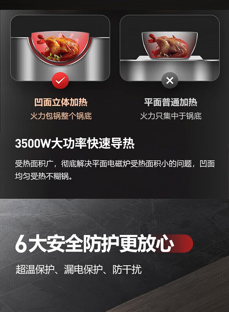 SUCOR苏泊电磁炉凹面3500W家用大功率防水一体猛火电磁灶 3500W凹面【单机+双锅套餐】全铜芯