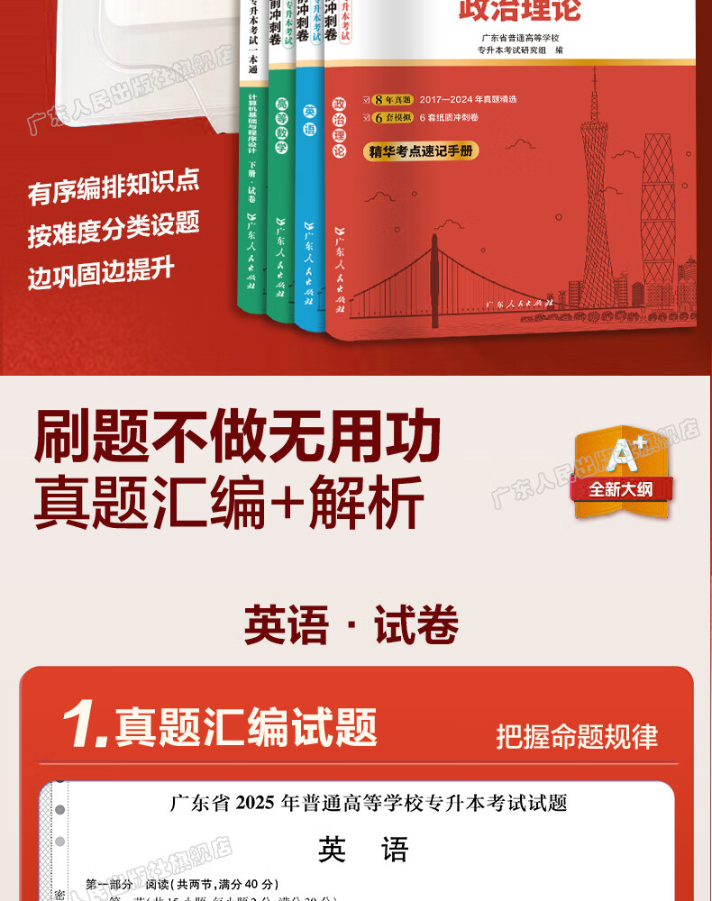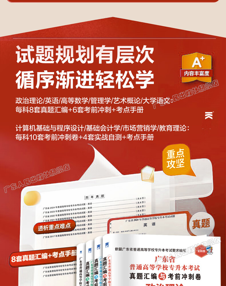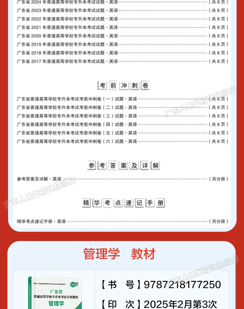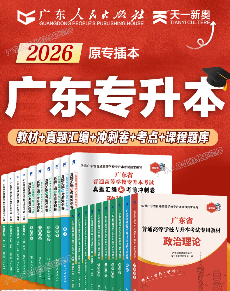 【广东仓当天发】2026广东专升本教材试卷历年真题模拟冲刺 专插本广东2025政治英语政治理论管理大学语文民法艺术概述公共课专业基础课 广东专插本教材2025复习资料 管理学+英语+政治 【3教材+3