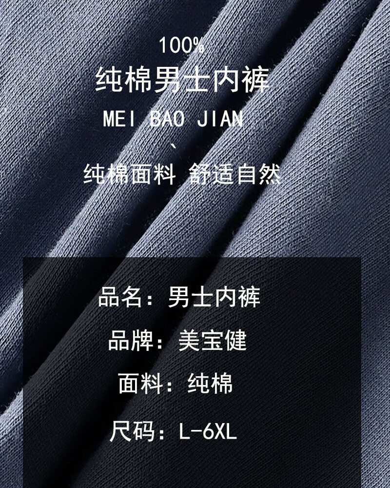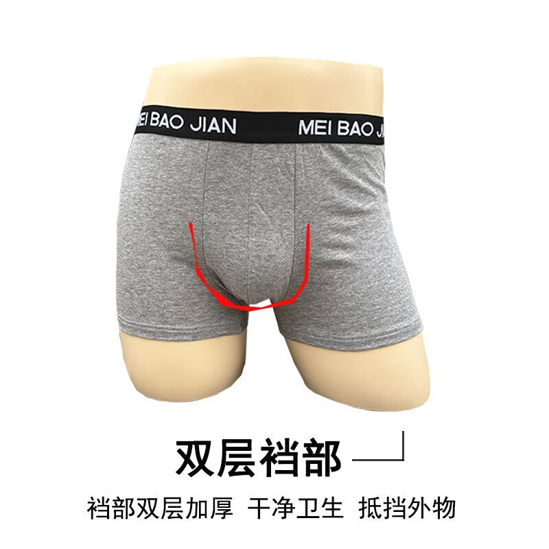 美宝健男士纯棉平角内裤透气舒适吸汗青年明筋四角裤衩宽松潮流大码全棉 纯棉;5条装颜色随机 5条 3XL (体重130-150斤)100%纯棉